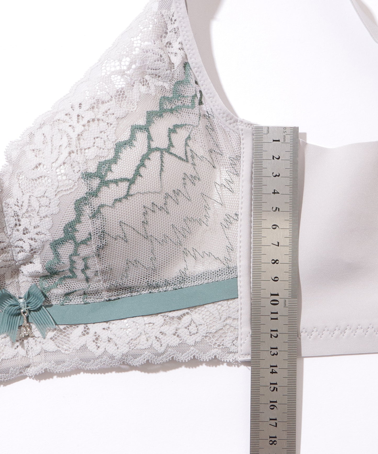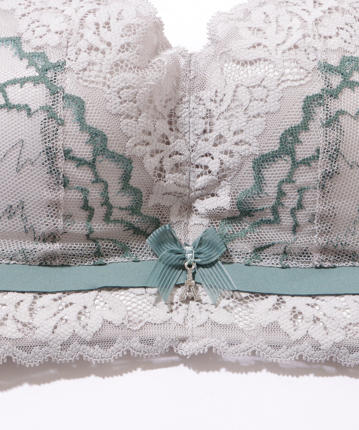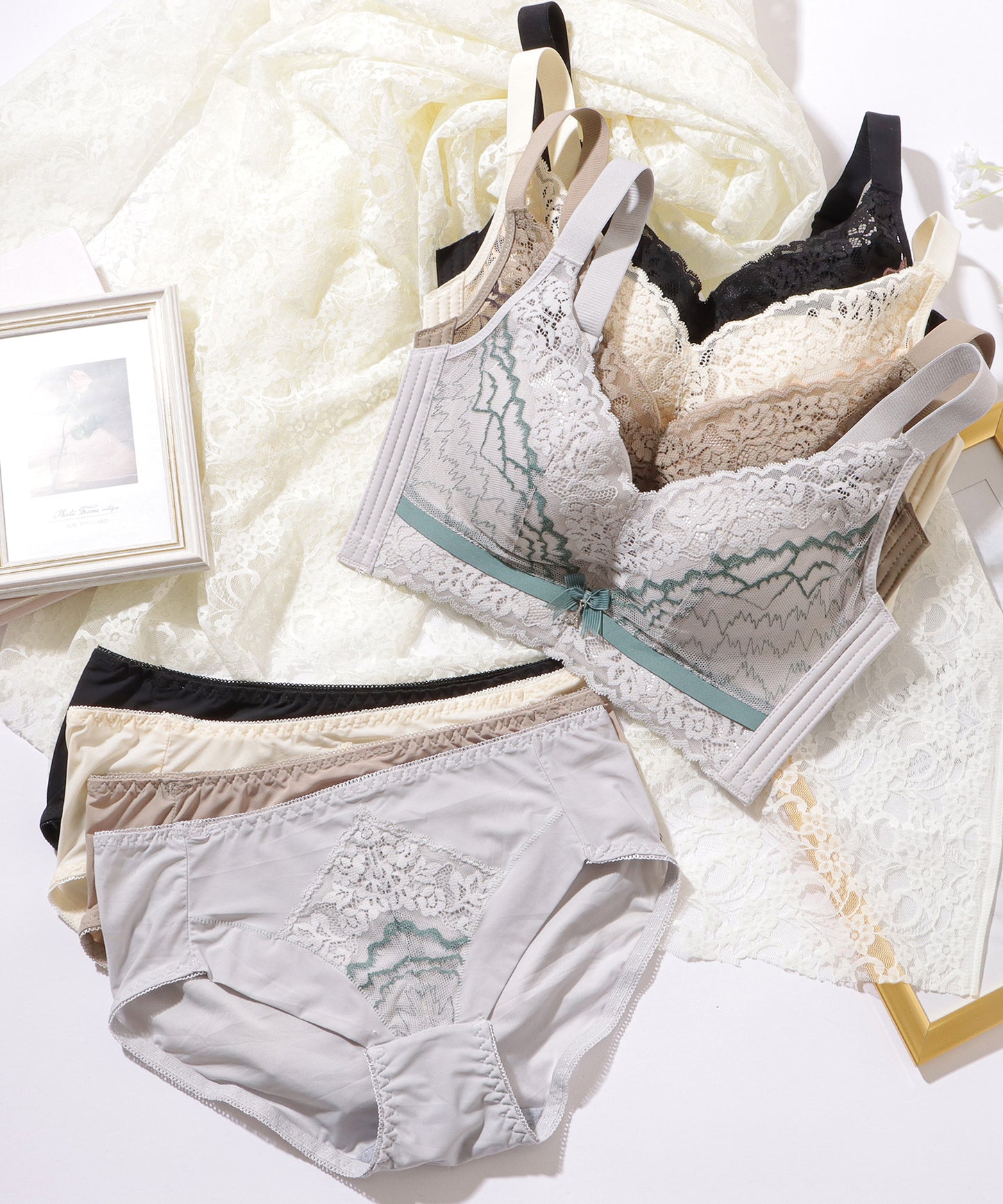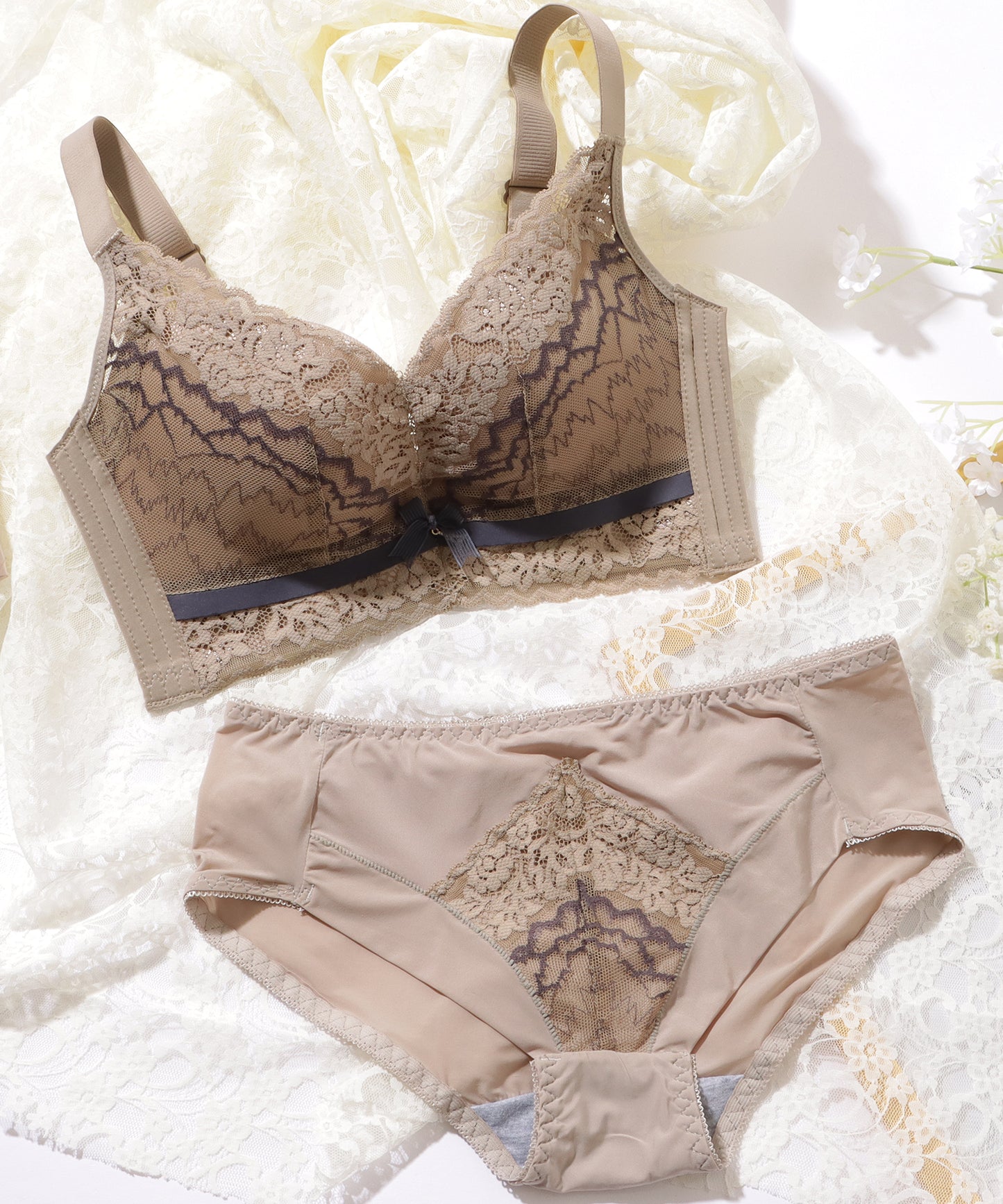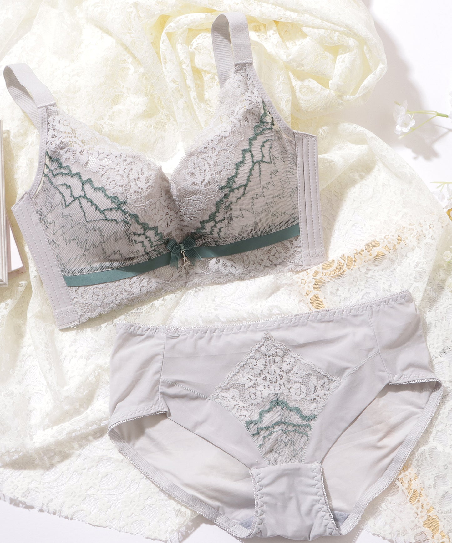 ライン リボン レーシィ 脇高 ノンワイヤー ブラジャー&ショーツ
