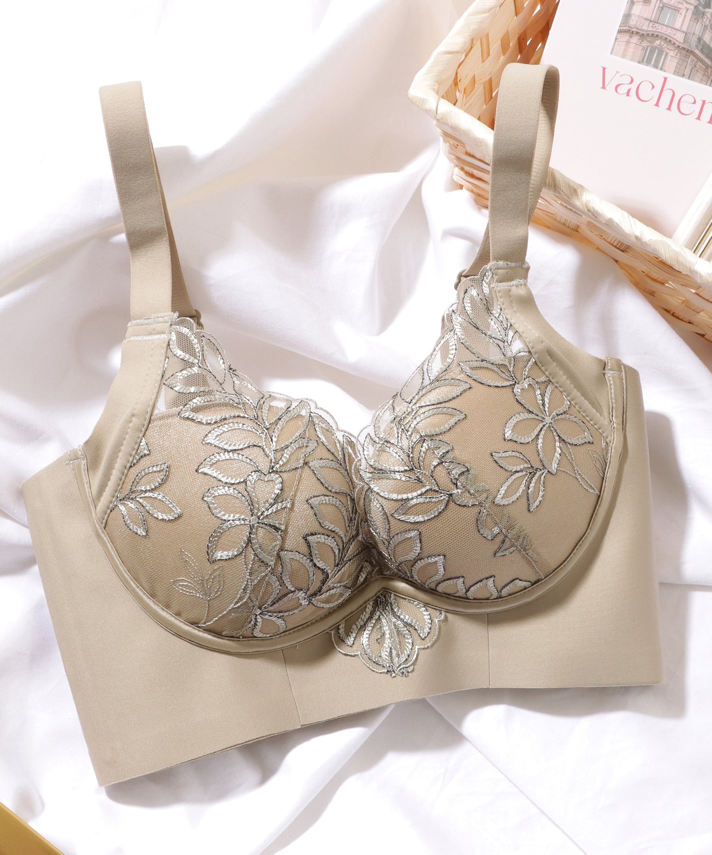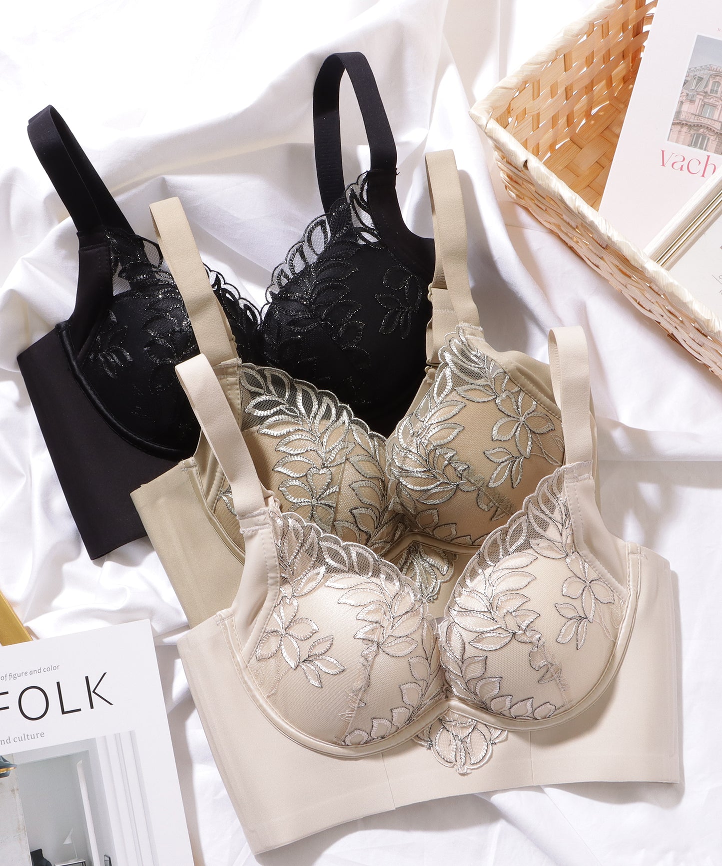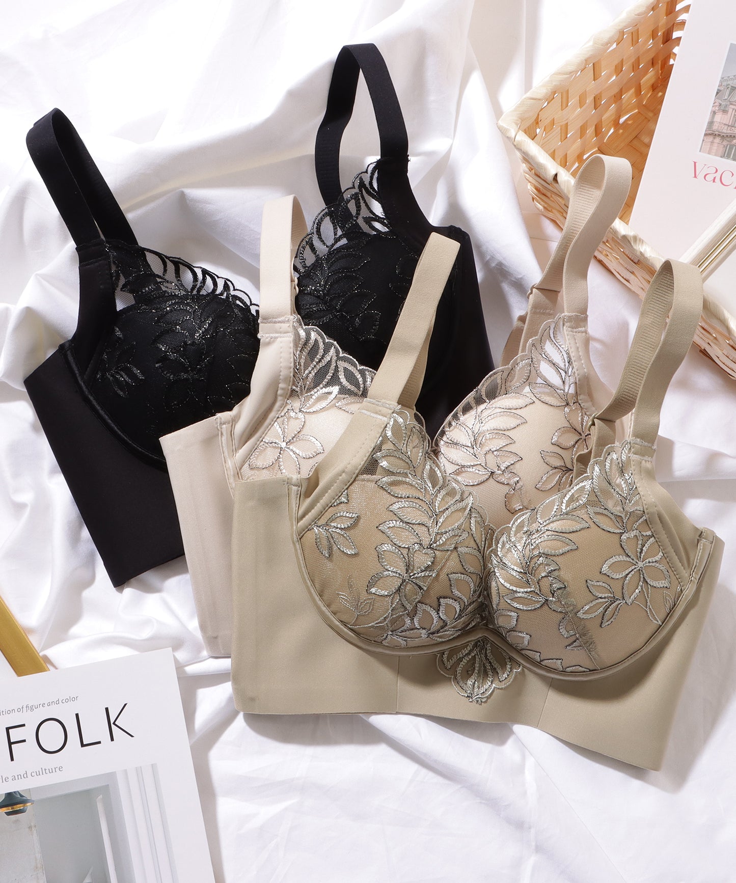ボタニカル刺繍シアー脇高ノンワイヤーブラジャー