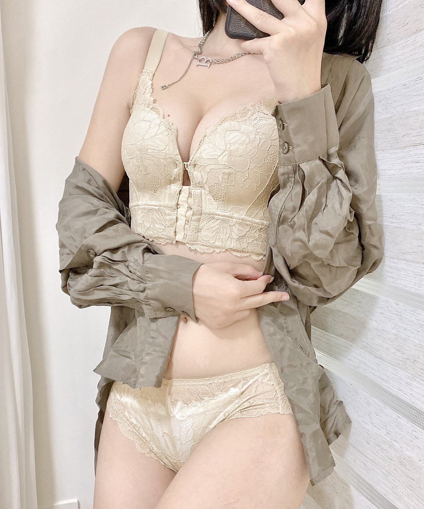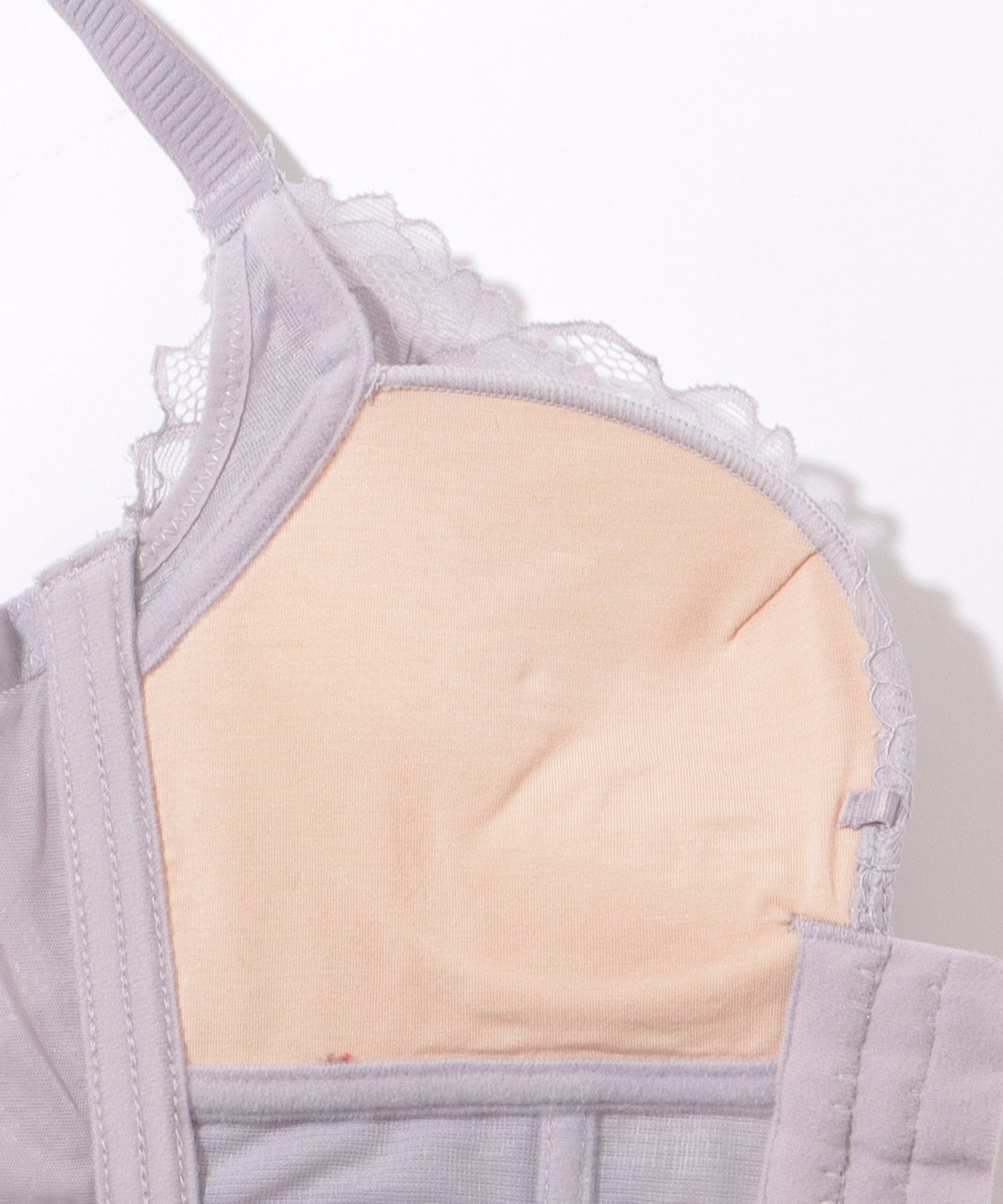 バスト全体を包み込んでくれる大きめカップで、流れやすいサイドのバストまで効果的に集めてくれるので、簡単に谷間メイクが叶うひと品。