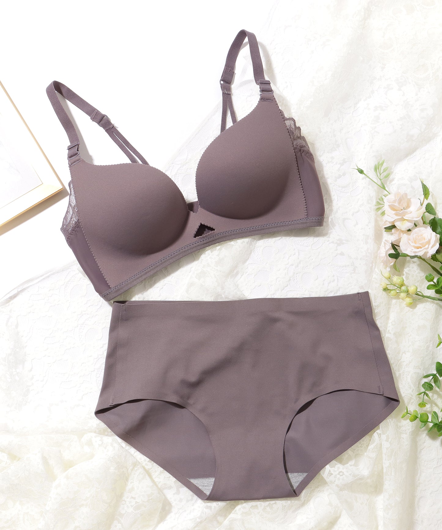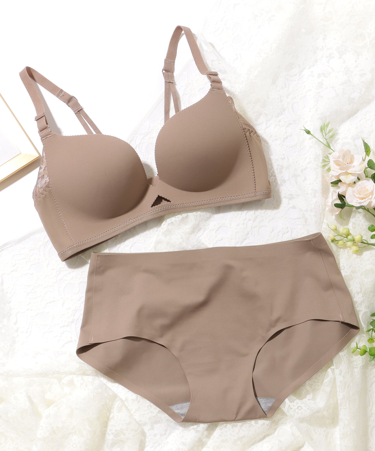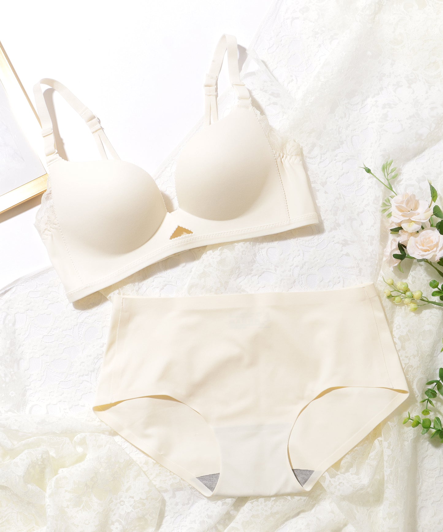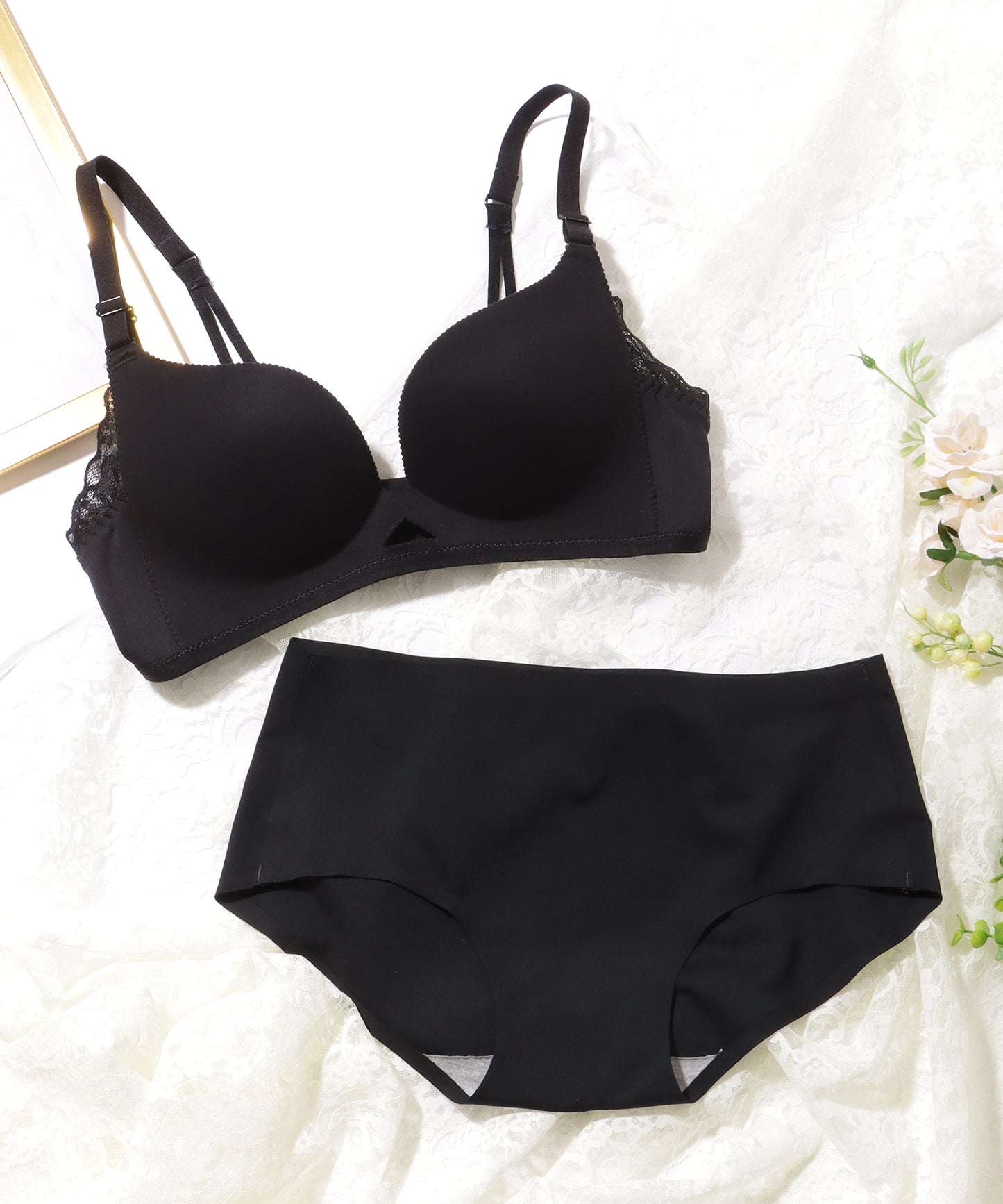 薄手トップスでも透けにくい、シンプルなデザインのブラジャー&ショーツセット。