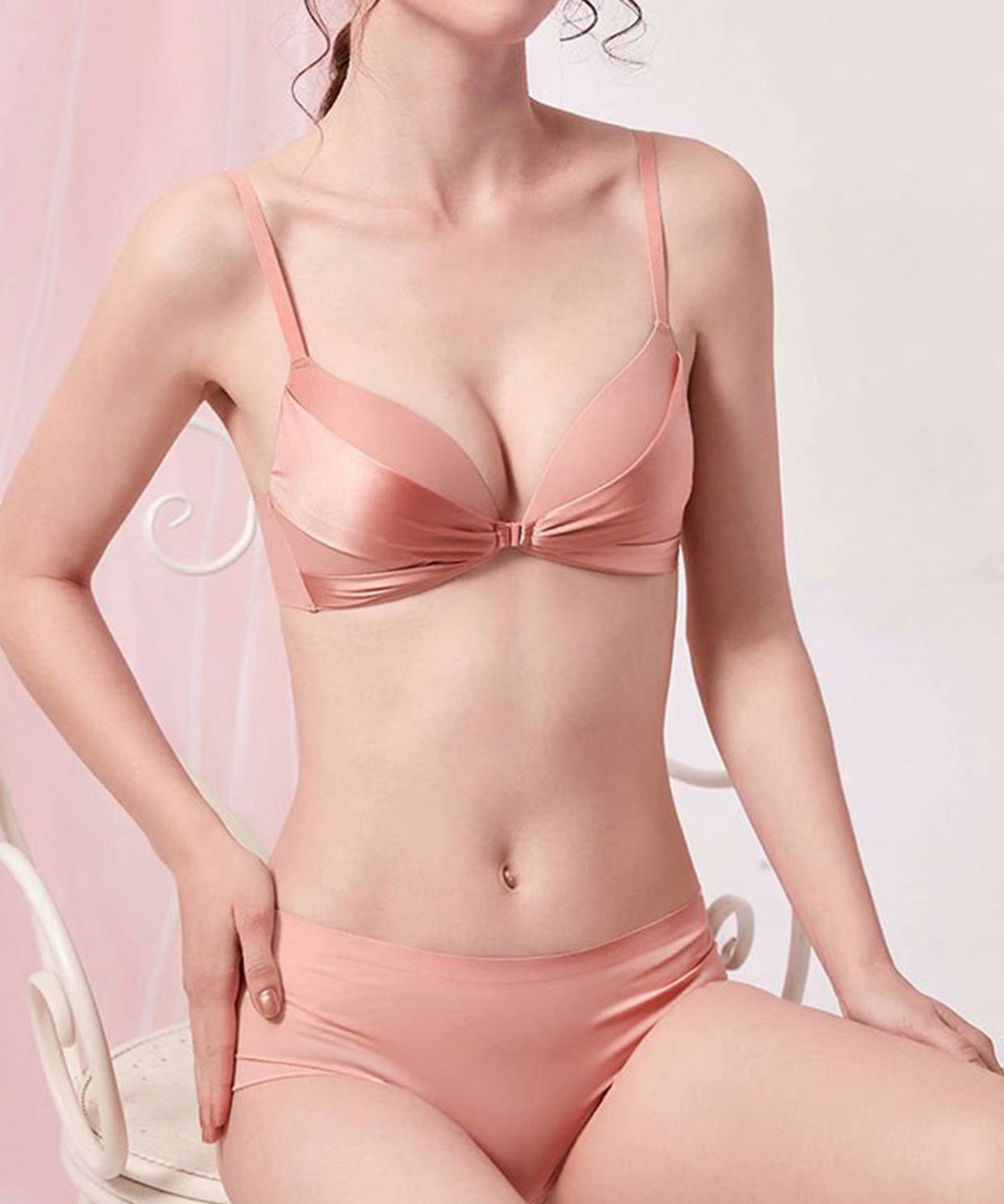 サテンリボン フロントホック シームレス 3/4 ブラ&ショーツ