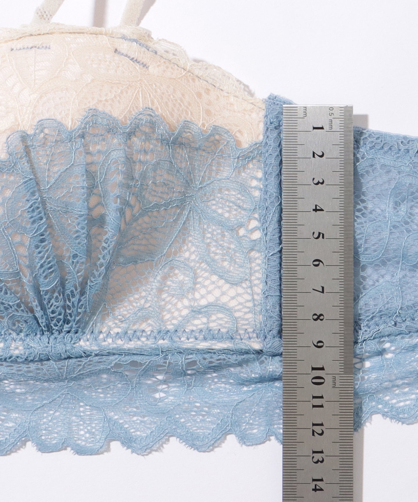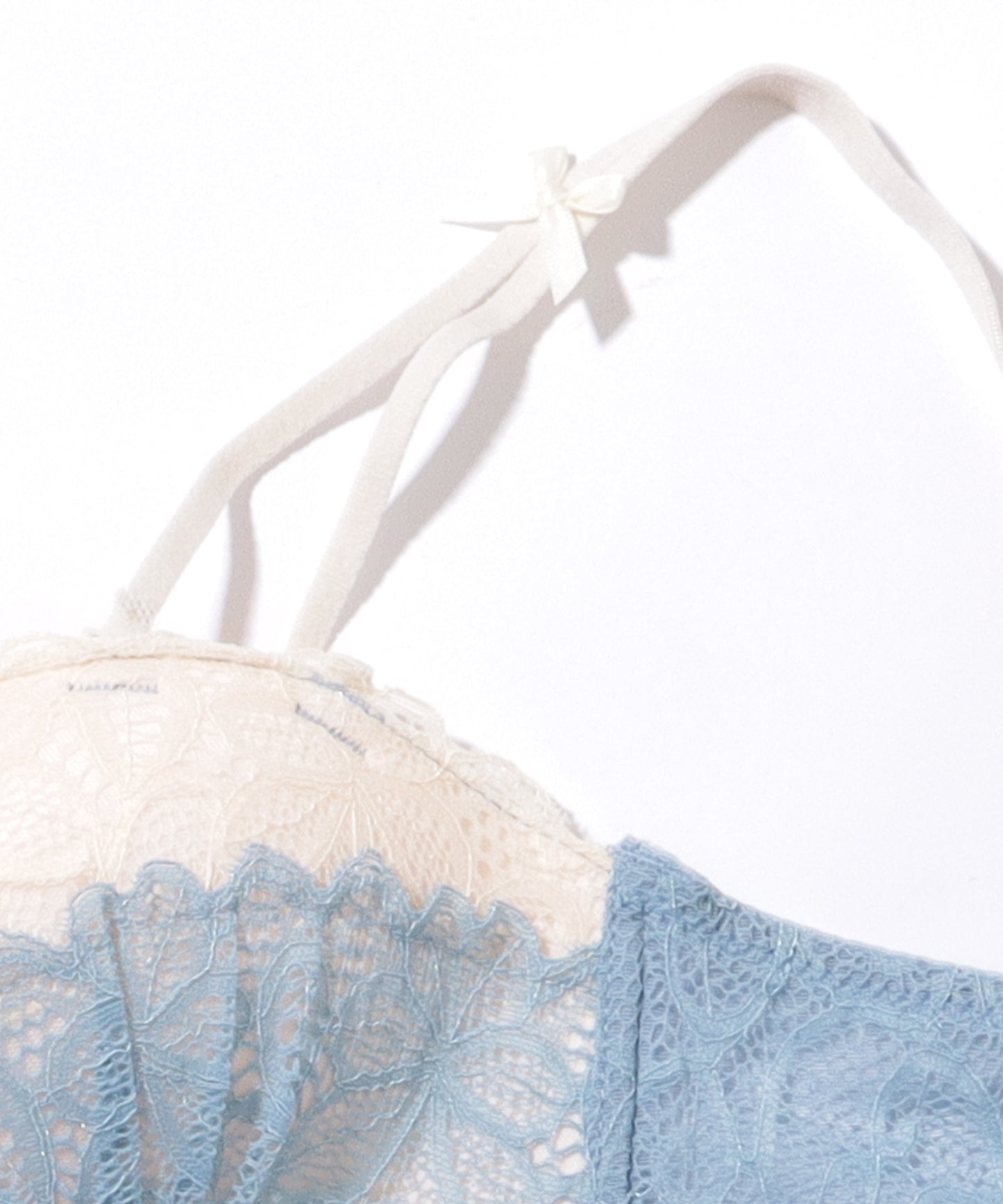 カップ下にあしらった大胆なレースは、背中側までぐるりと囲うようにボディを華やかに演出します。
