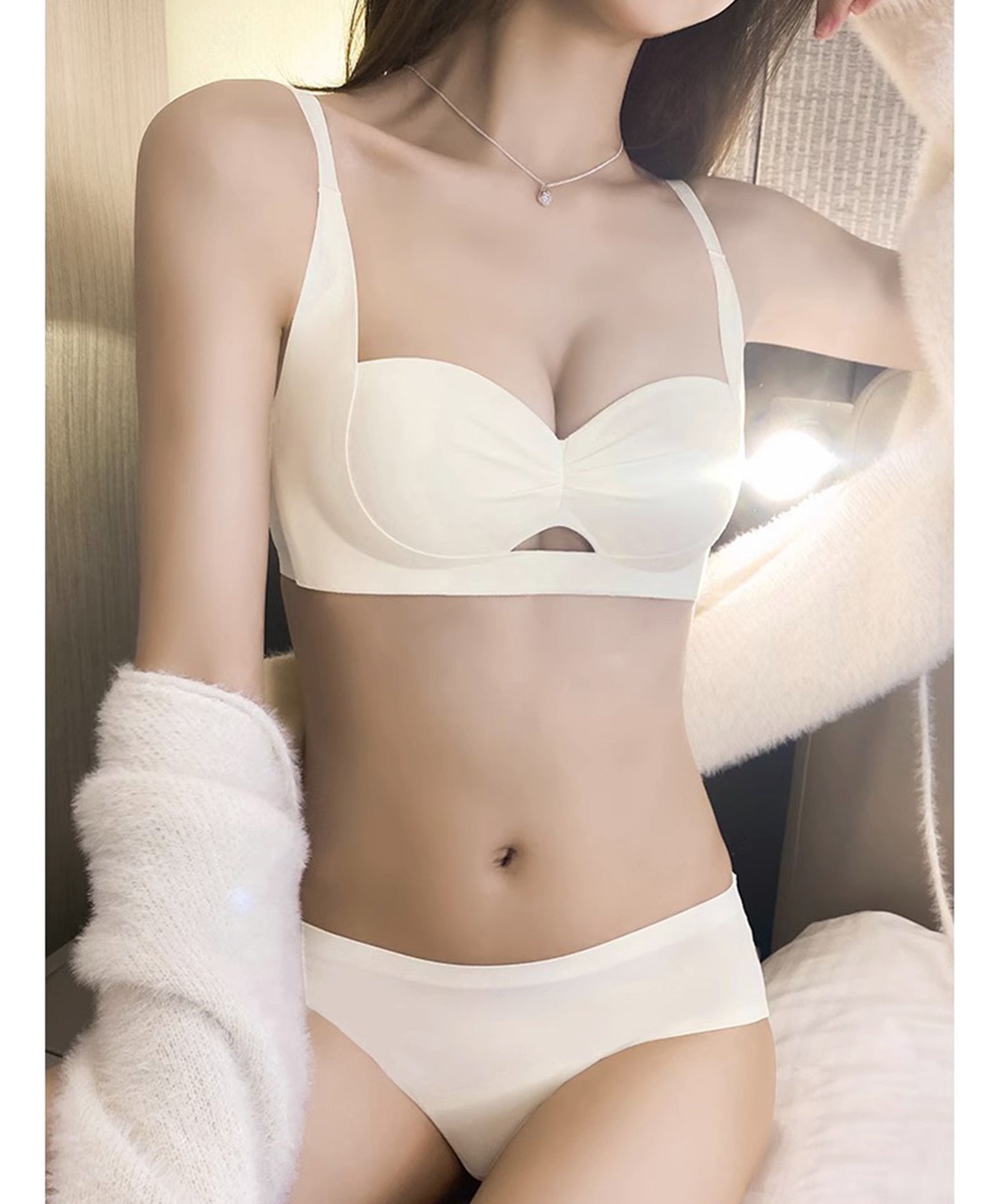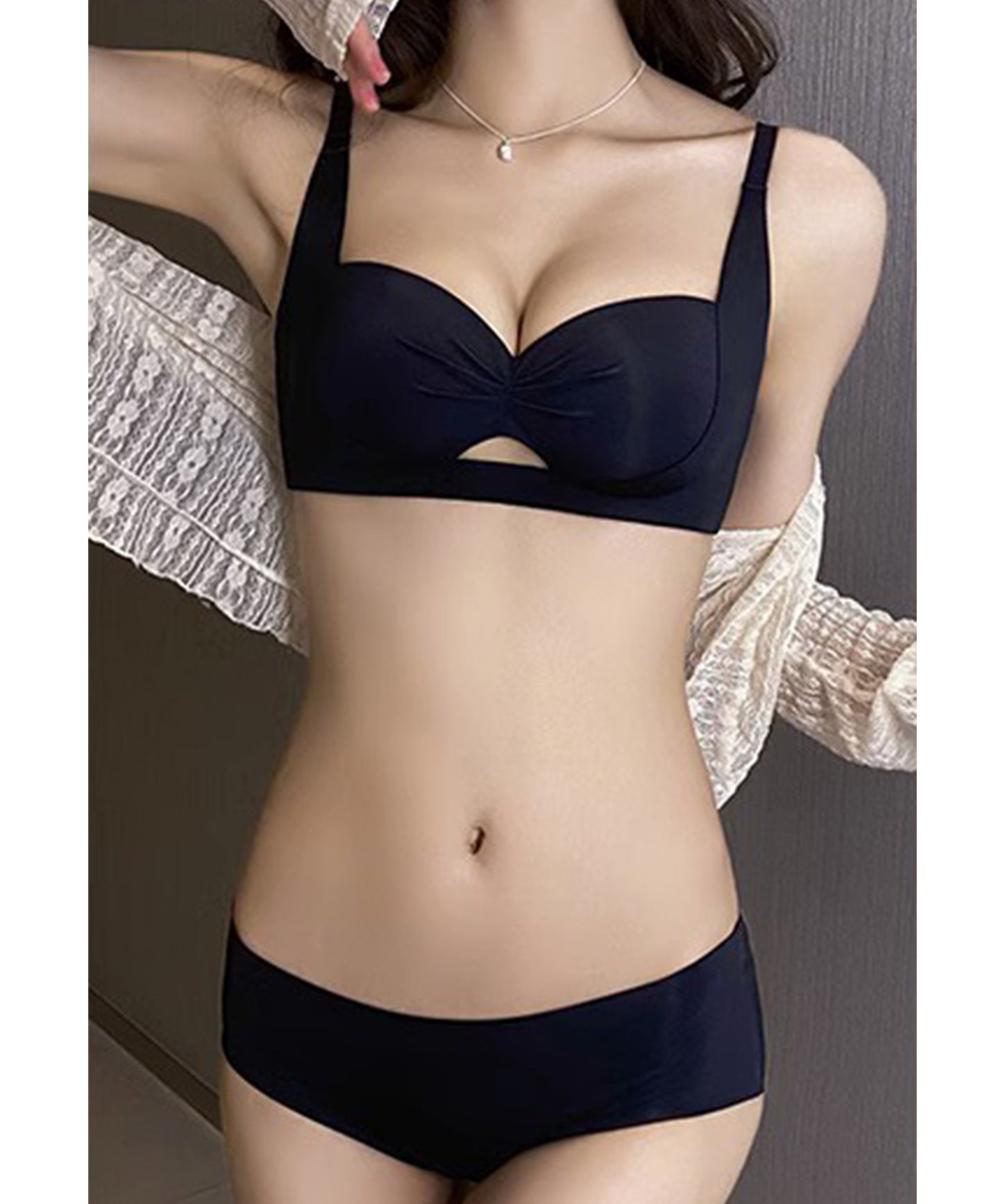 ソリッドカラー ノンワイヤー シームレス カットアウト ブラ&ショーツ
