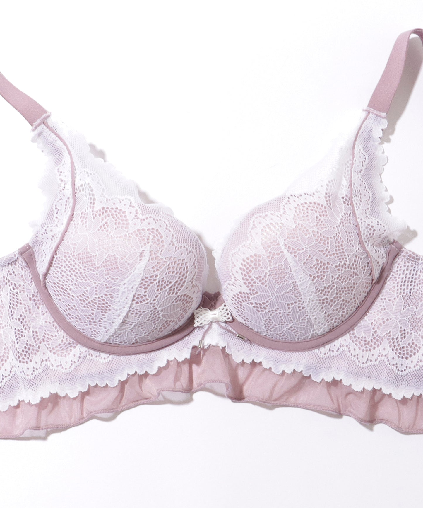 バイカラー フリル レース 3/4 ノンワイヤー ブラ&ショーツ