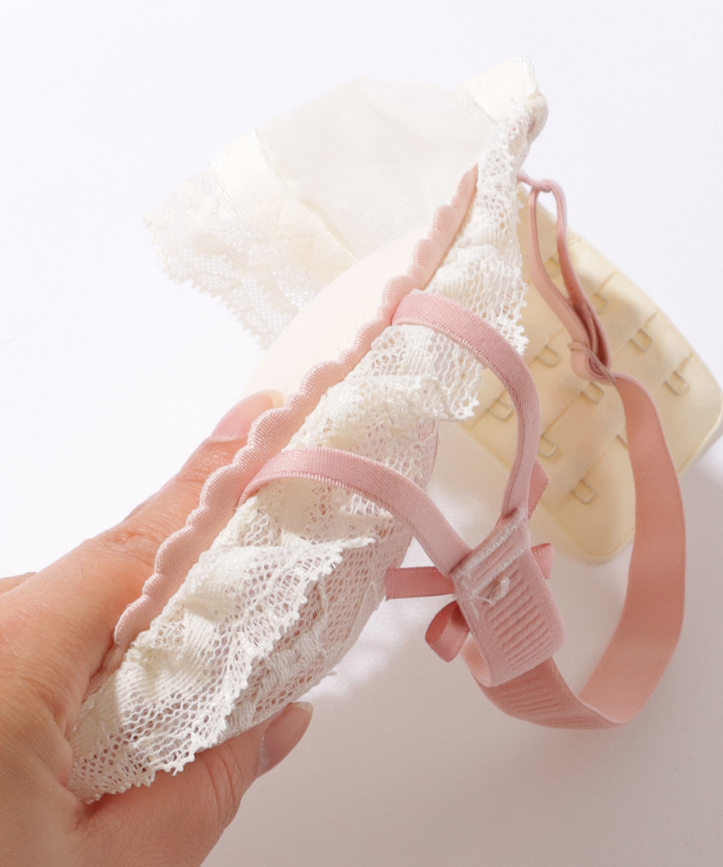 フリル レース リボン風 ノンワイヤー ブラ&ショーツ