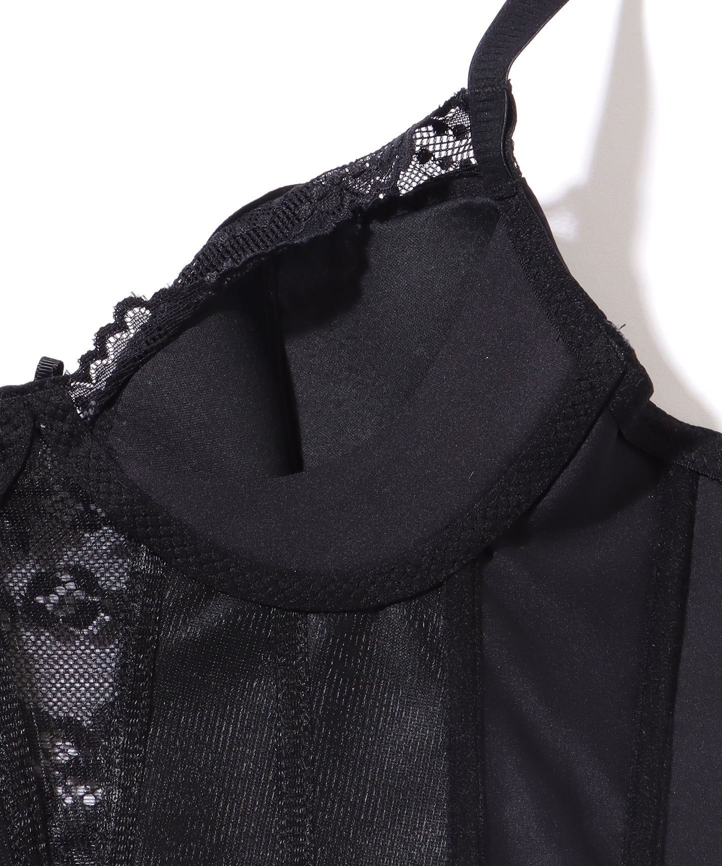 まるでビスチェのようなルックスが可愛い、脇高タイプのブラジャー&ショーツセット。