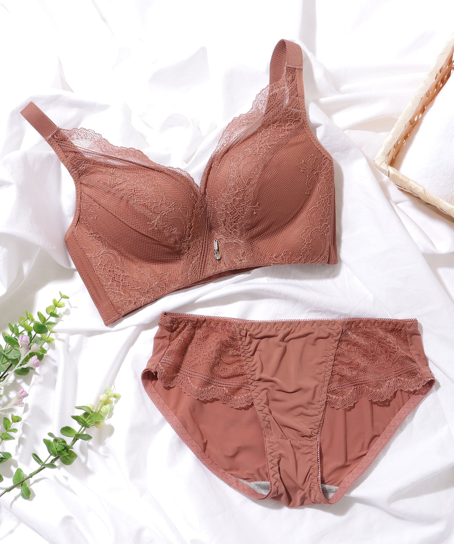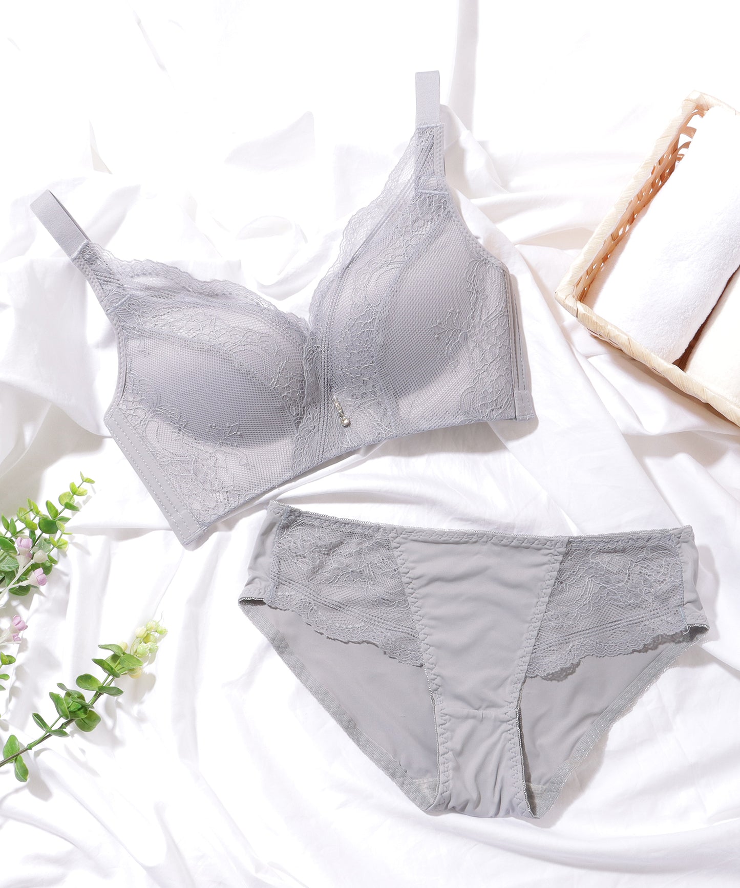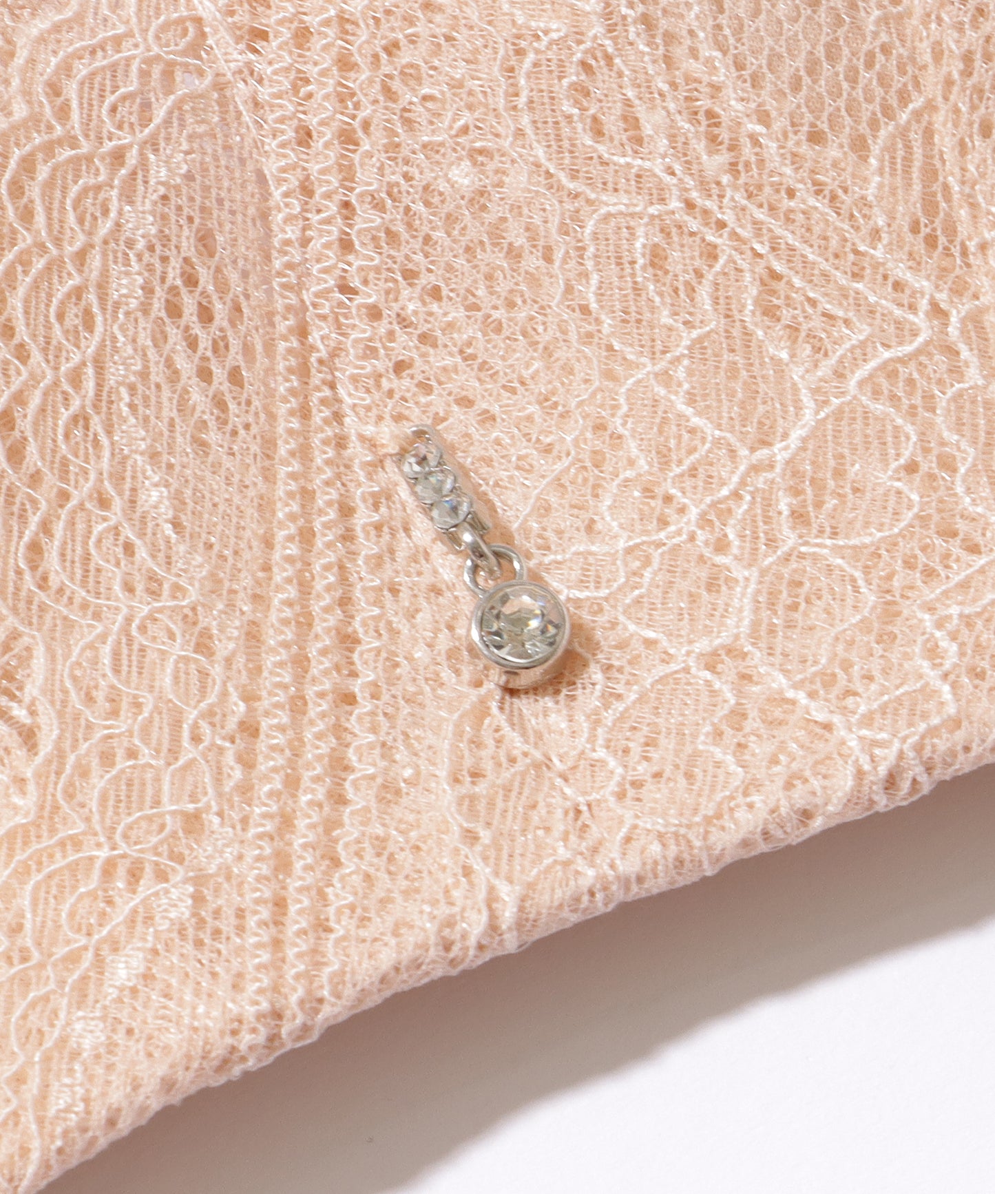 チャーム付き Vネック レーシィ 脇高 ノンワイヤー ブラ&ショーツ
