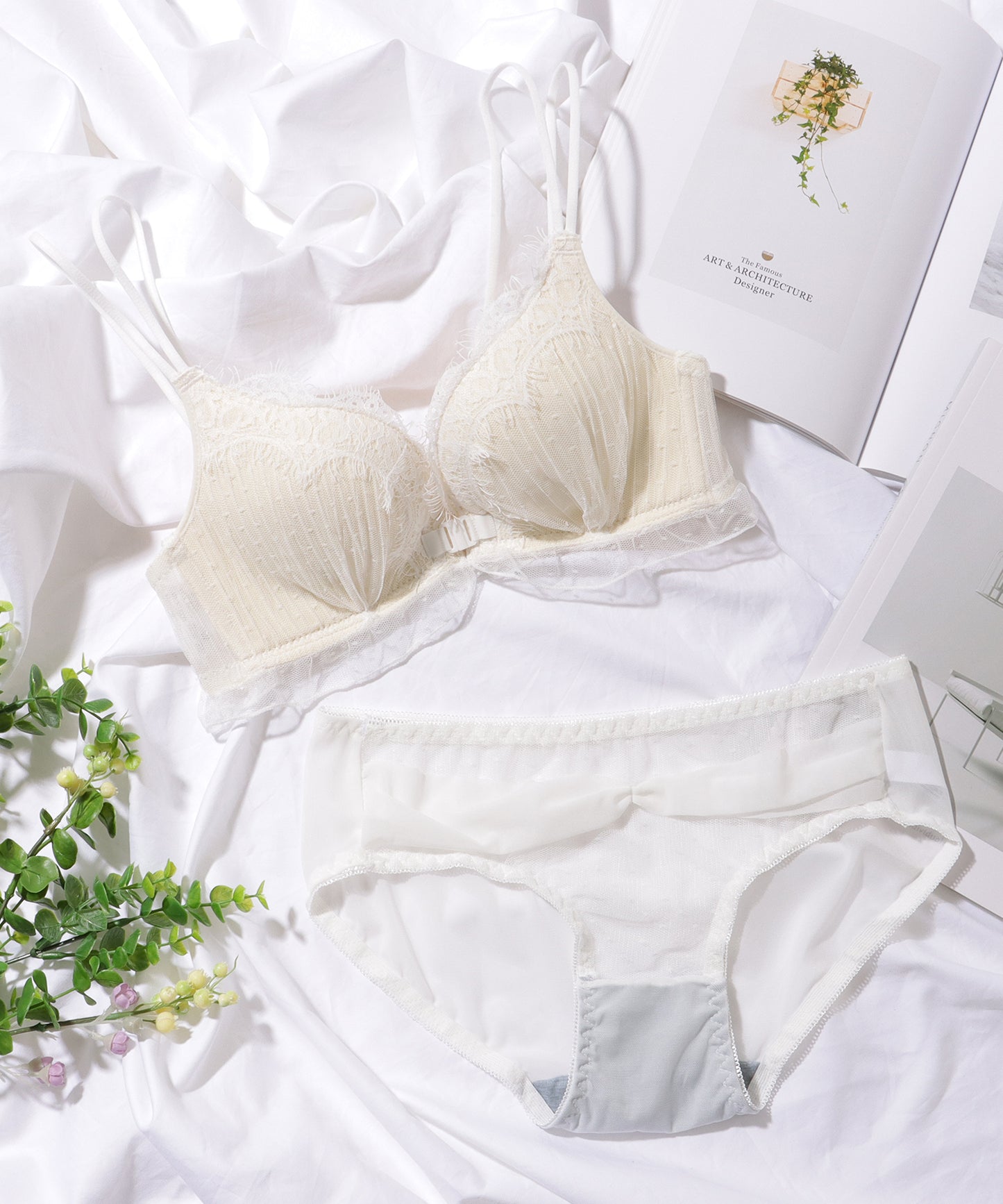 カップ上には繊細なレースをあしらい、上品な表情をプラスしました。