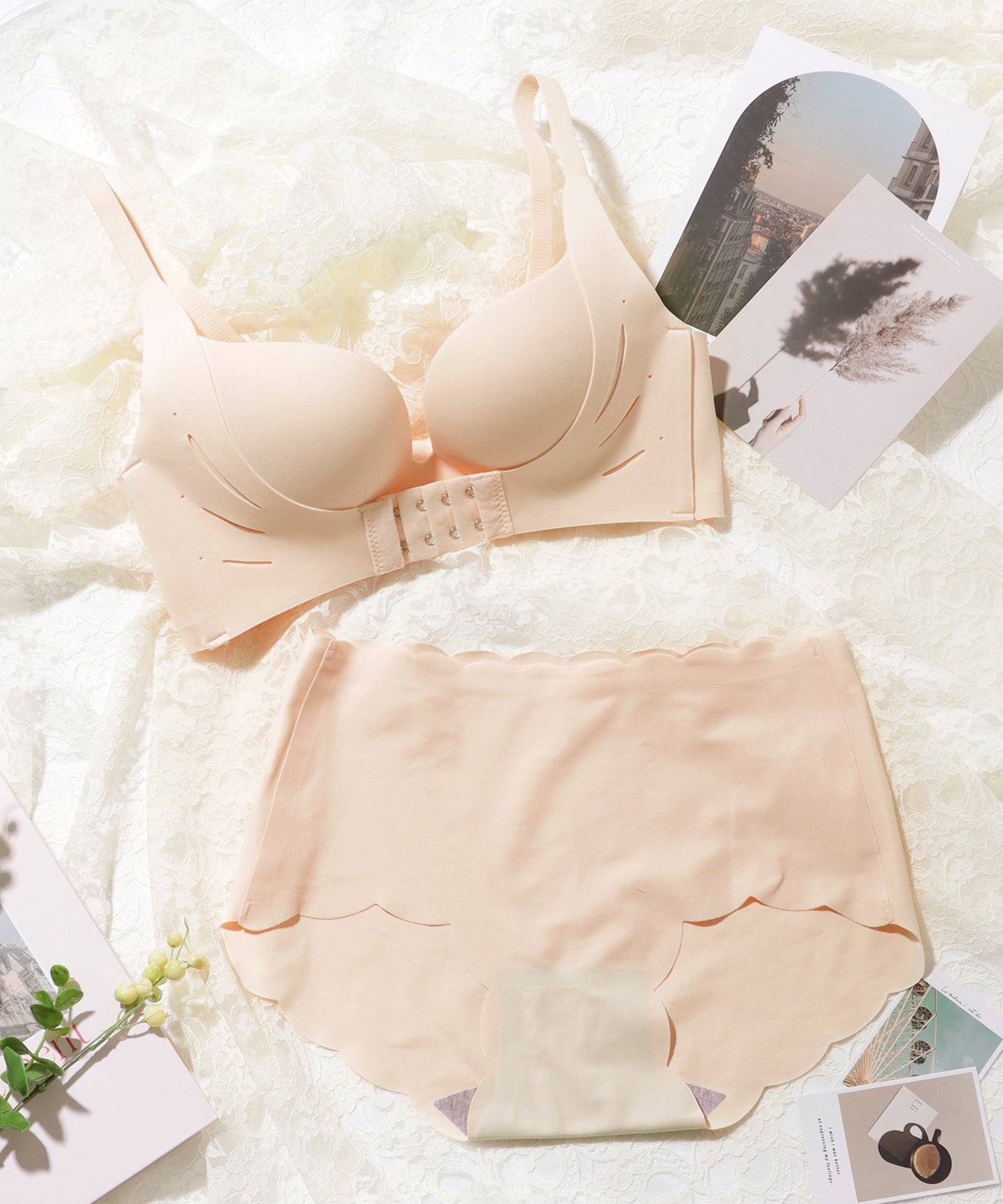 ソリッドカラー ダブル ホック 谷間メイク ブラ&ショーツ