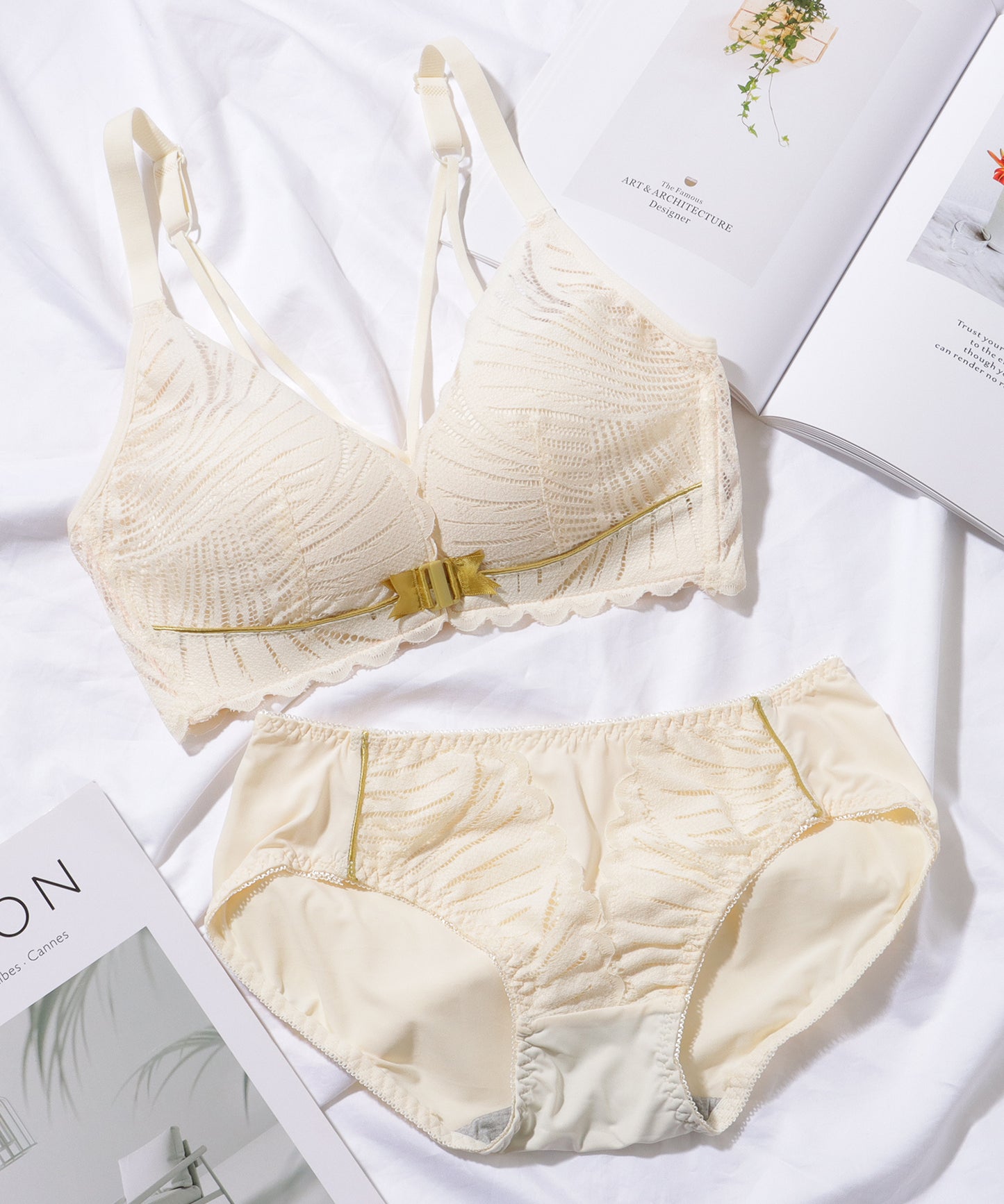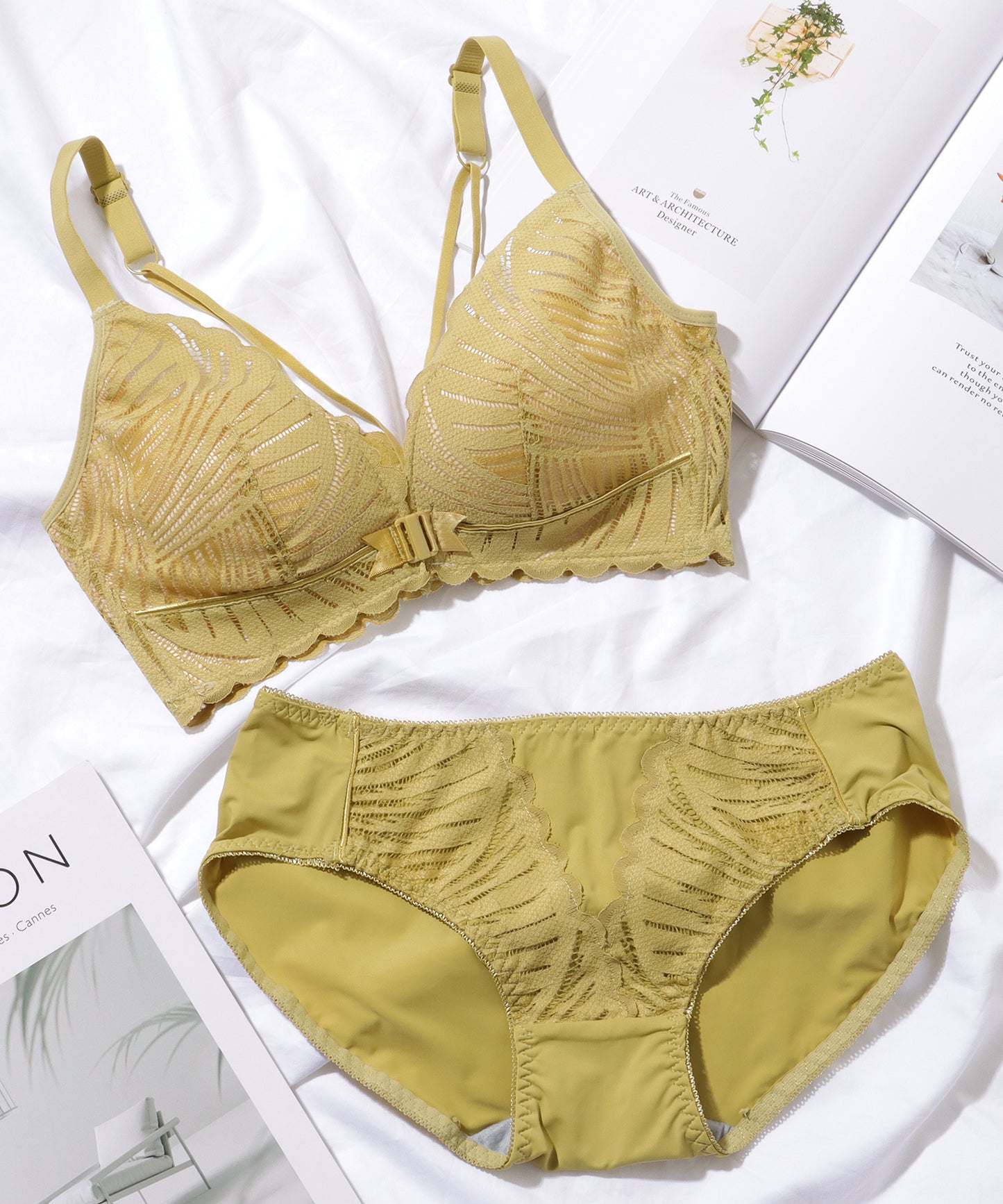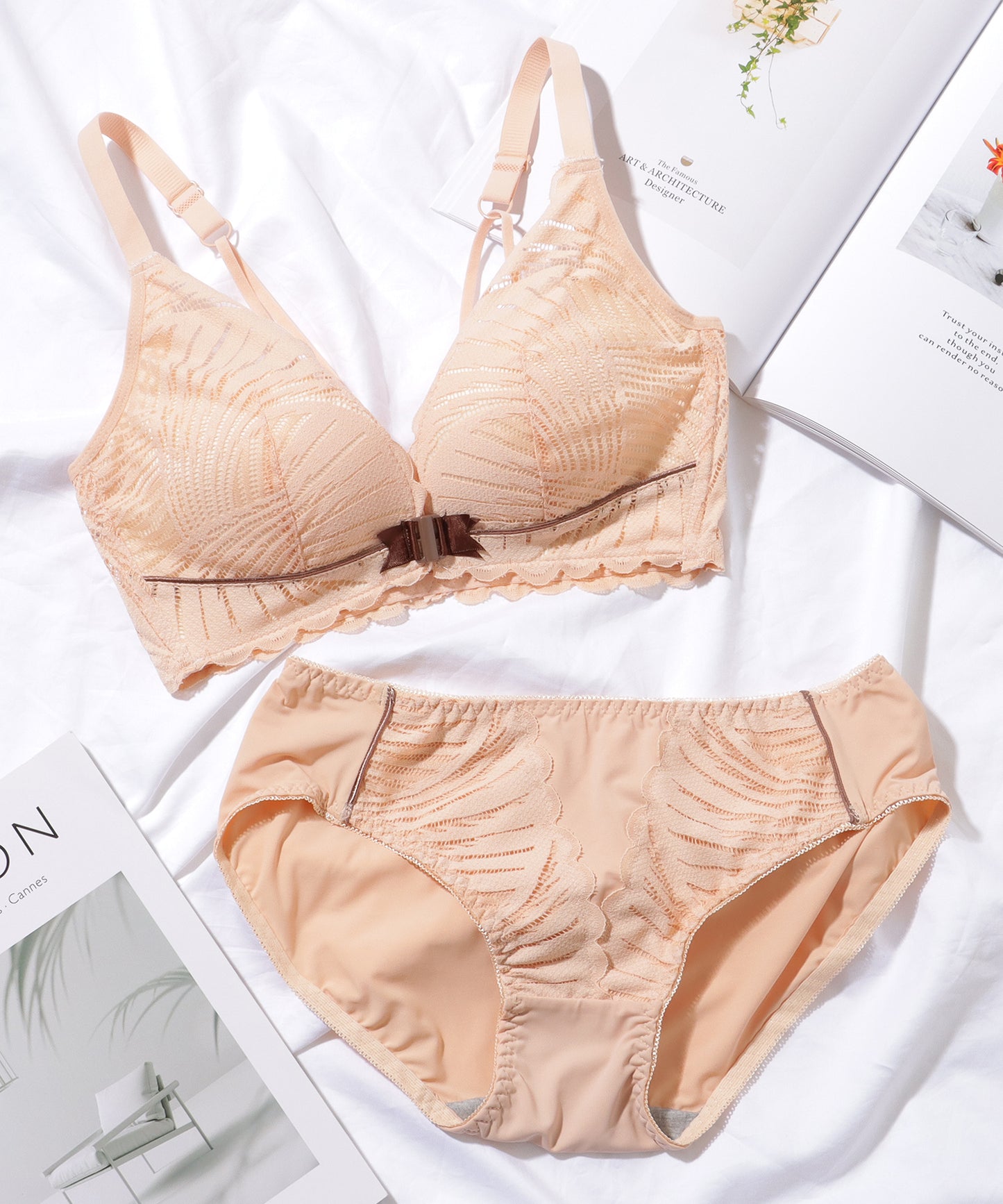 シェル風 フロントホック ソフト ノンワイヤー 3/4 ブラ&ショーツ