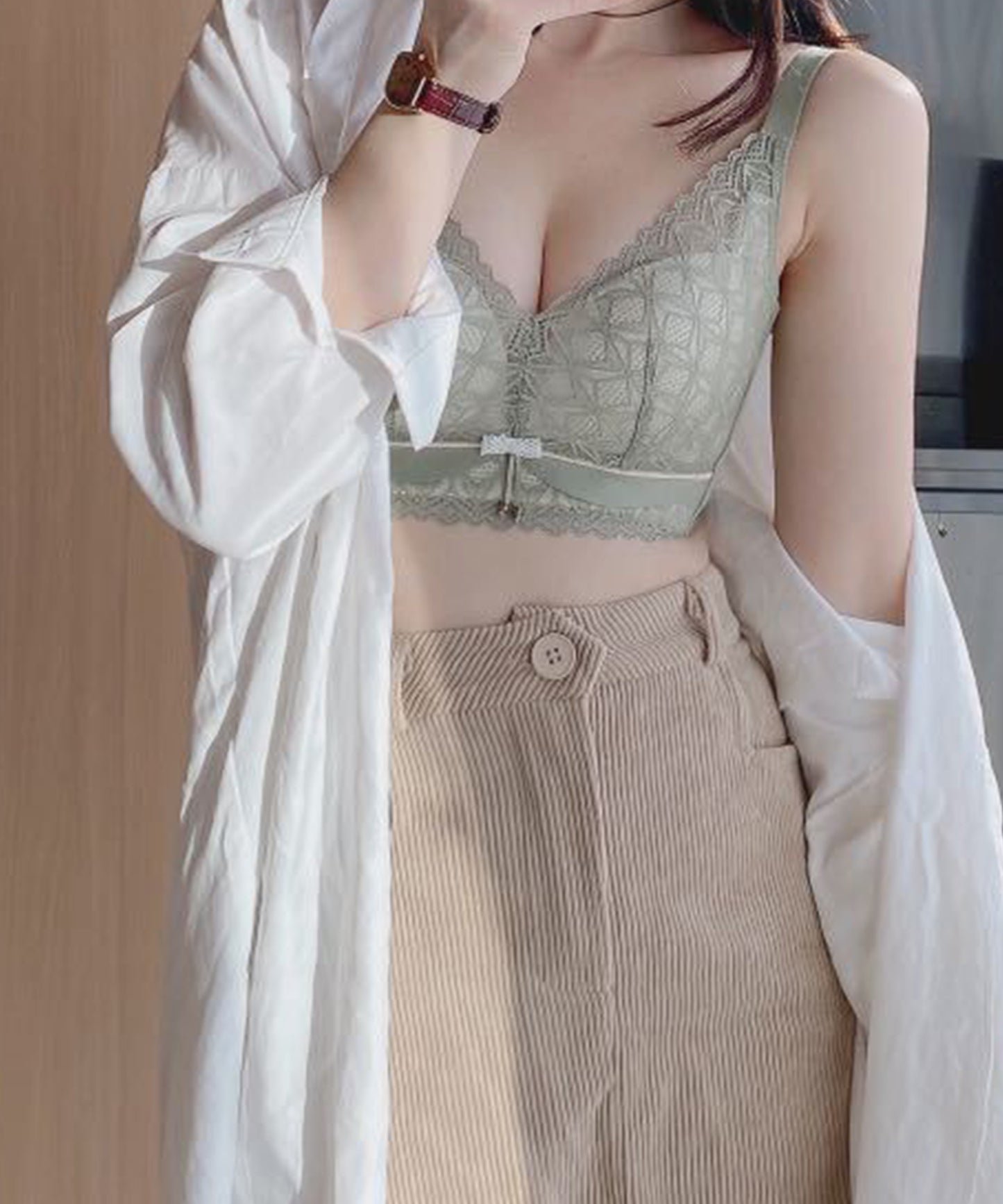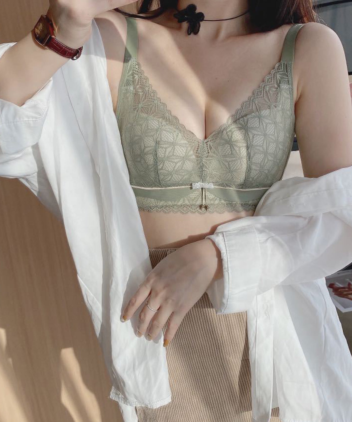 バスト全体を包み込むような大きめカップで、重さのあるバストもしっかりとホールド。