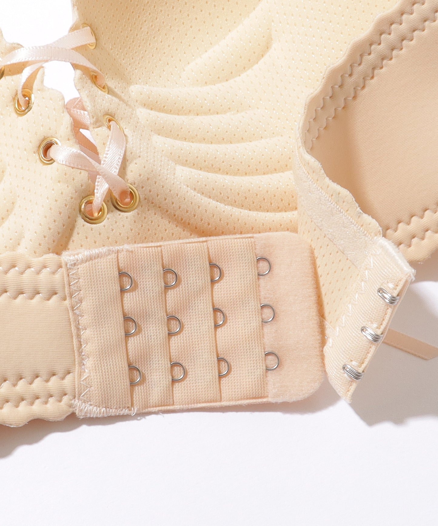 密着感のある着け心地は、フロントのレースアップでさらにホールド感を強めることができるので、簡単に谷間メイクが叶います。