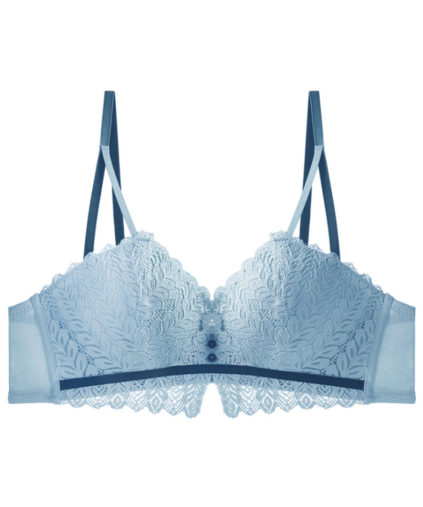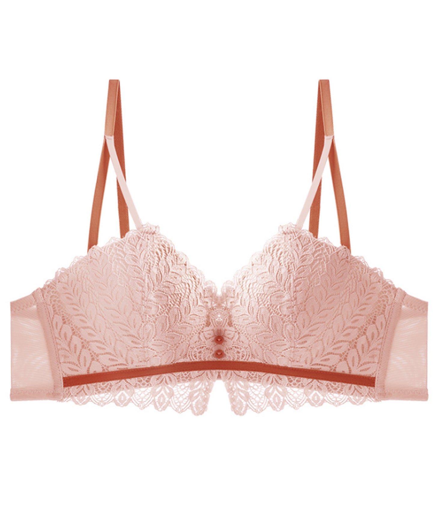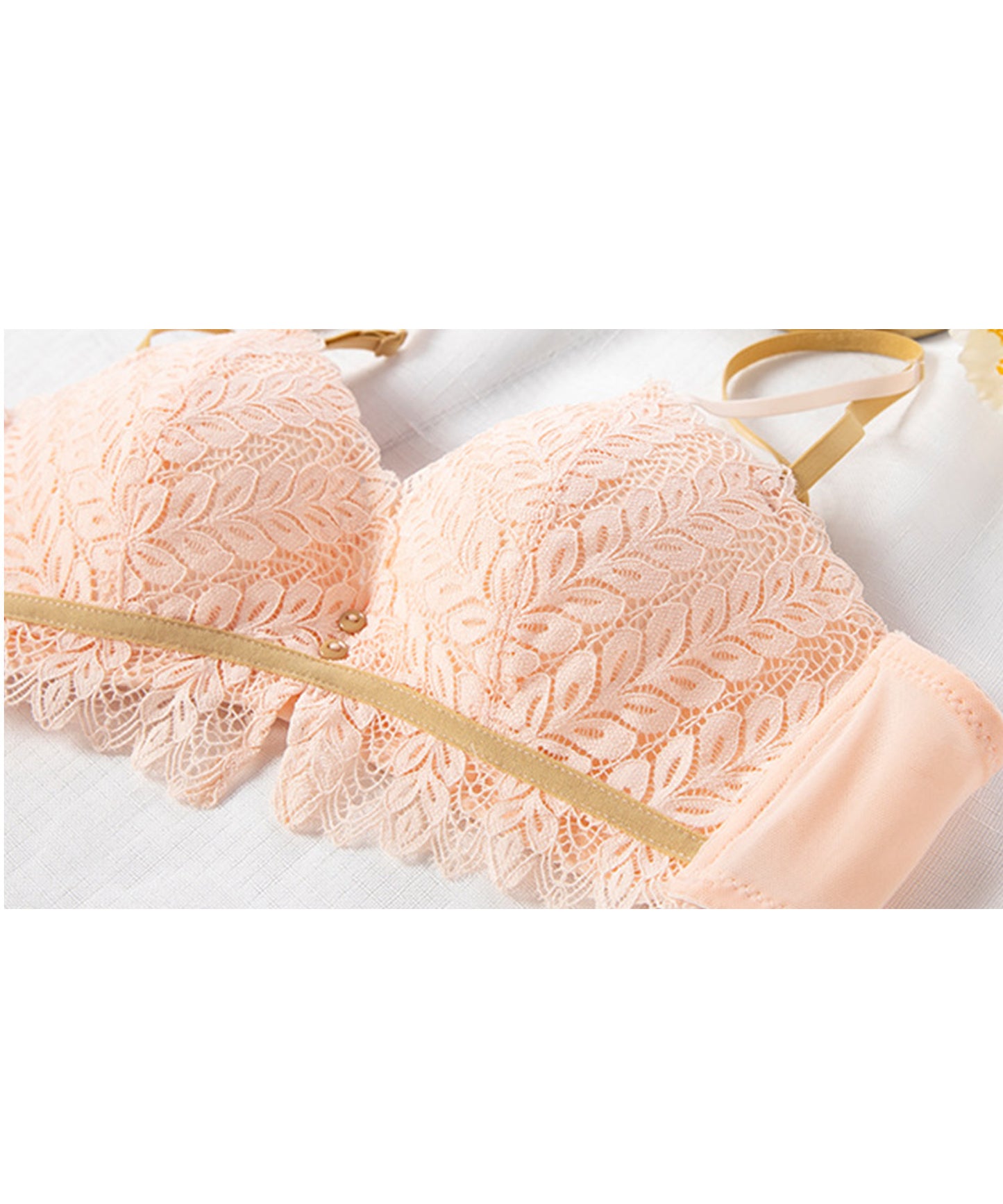 ノンワイヤー リーフ柄レースブラ&ショーツ 2点セット バストアップ