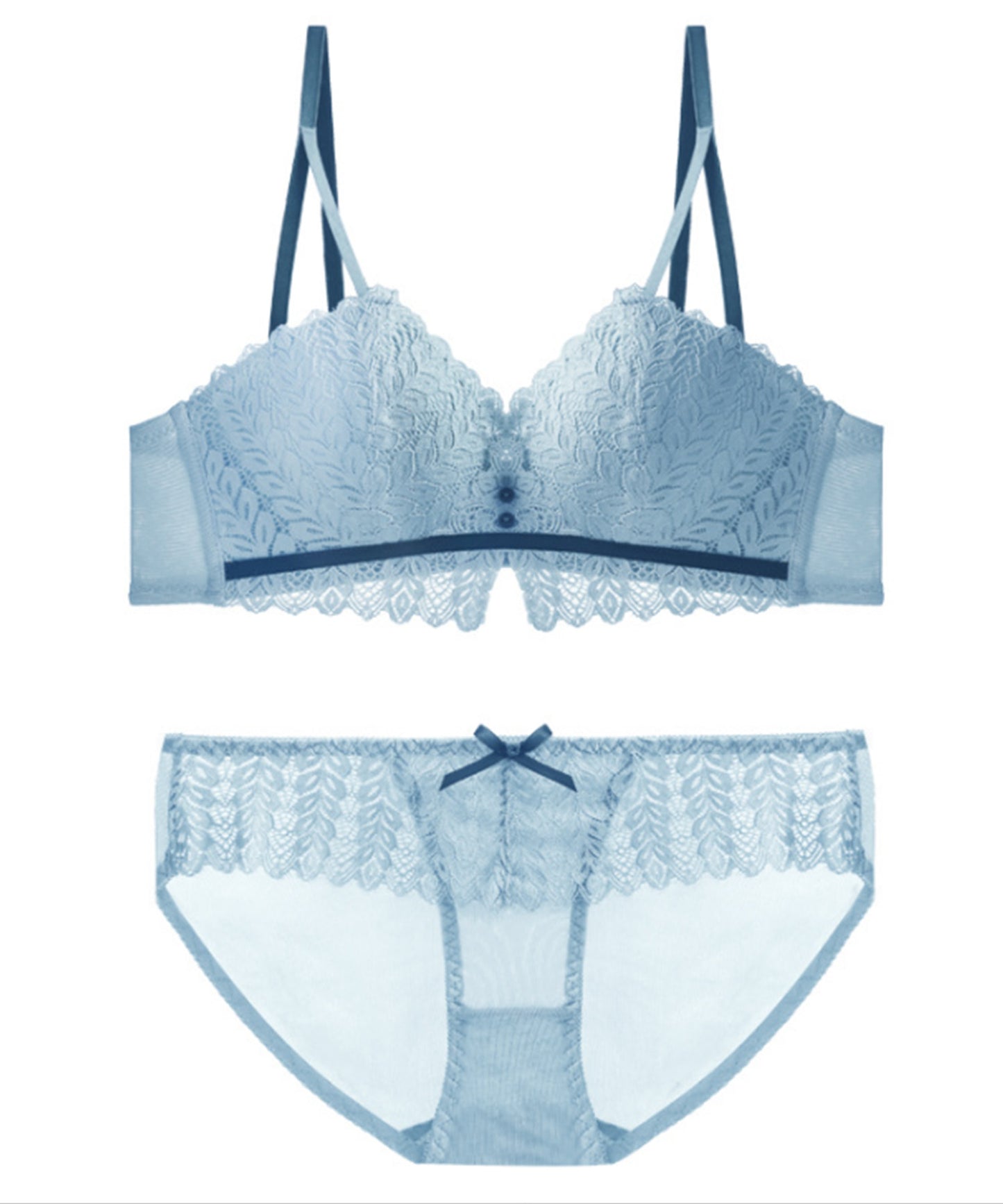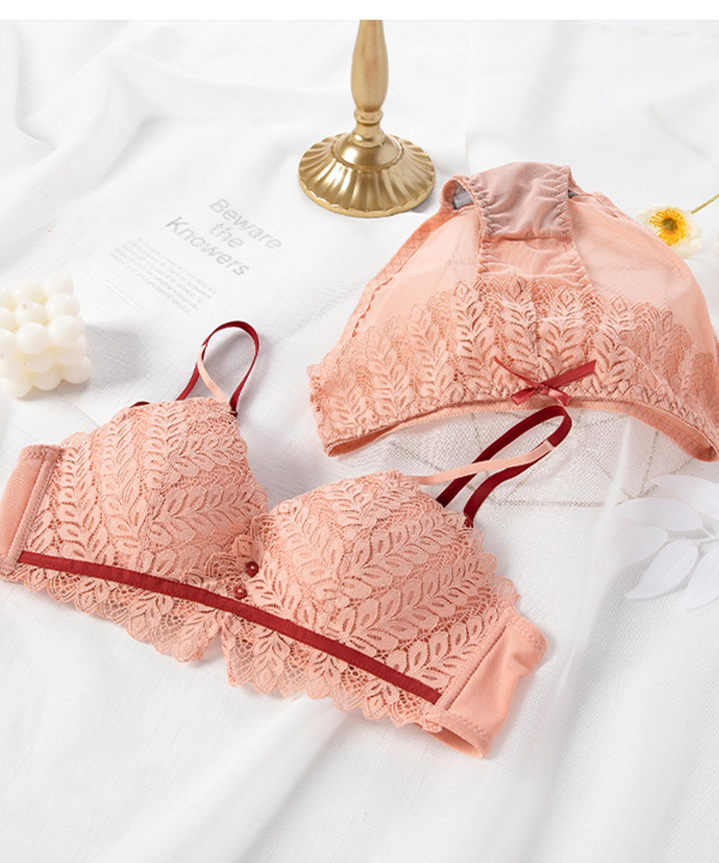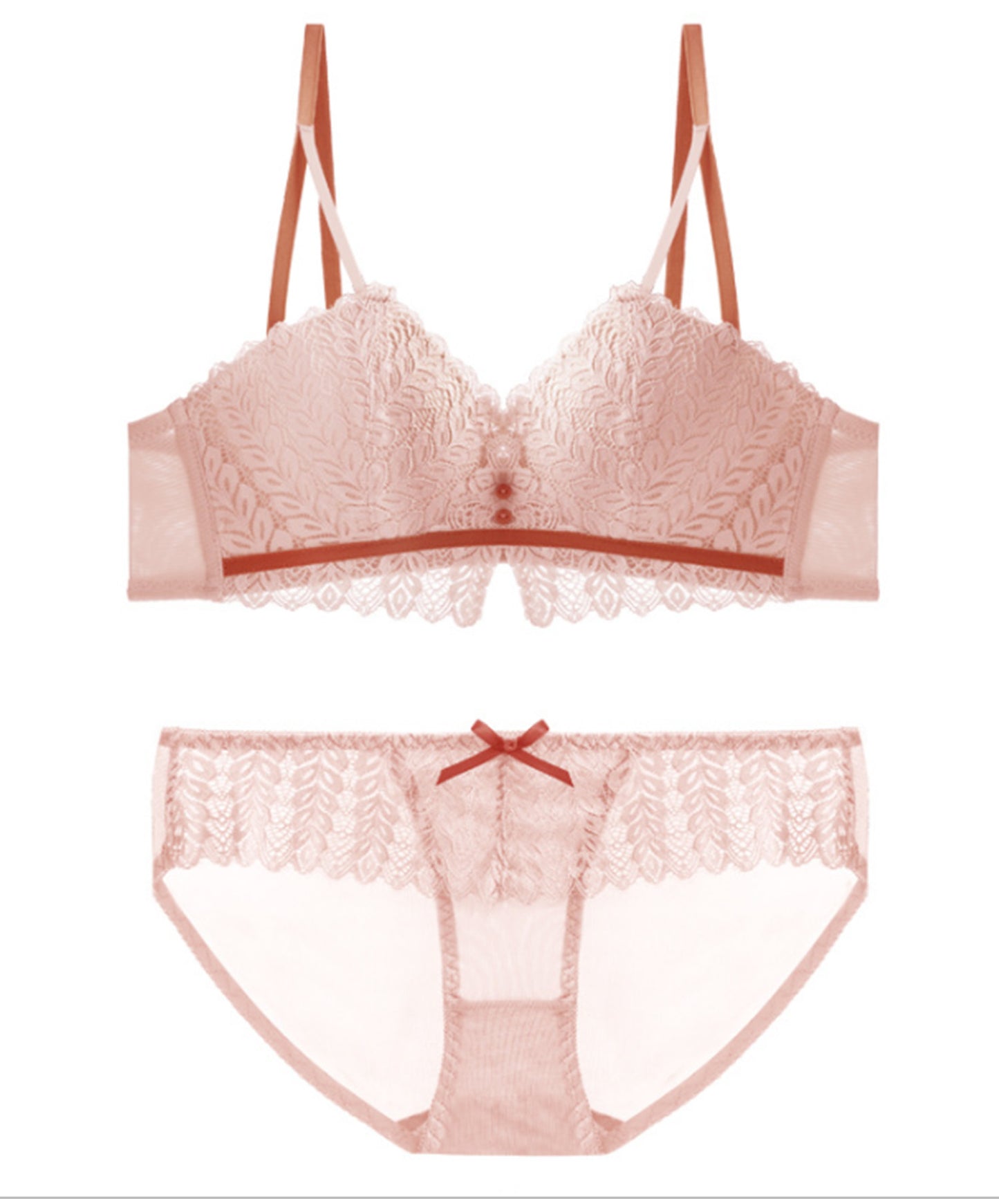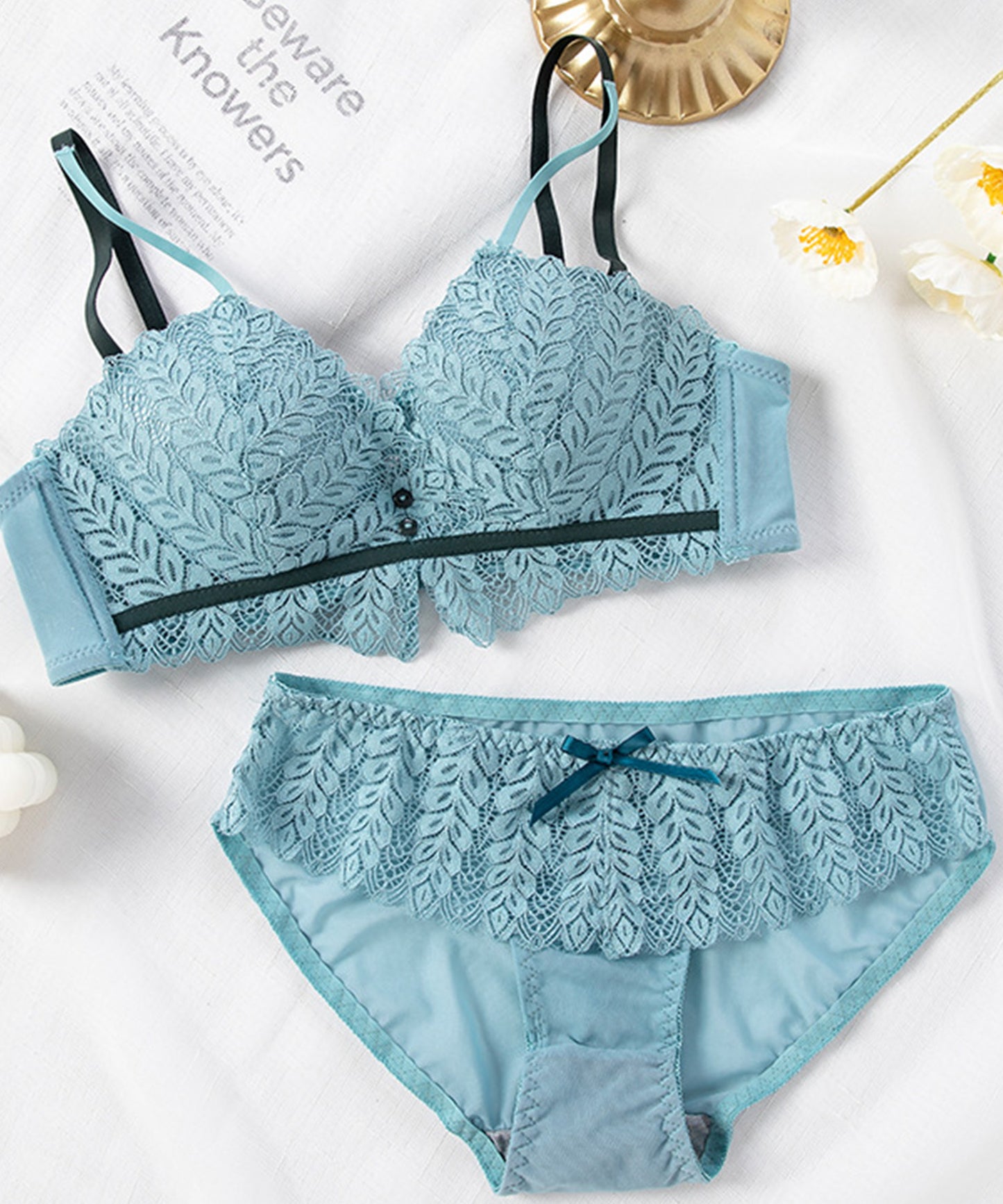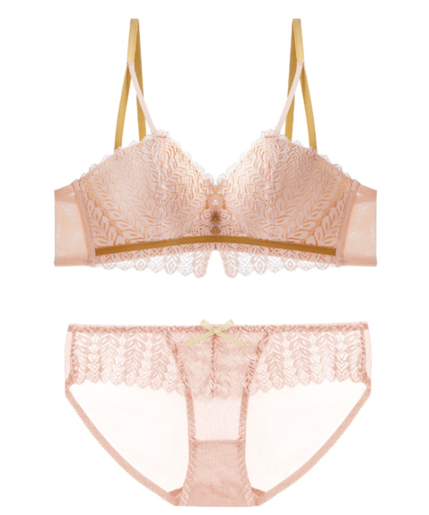 ノンワイヤー リーフ柄レースブラ&ショーツ 2点セット