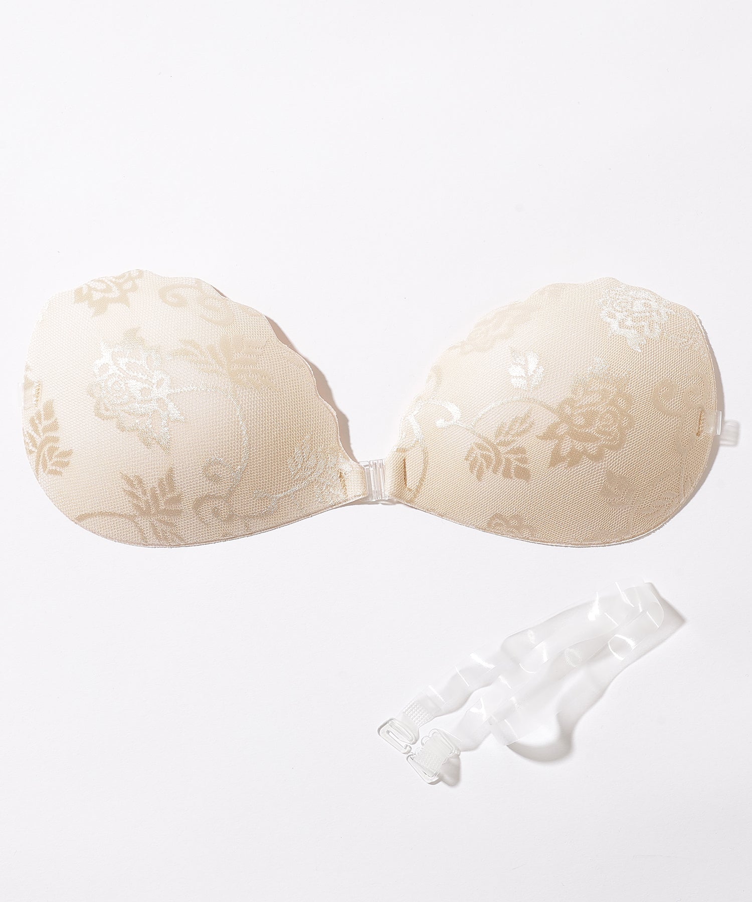 フロント ホック ボタニカル柄 ヌード ブラジャー