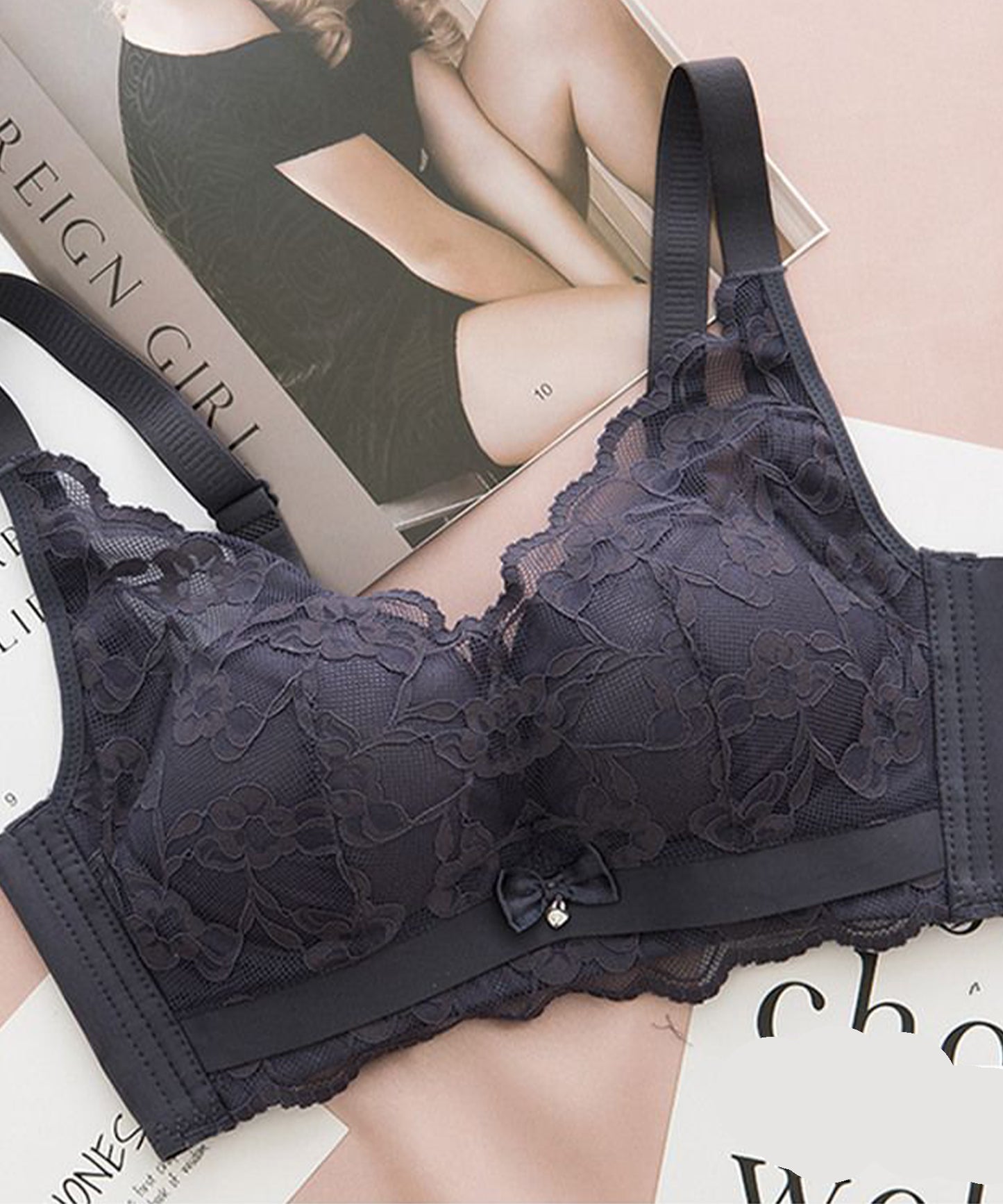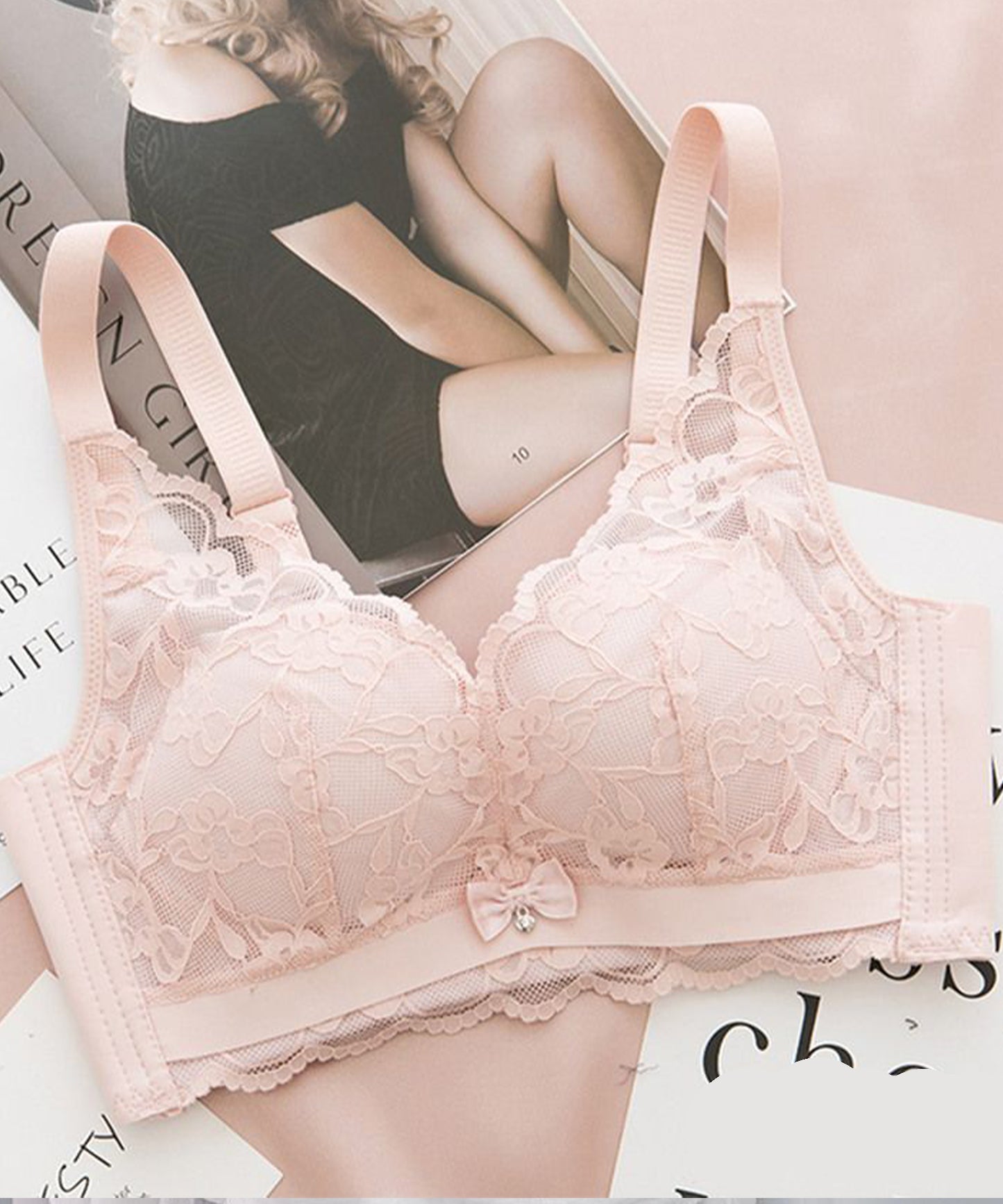 谷間メイク?ノンワイヤー花柄レースブラジャー