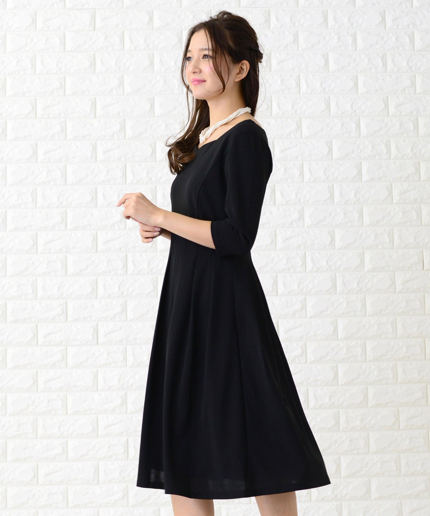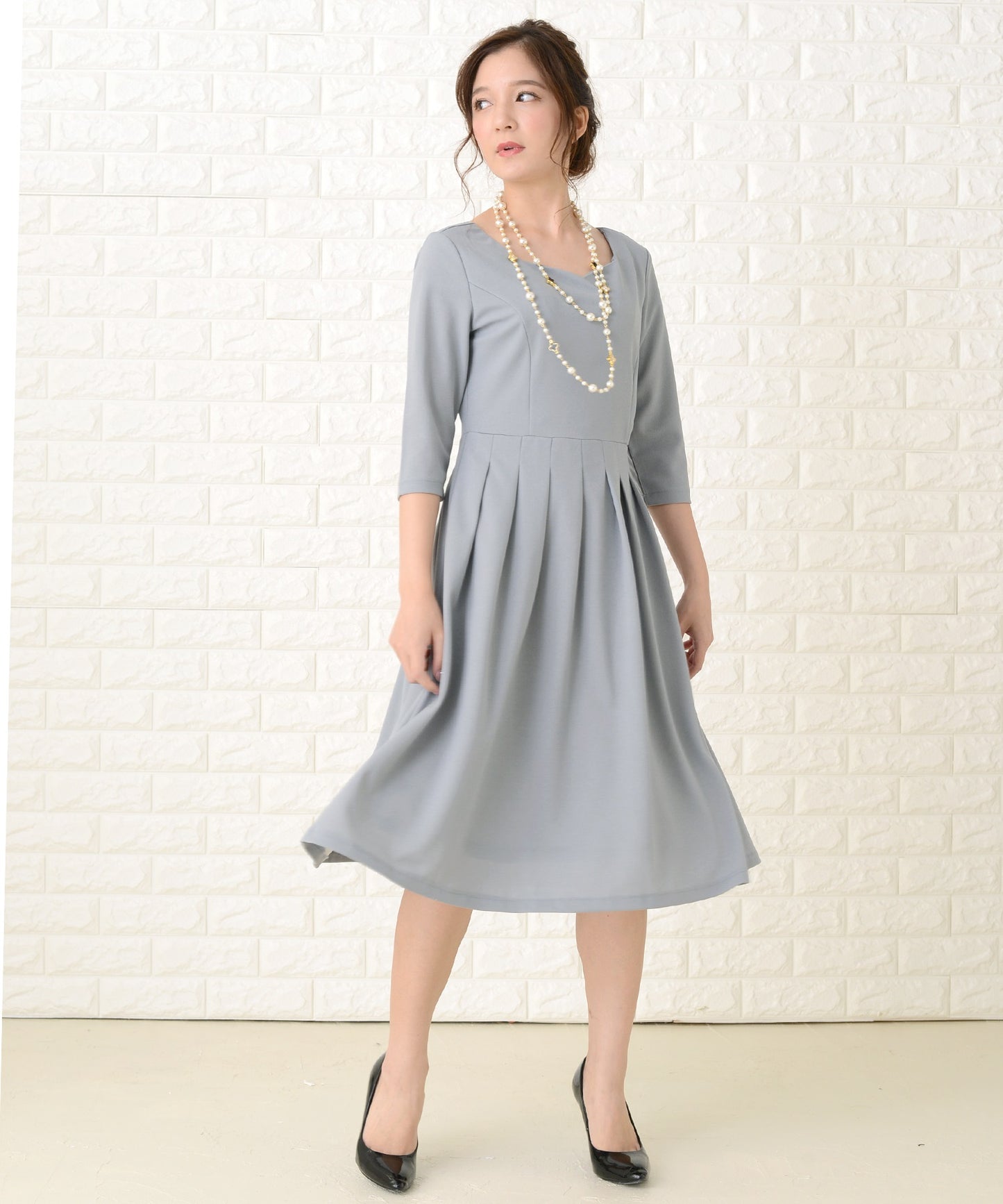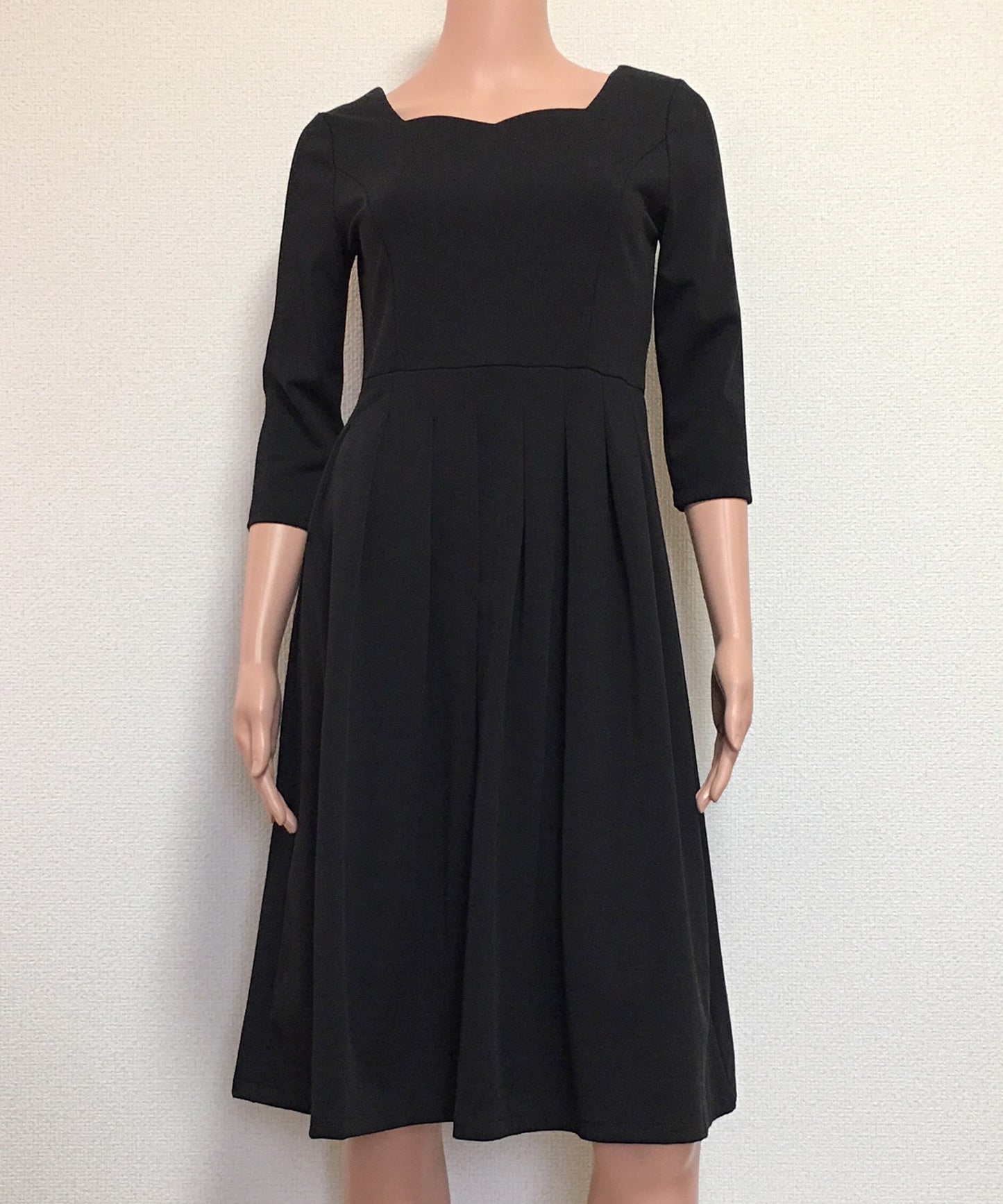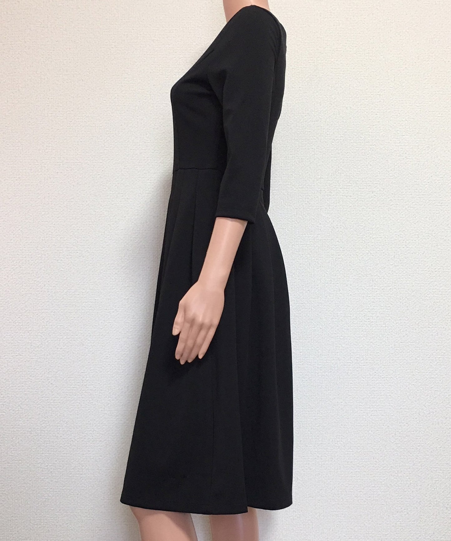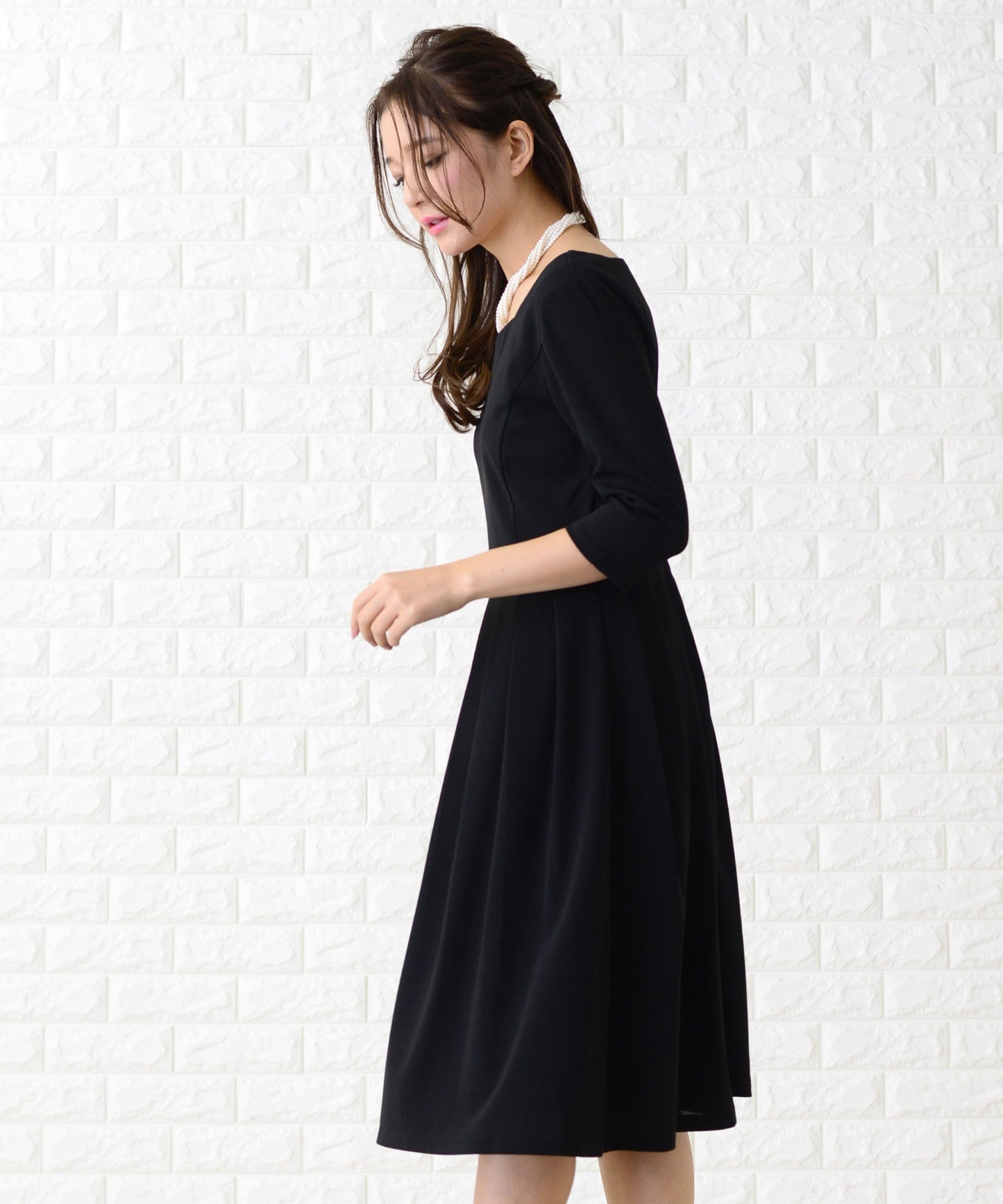 七分袖フレアスカラップネックシンプルワンピース・ドレス