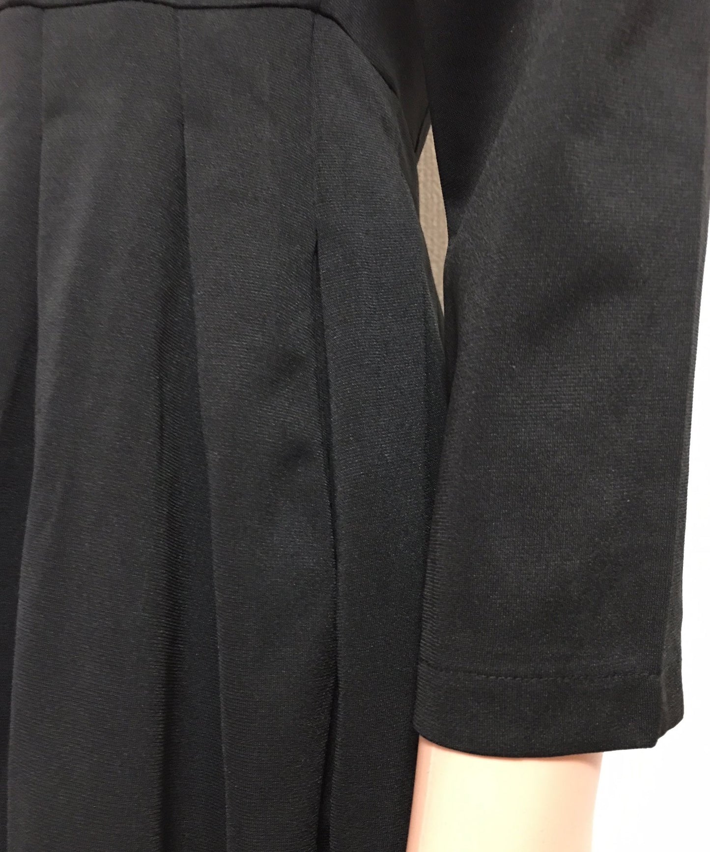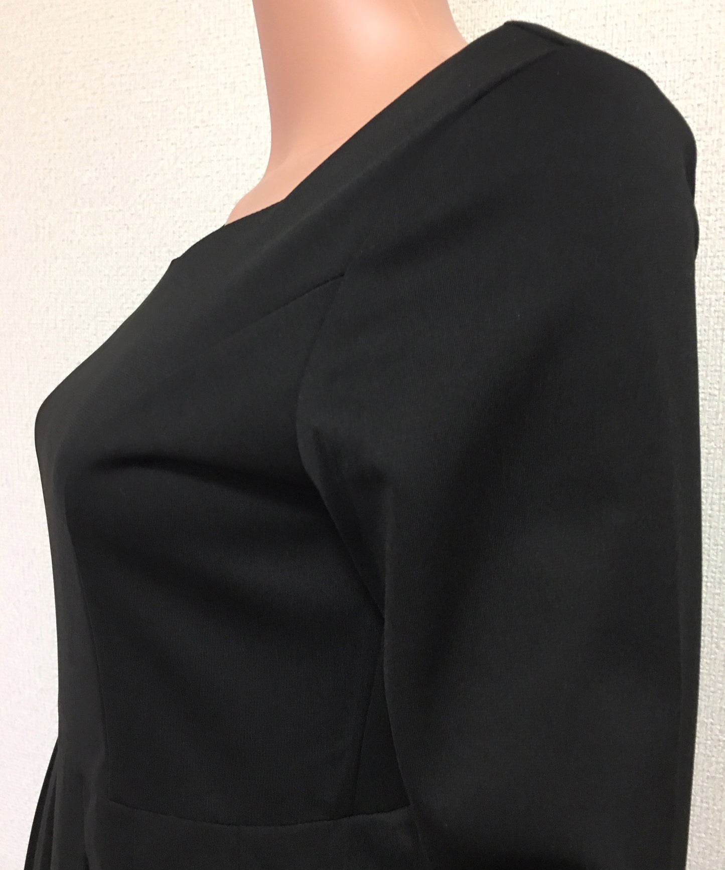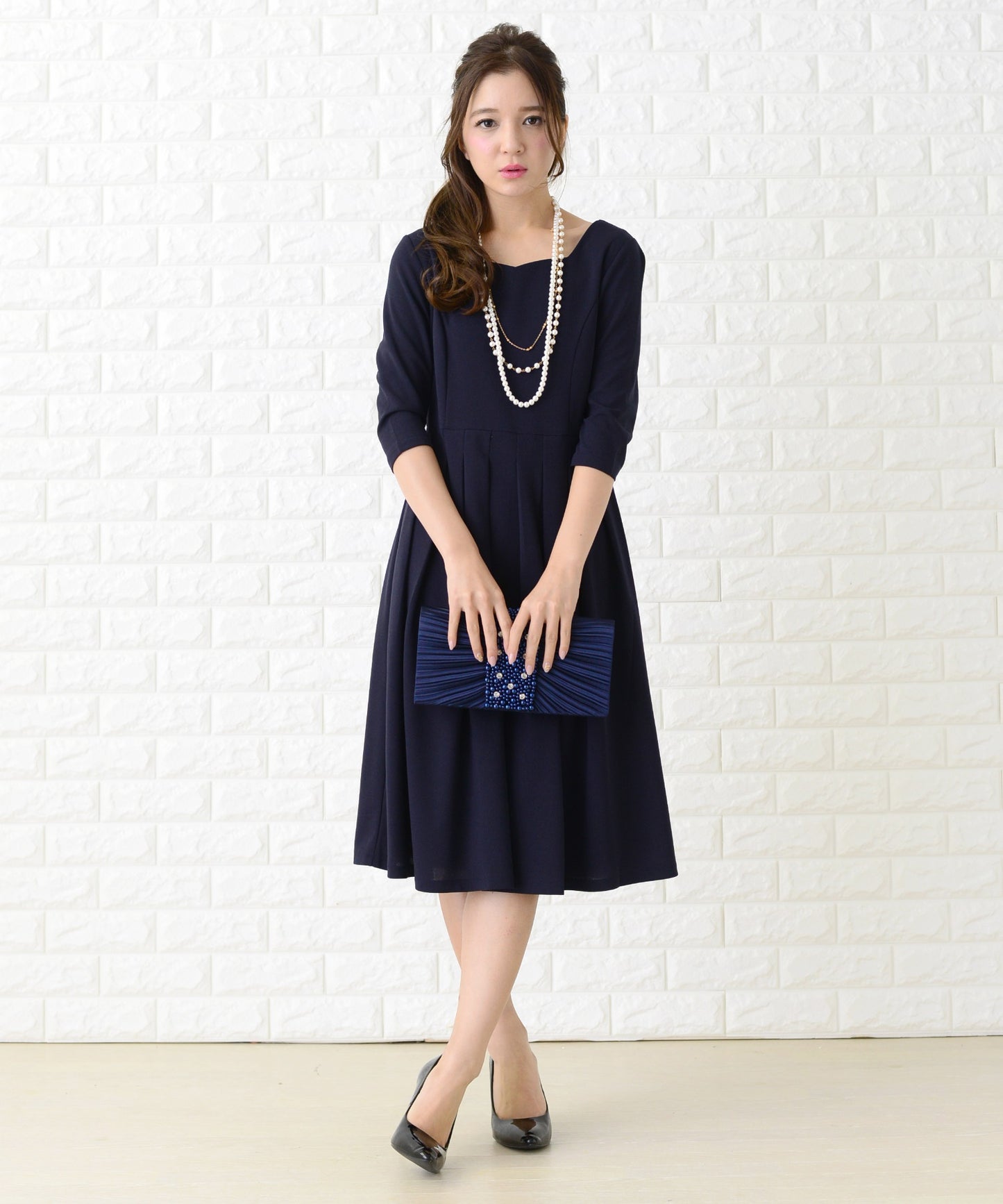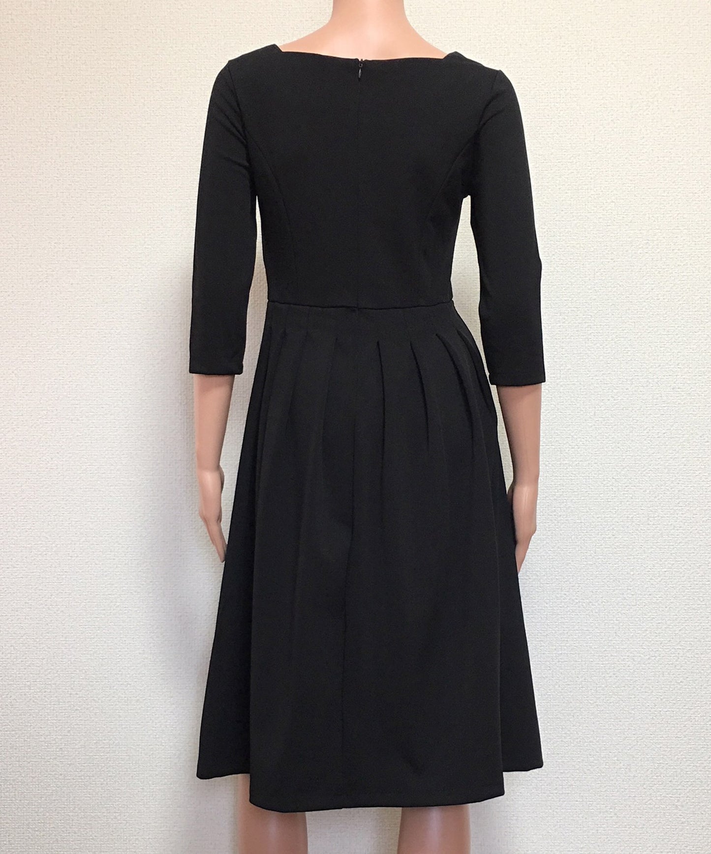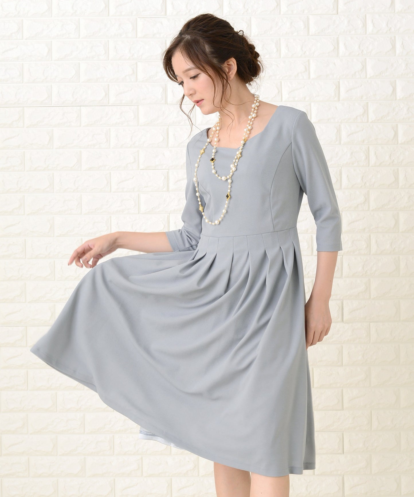 七分袖フレアスカラップネックシンプルワンピース・ドレス