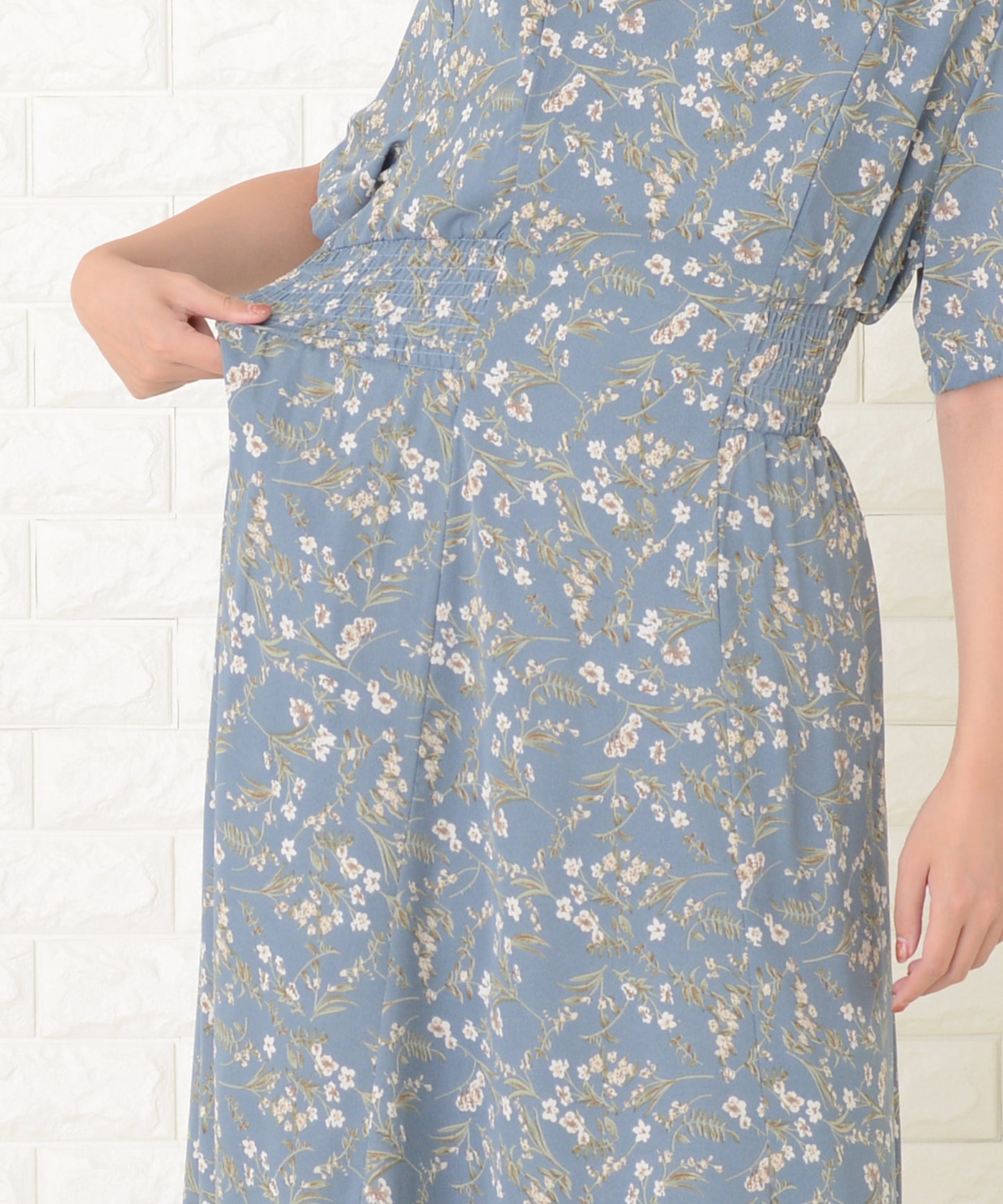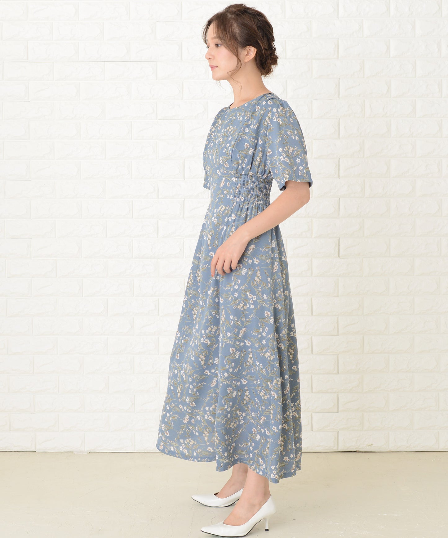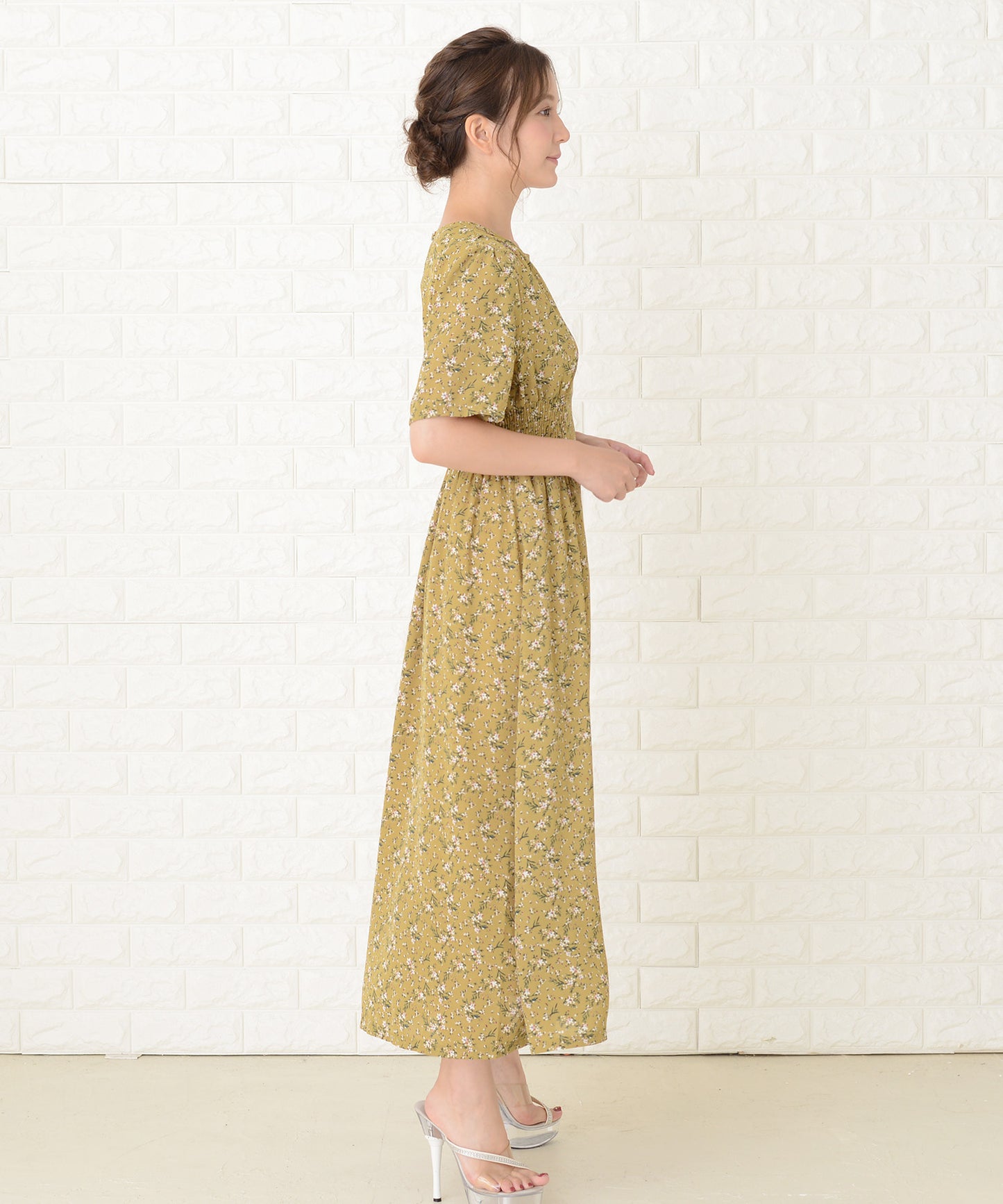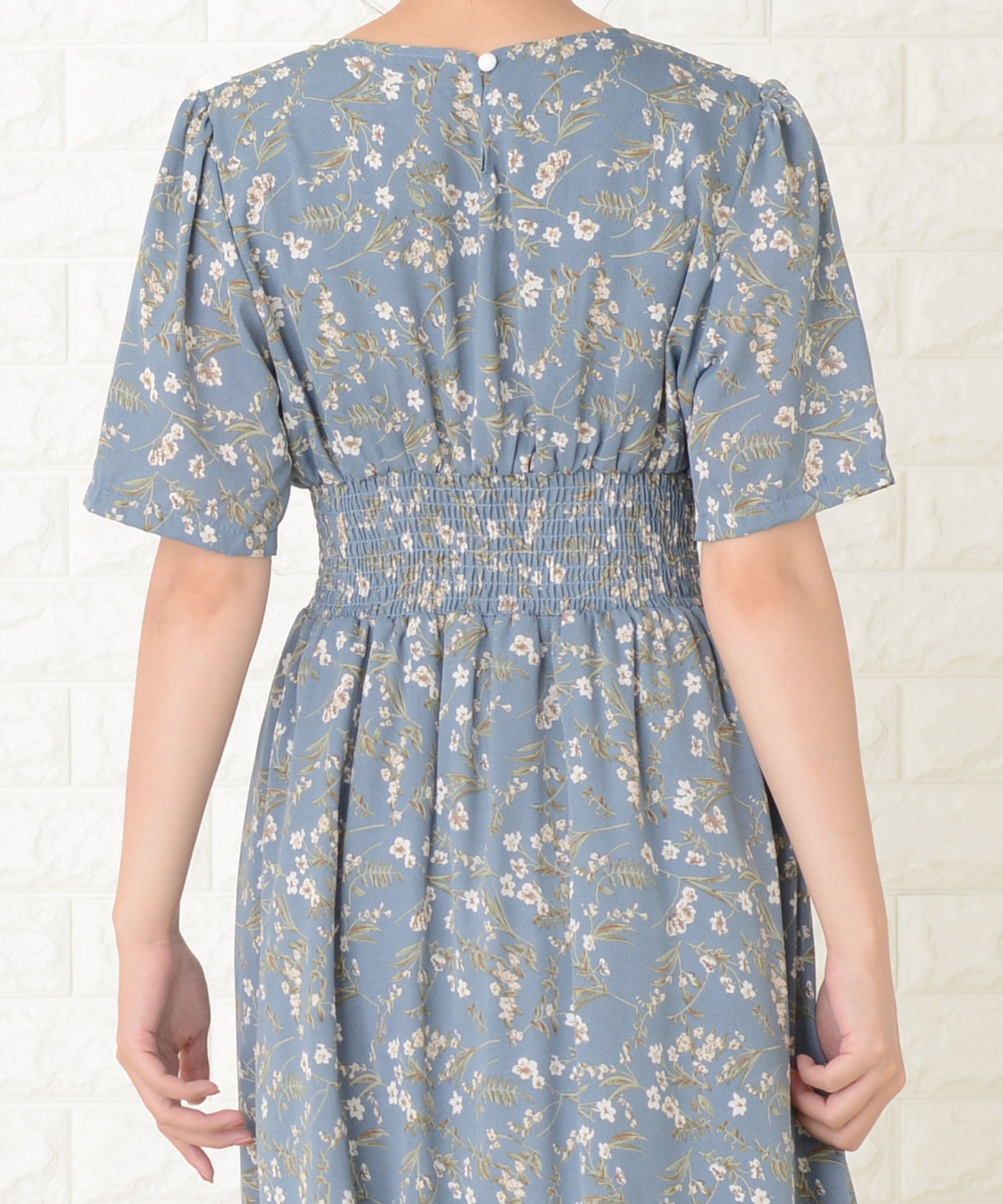 配色 クルーネック キャンディースリーブ ギャザー ドレス