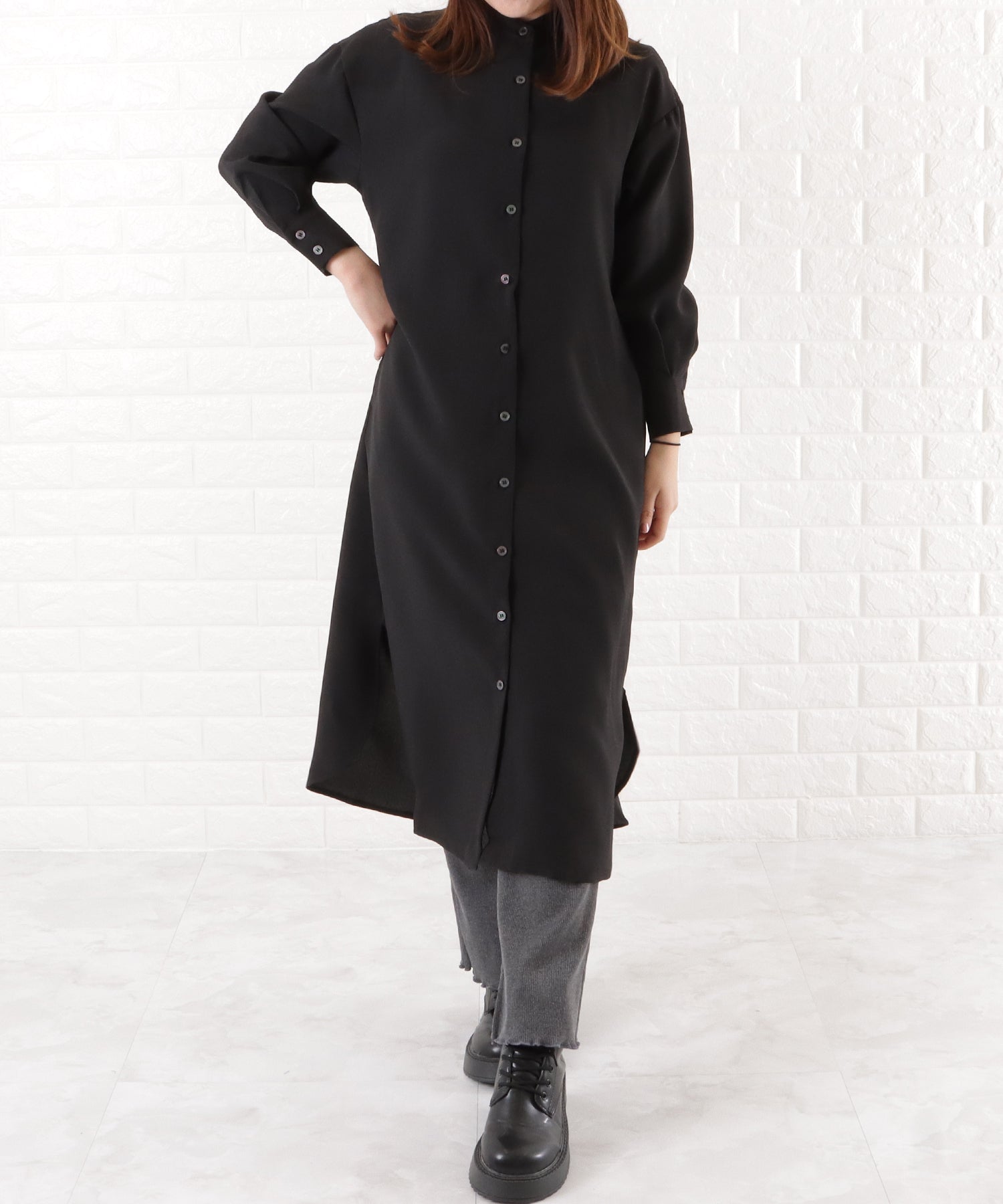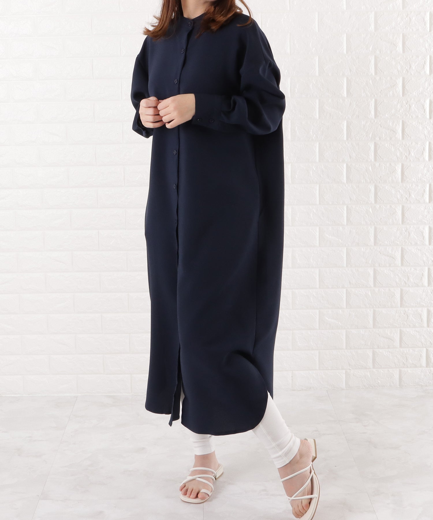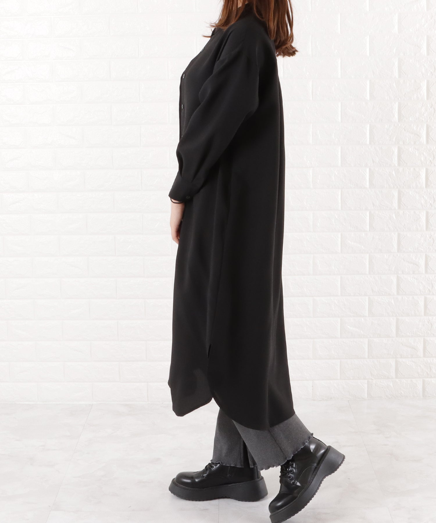 やわらかめの生地で、さらっとした着心地のシャツワンピース