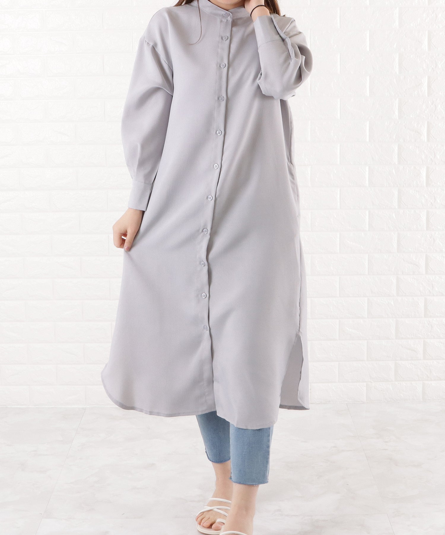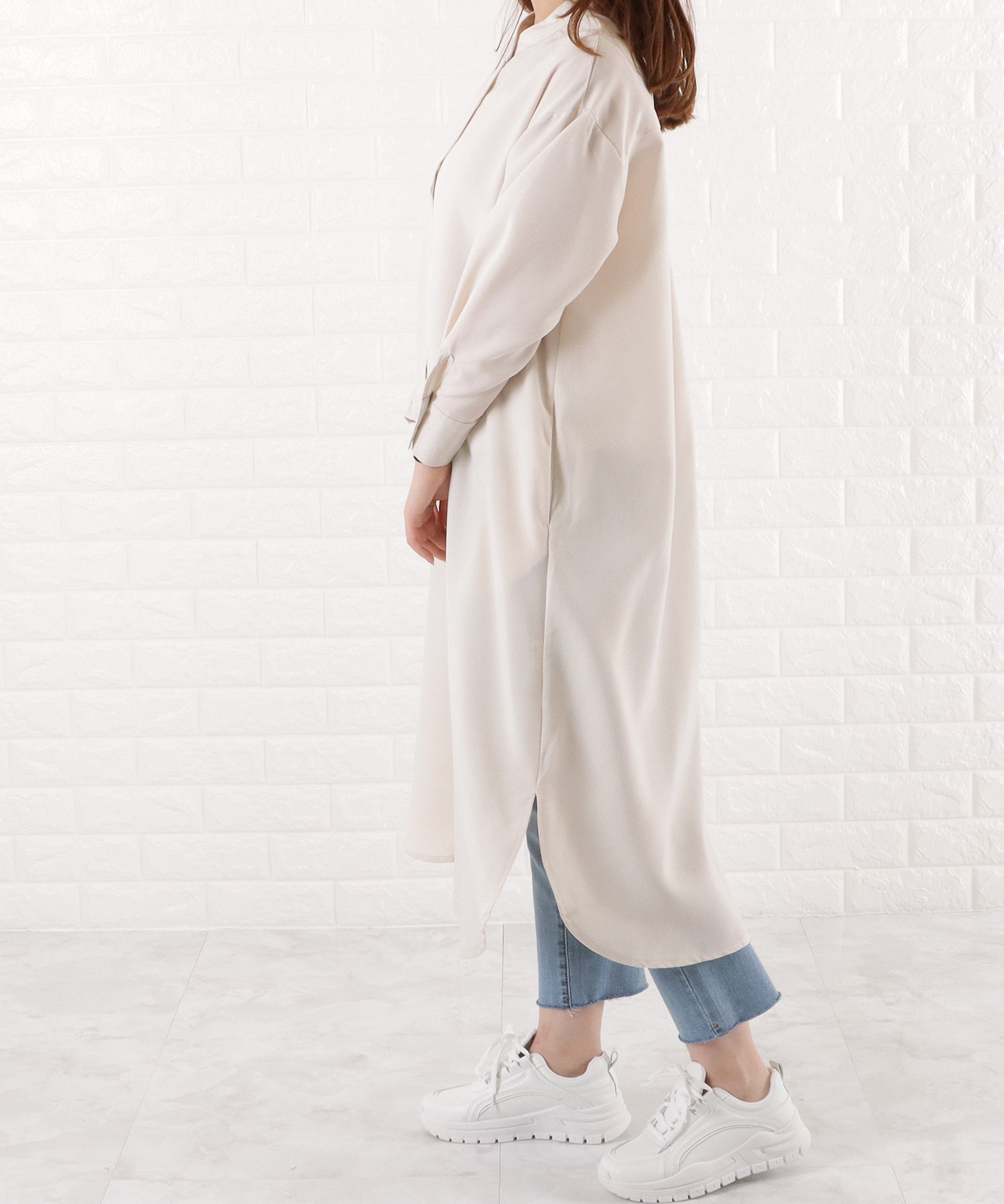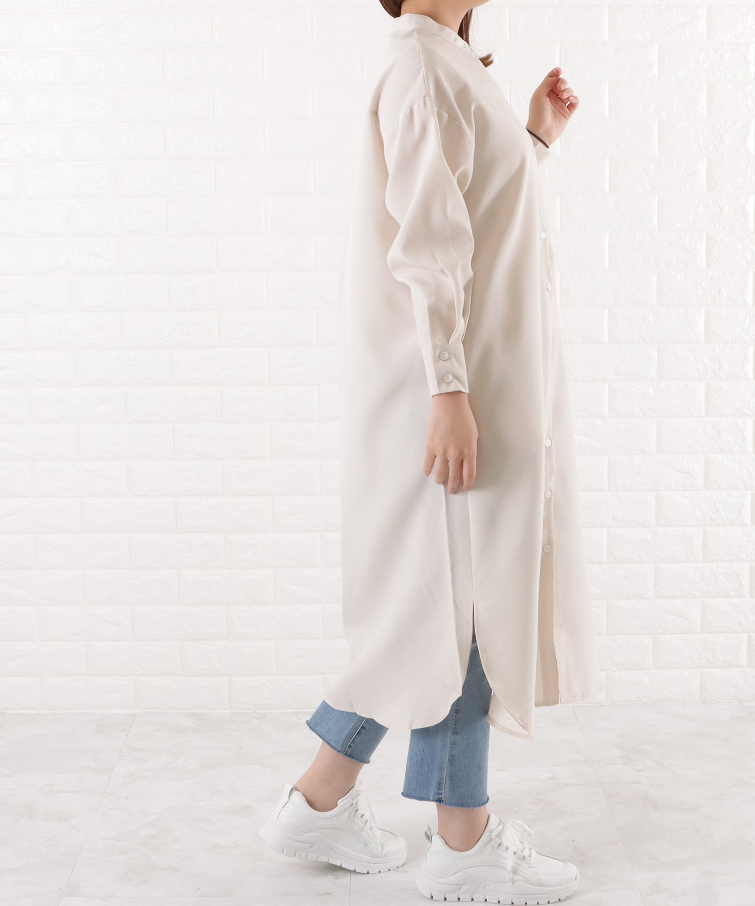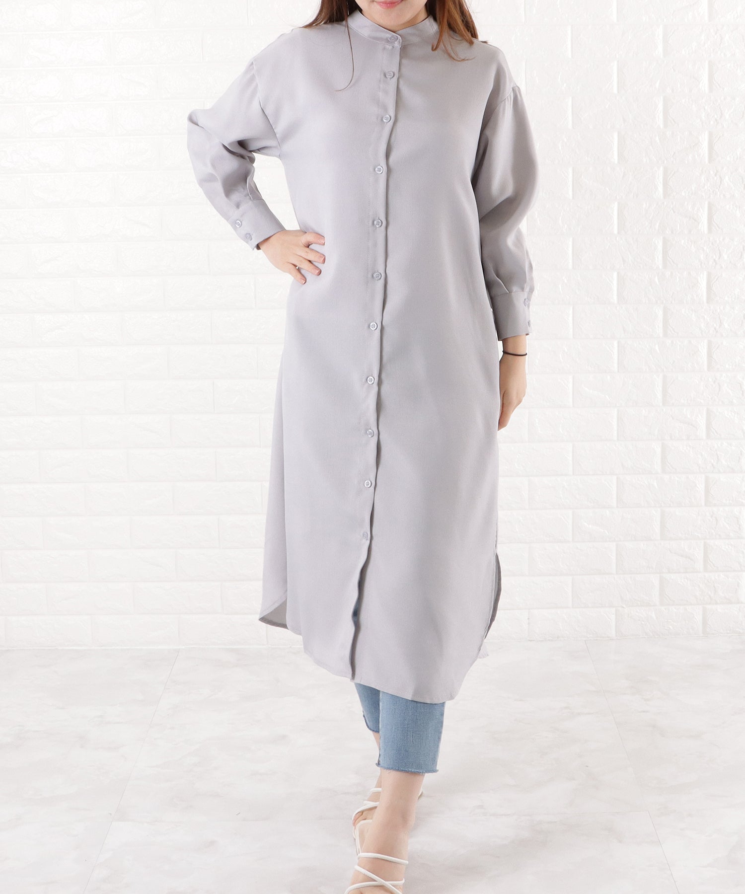 やわらかめの生地で、さらっとした着心地のシャツワンピース