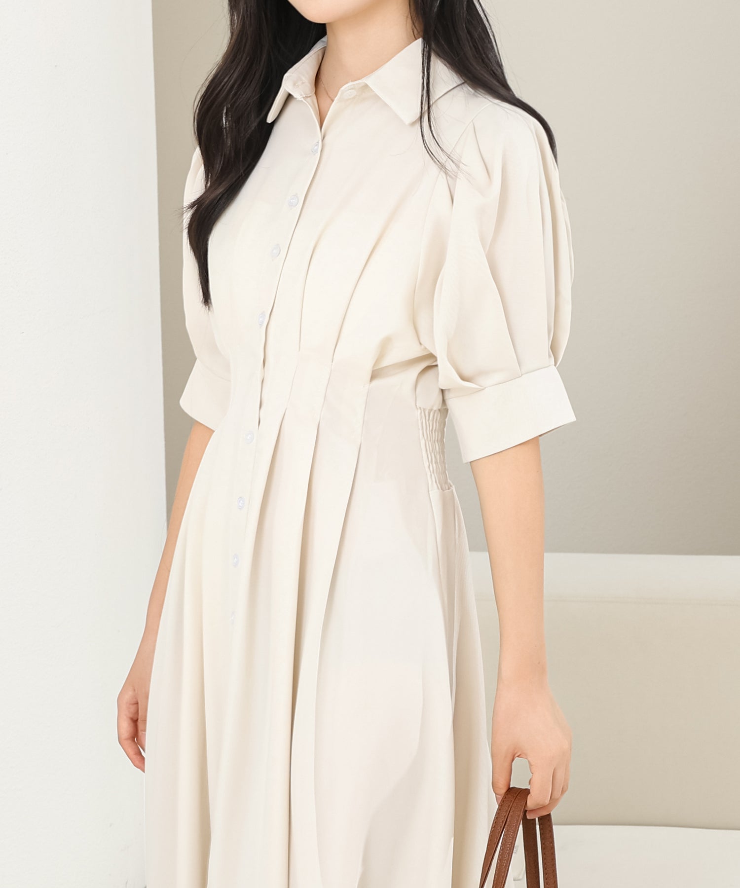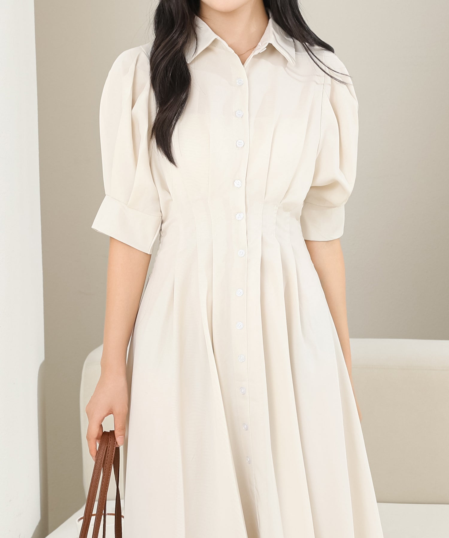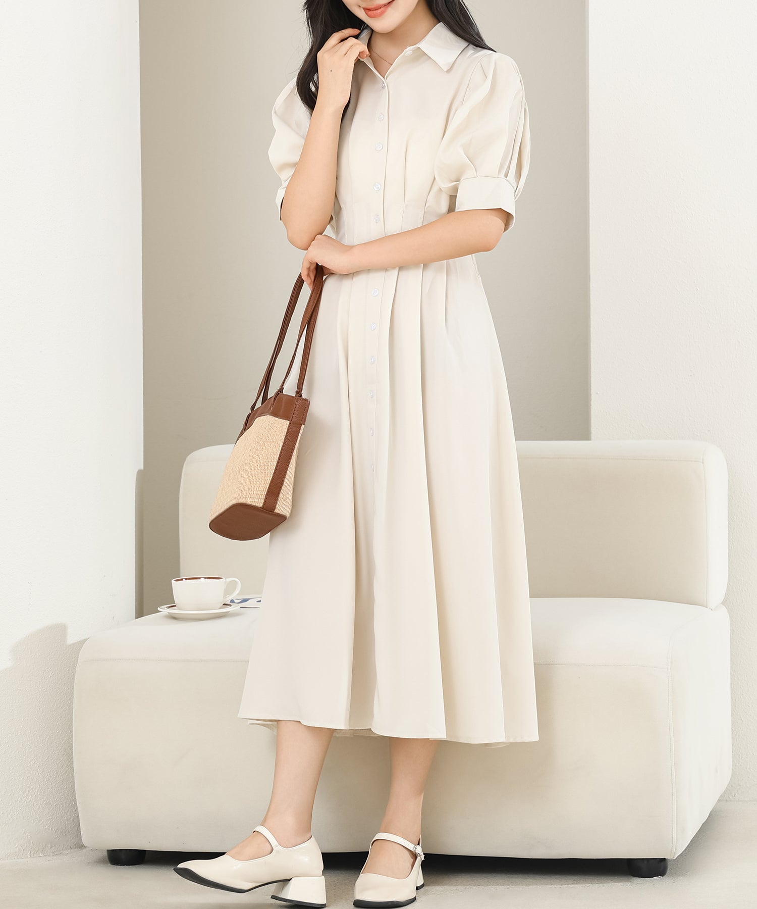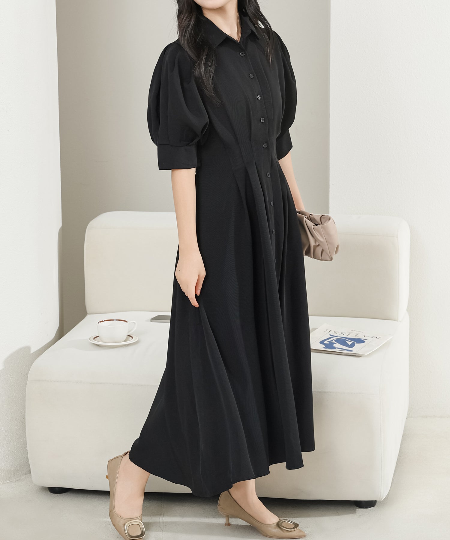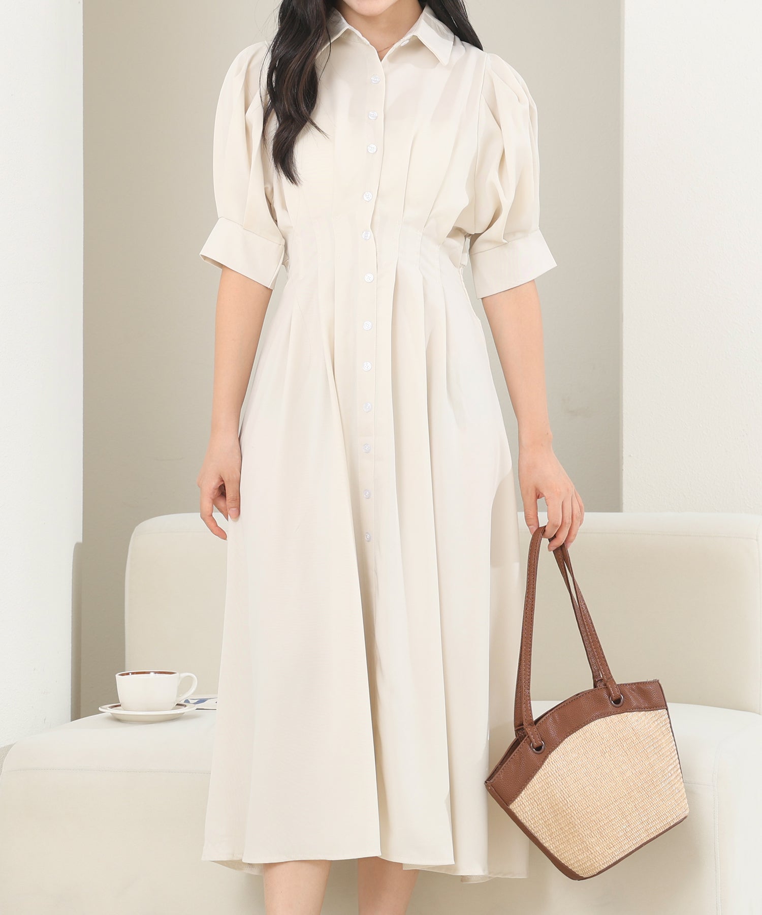 お嬢様感たっぷりのパフスリーブが目を引くワンピース。