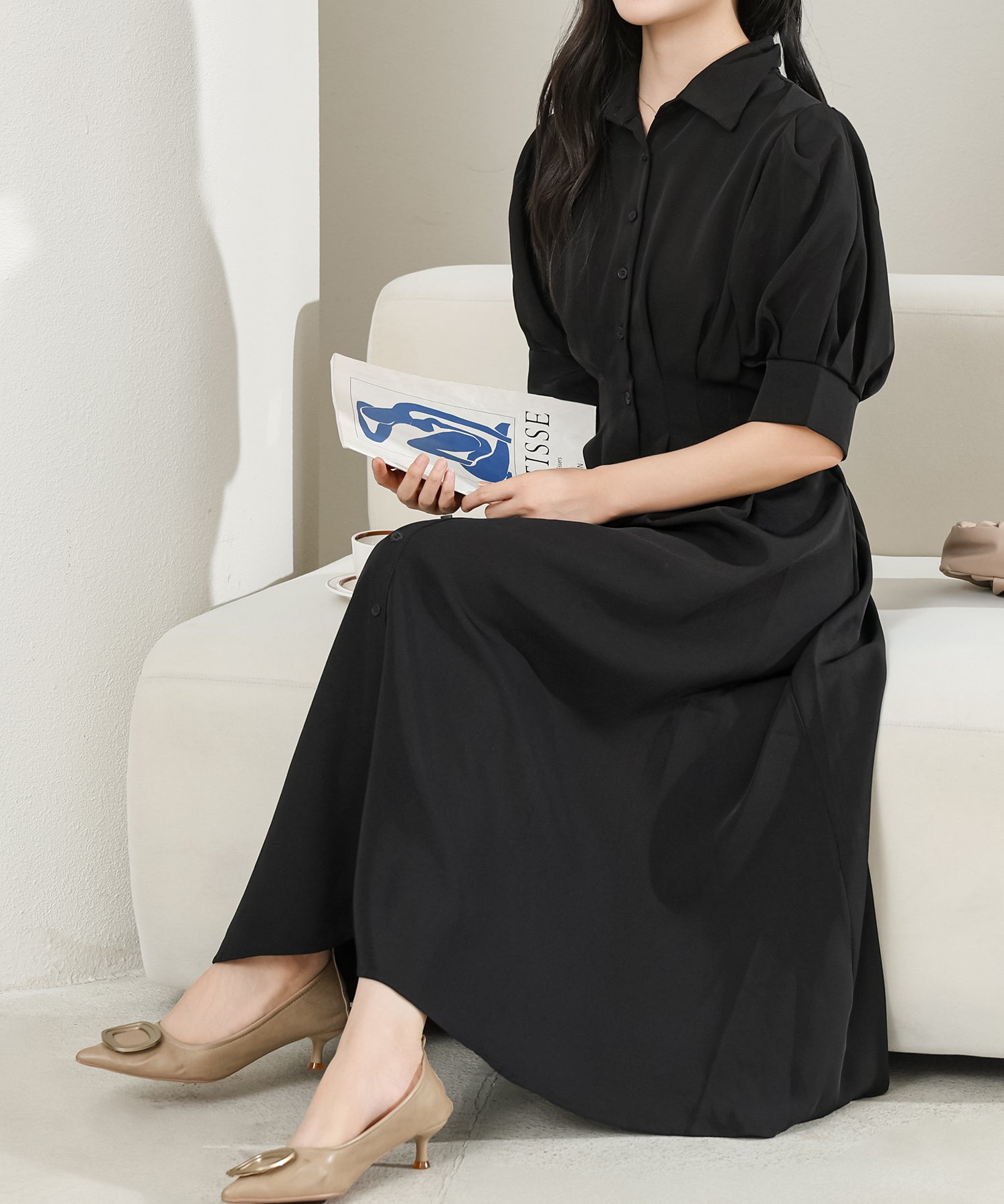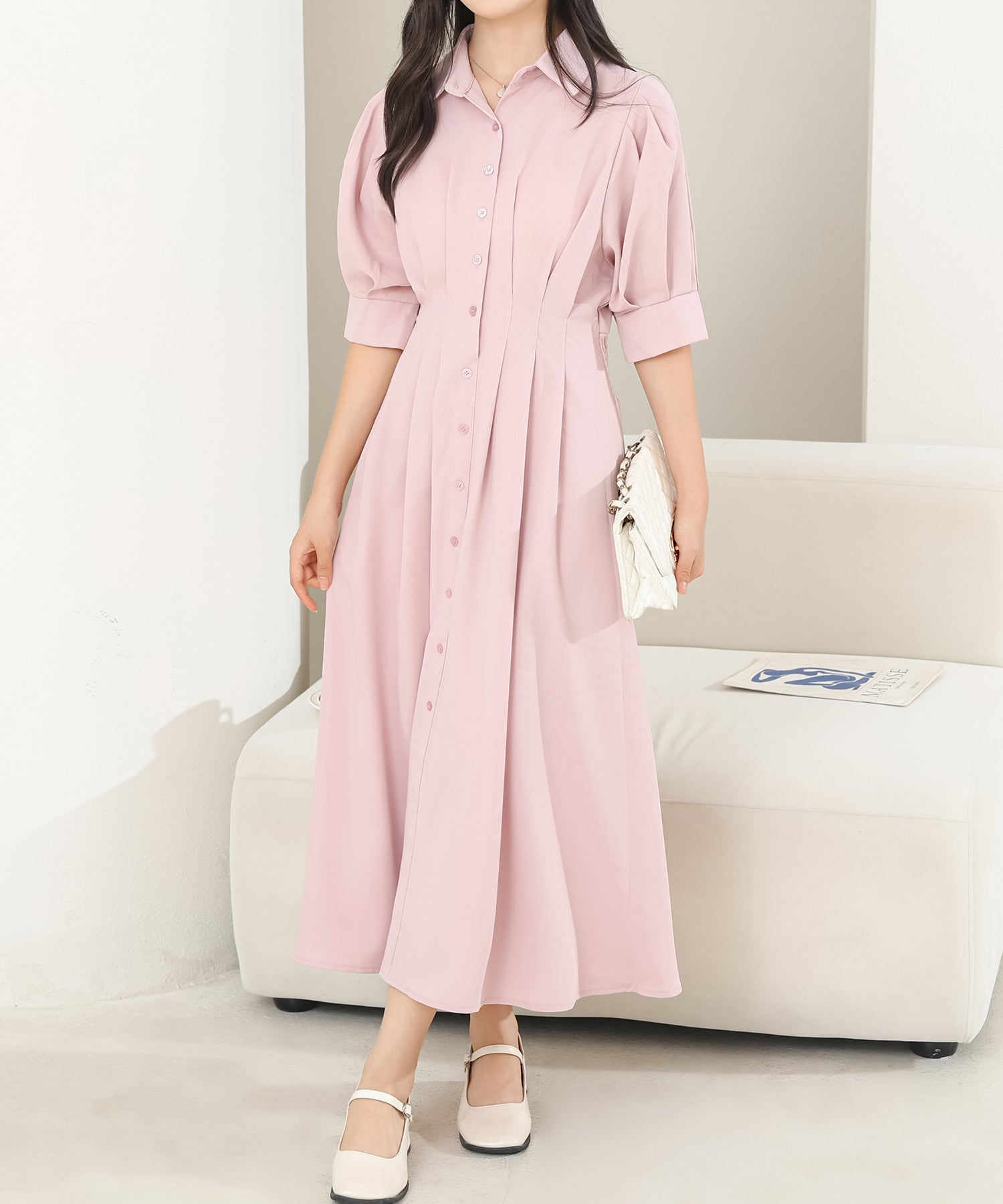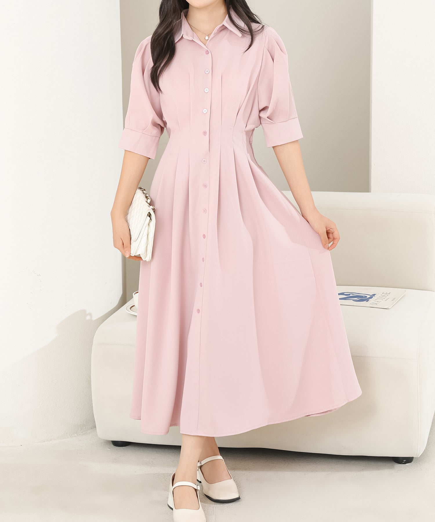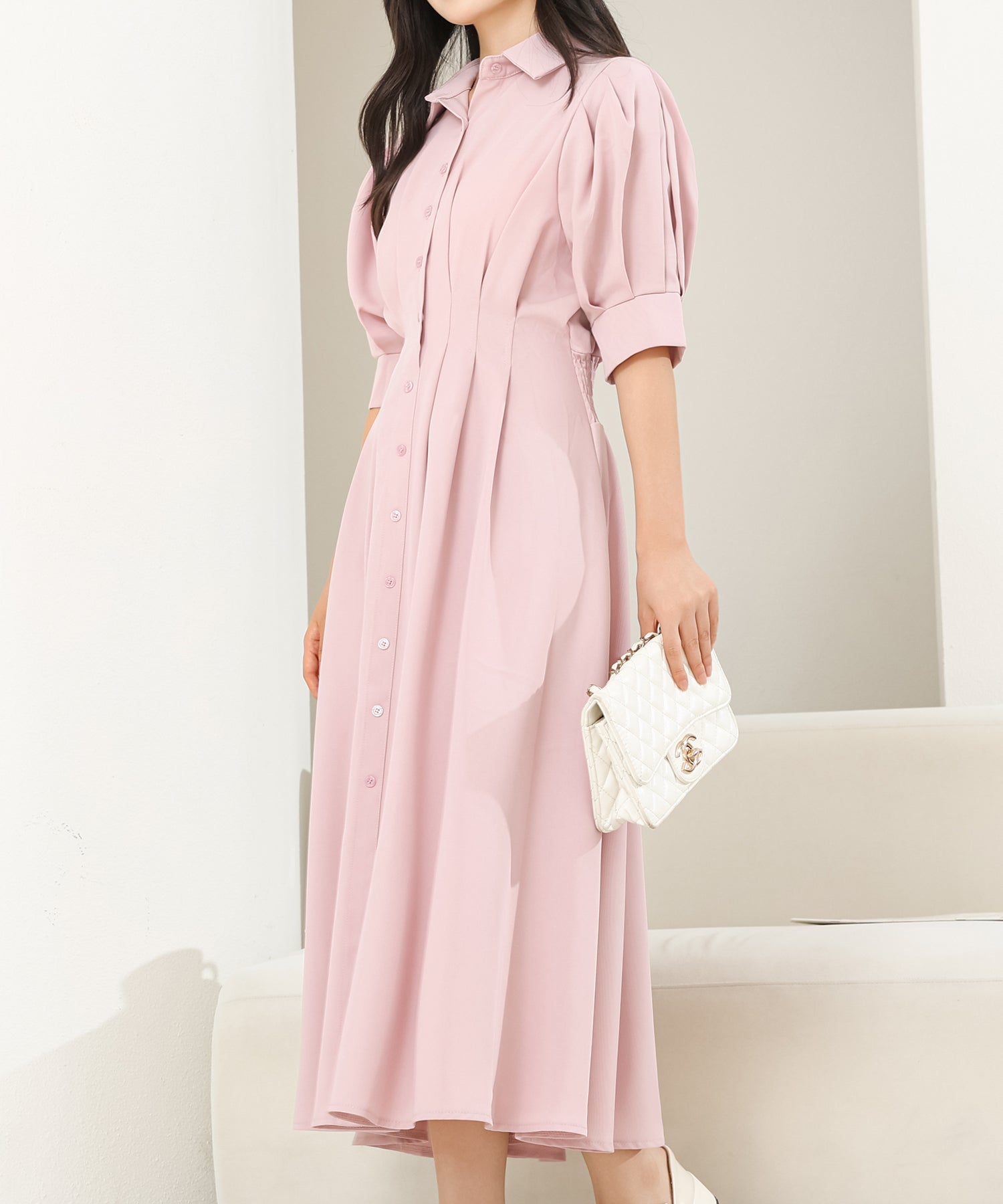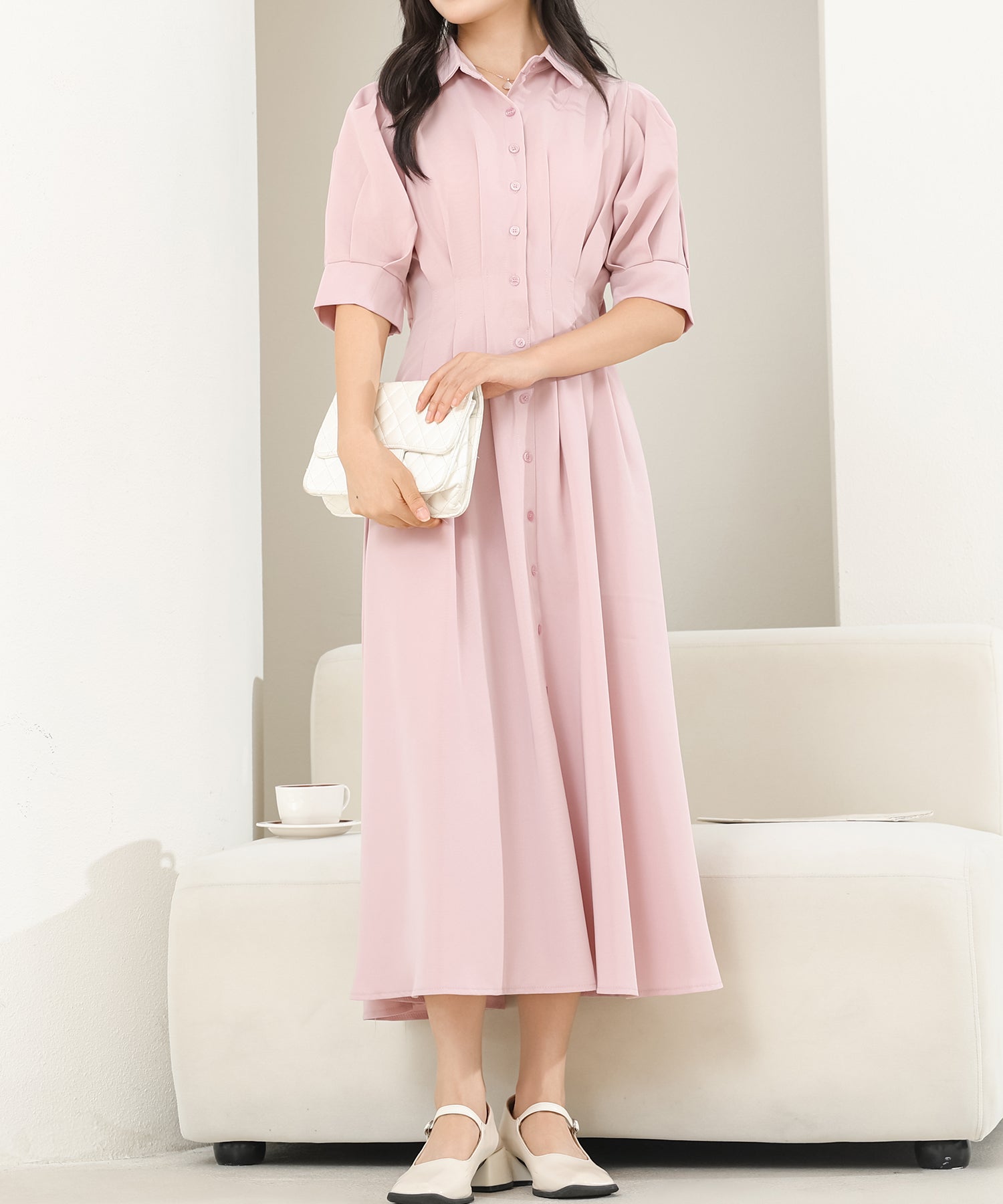 お嬢様感たっぷりのパフスリーブが目を引くワンピース。