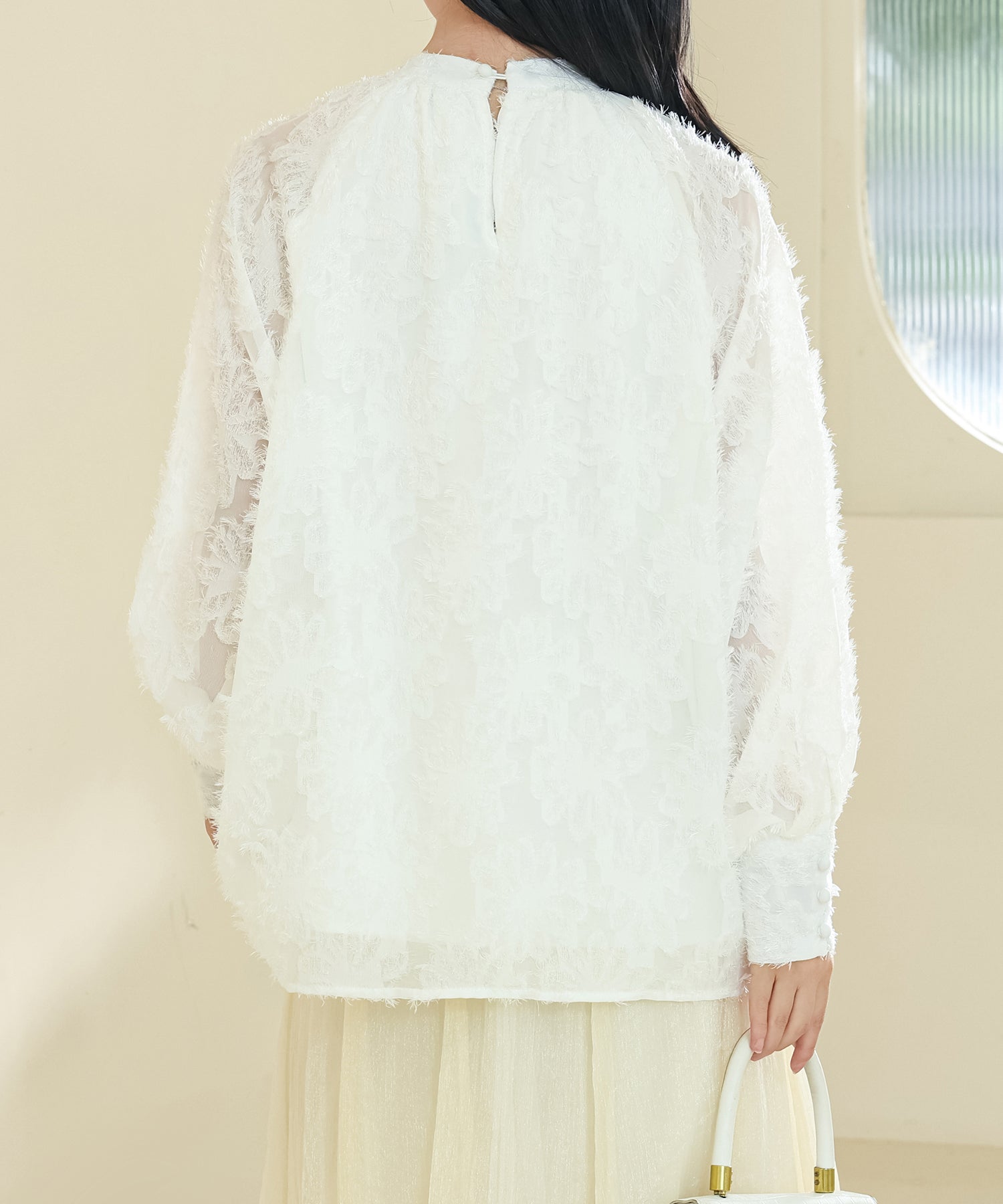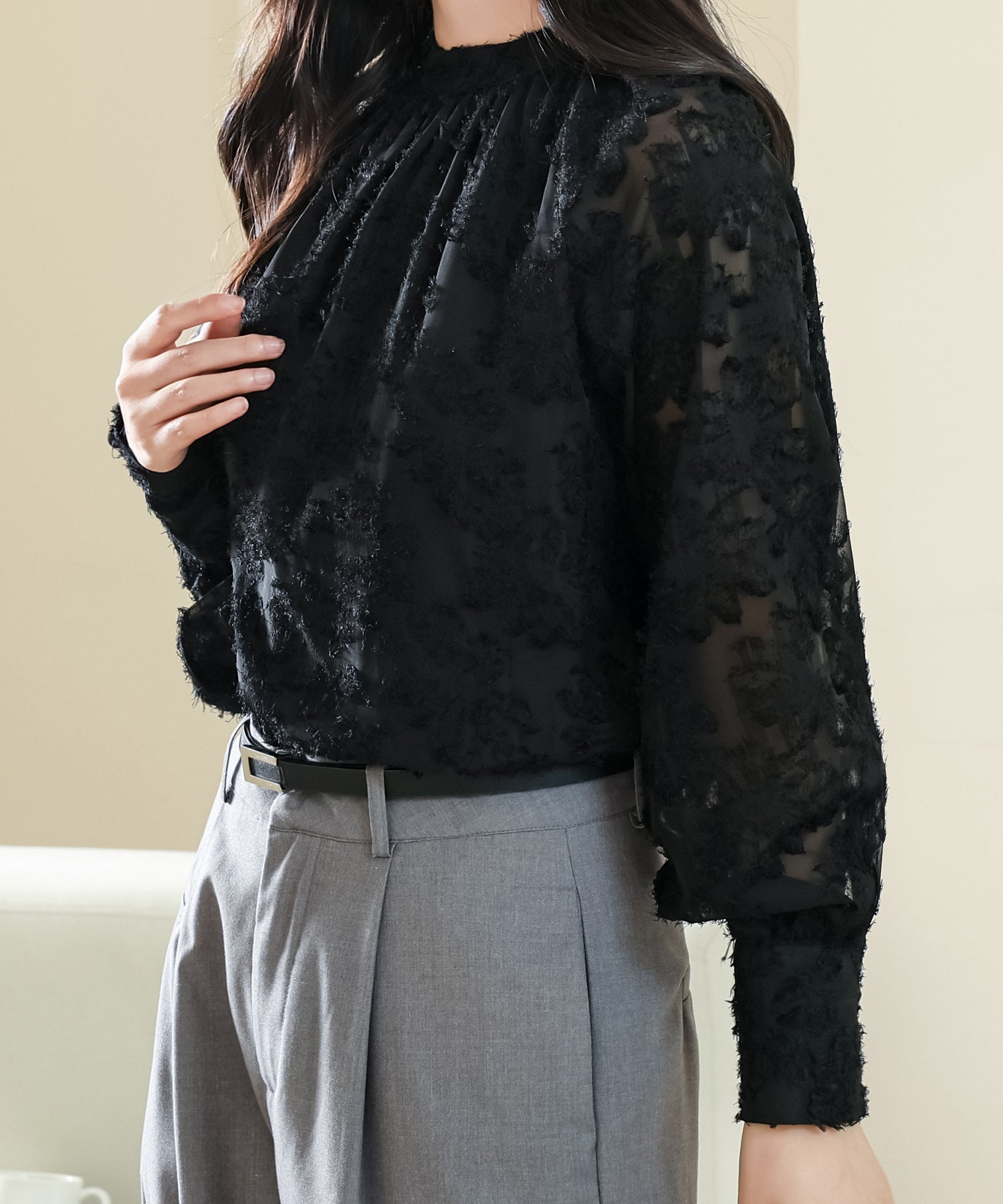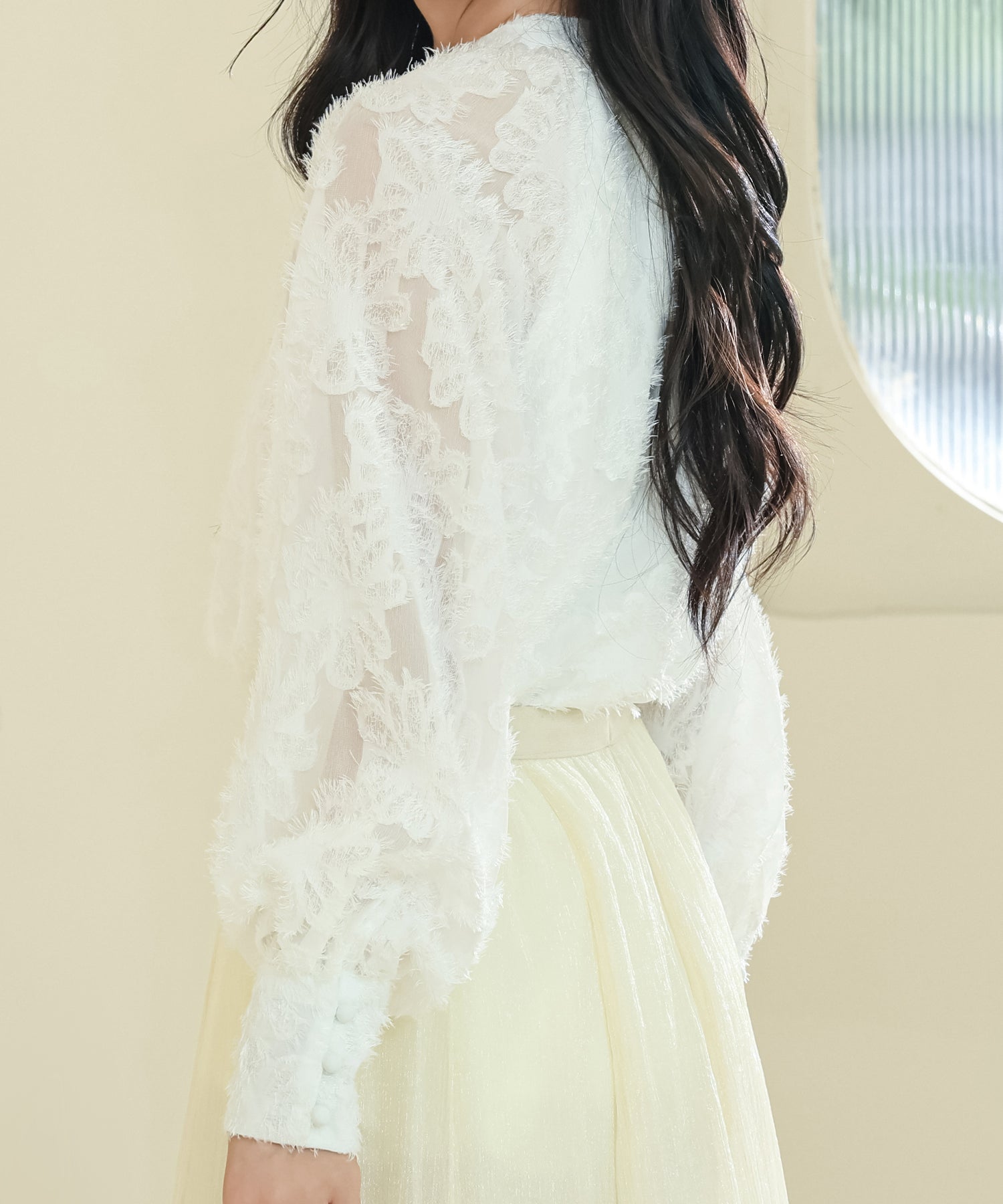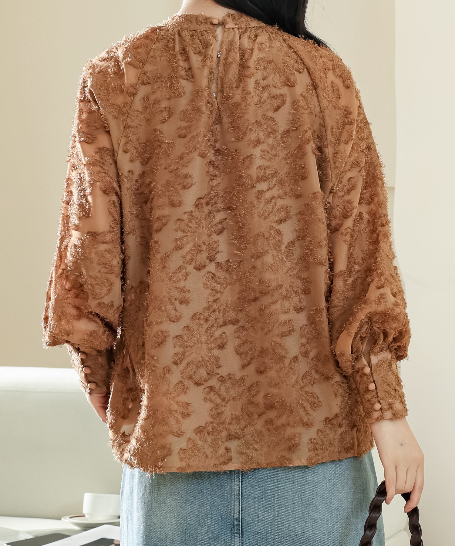 花柄 シャギー ボリューム袖 ギャザー シアー ブラウス