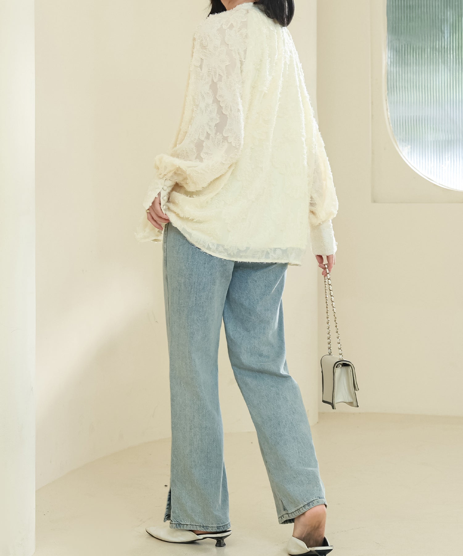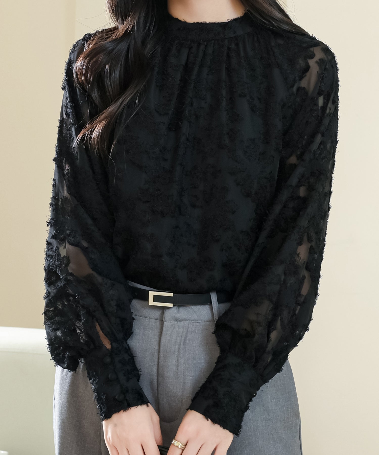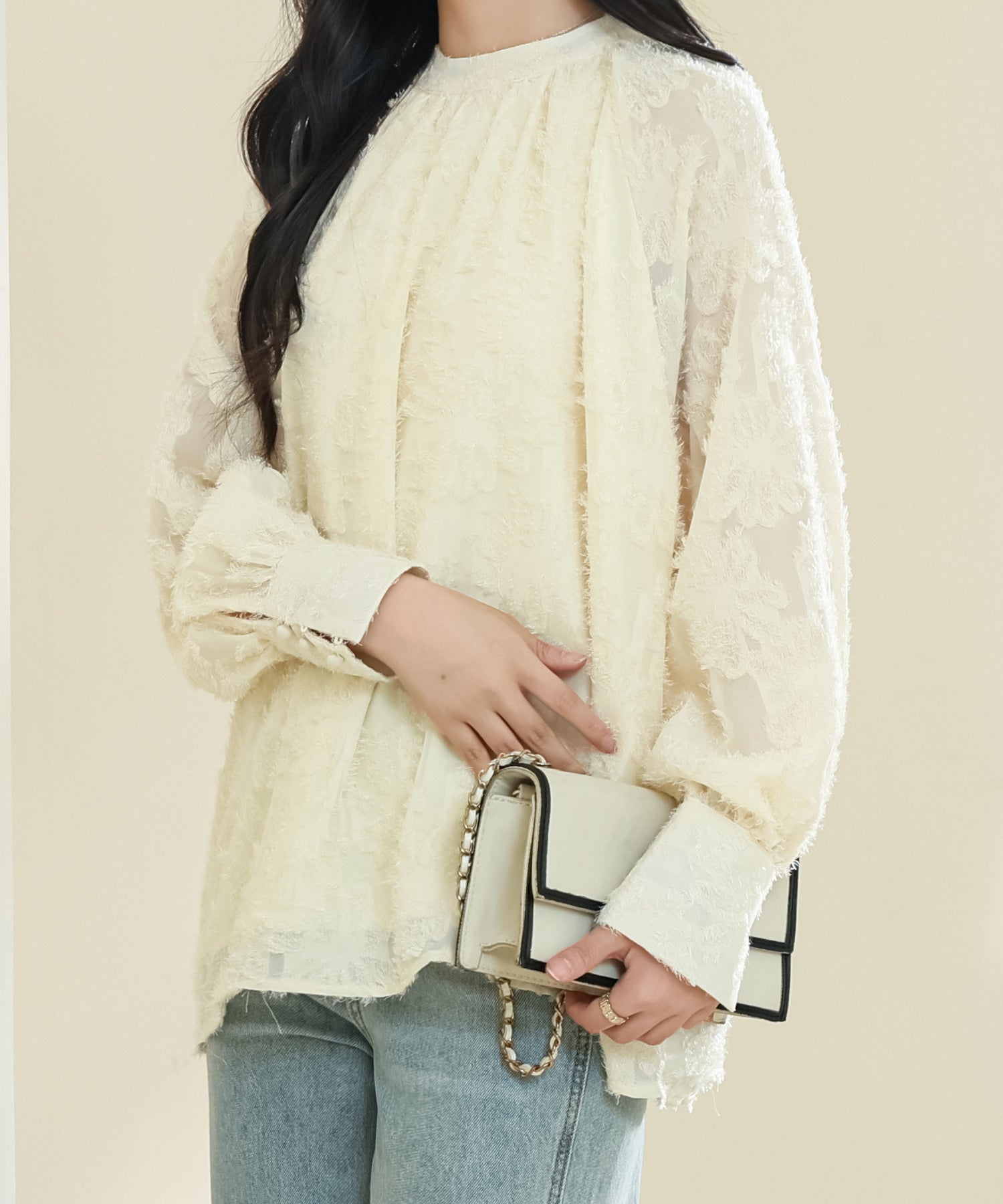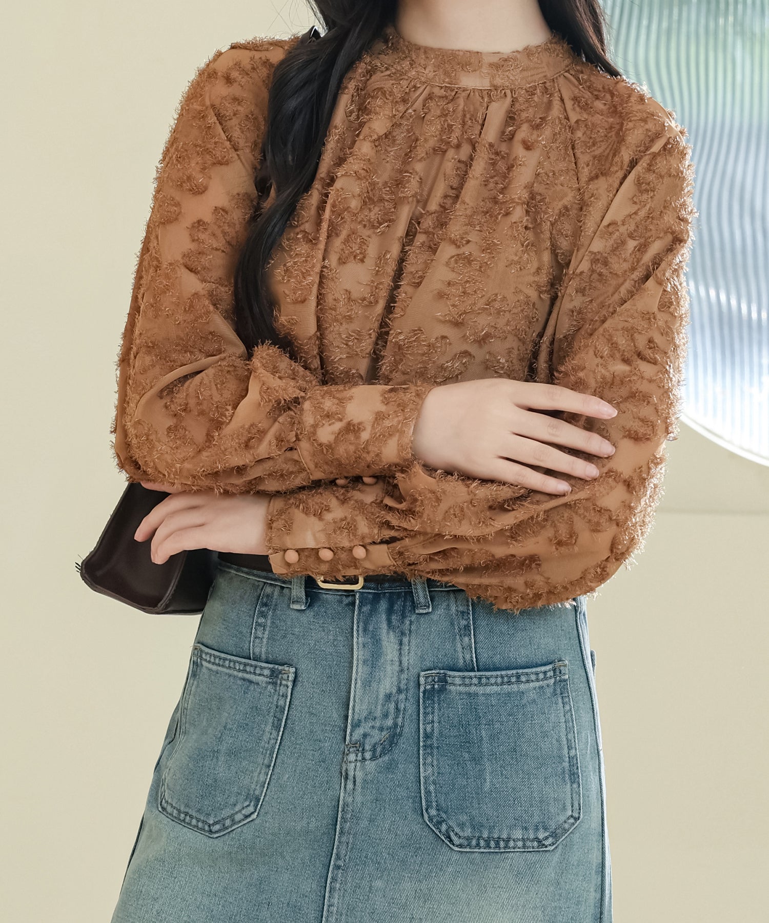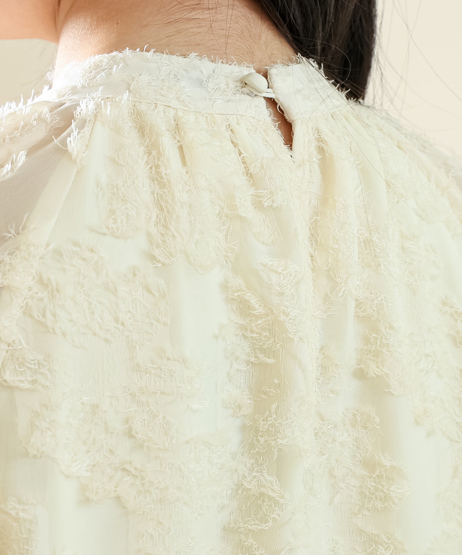 花柄 シャギー ボリューム袖 ギャザー シアー ブラウス