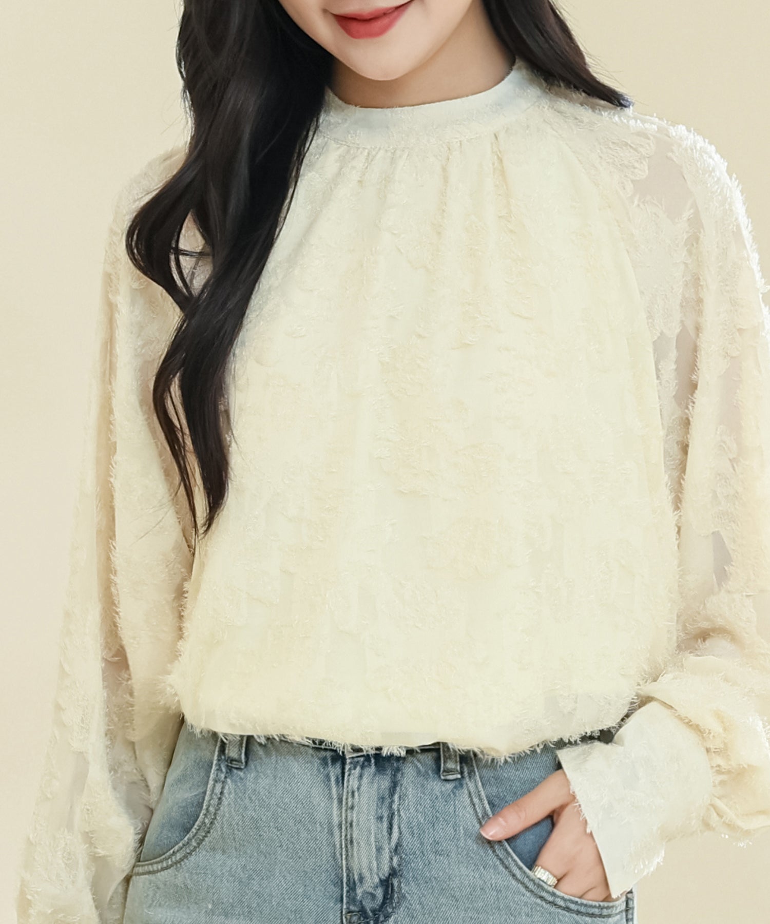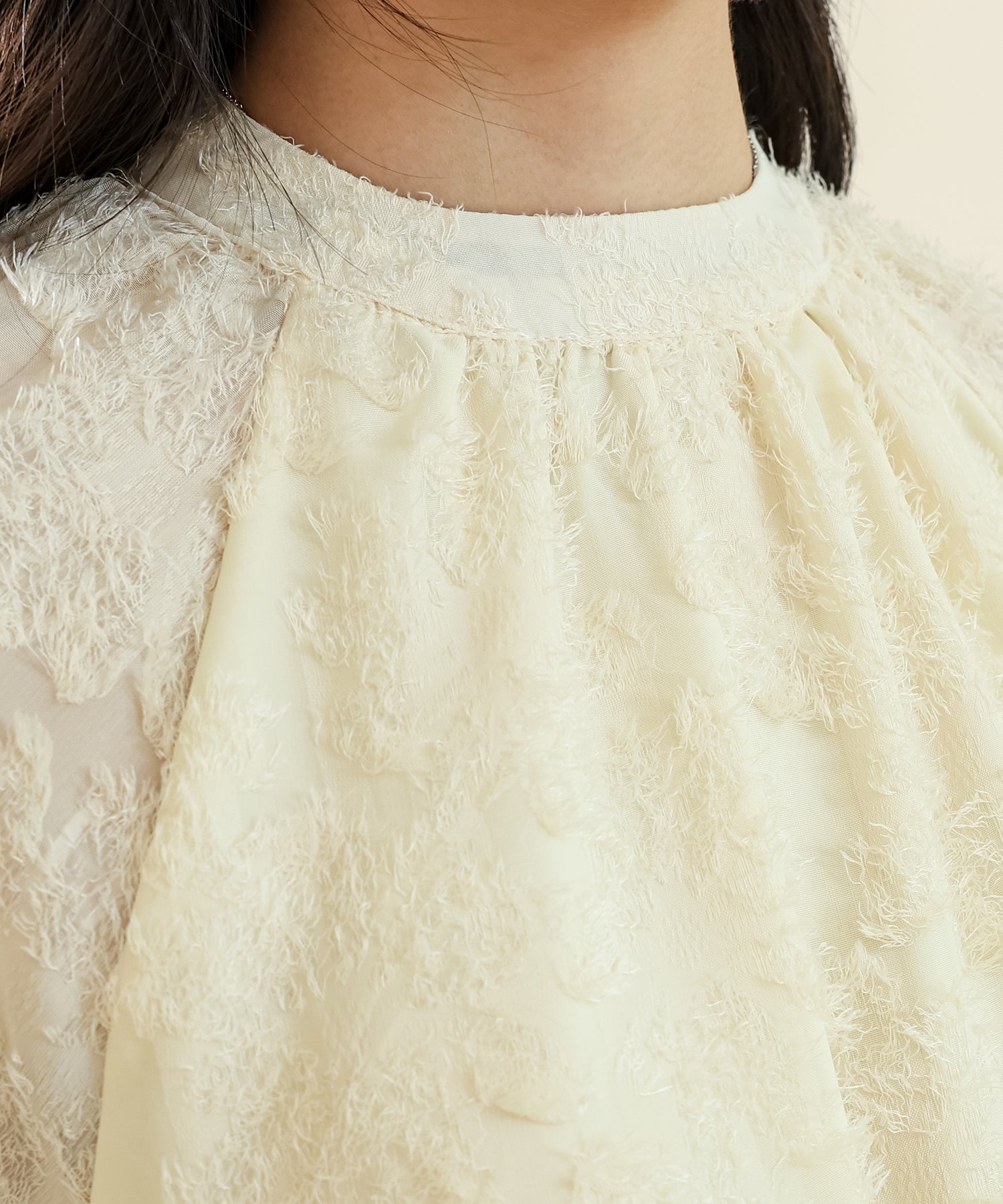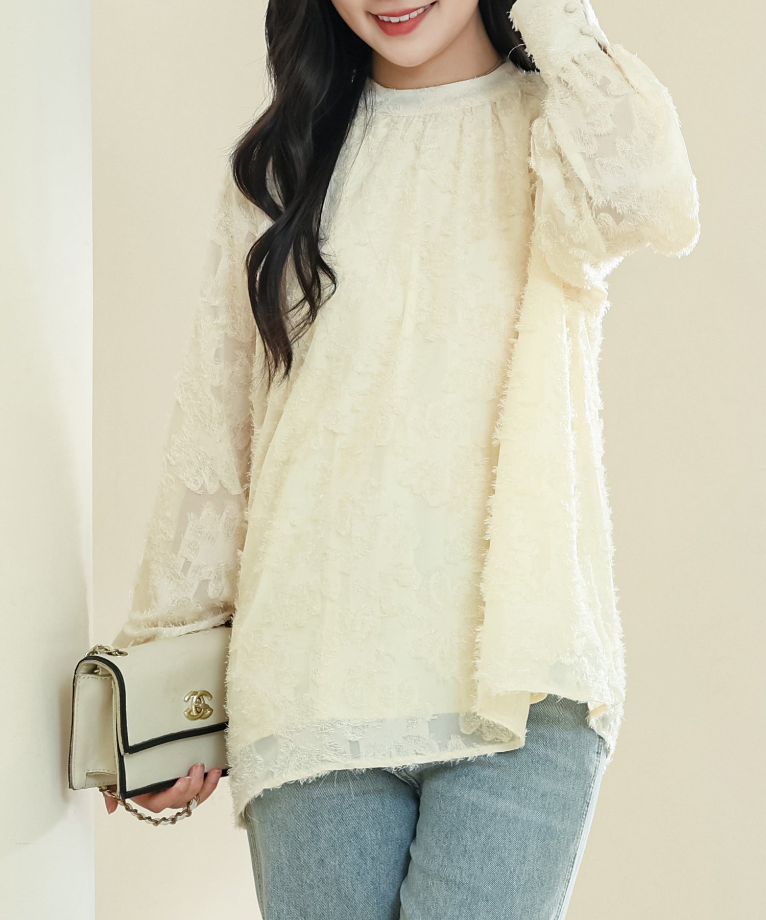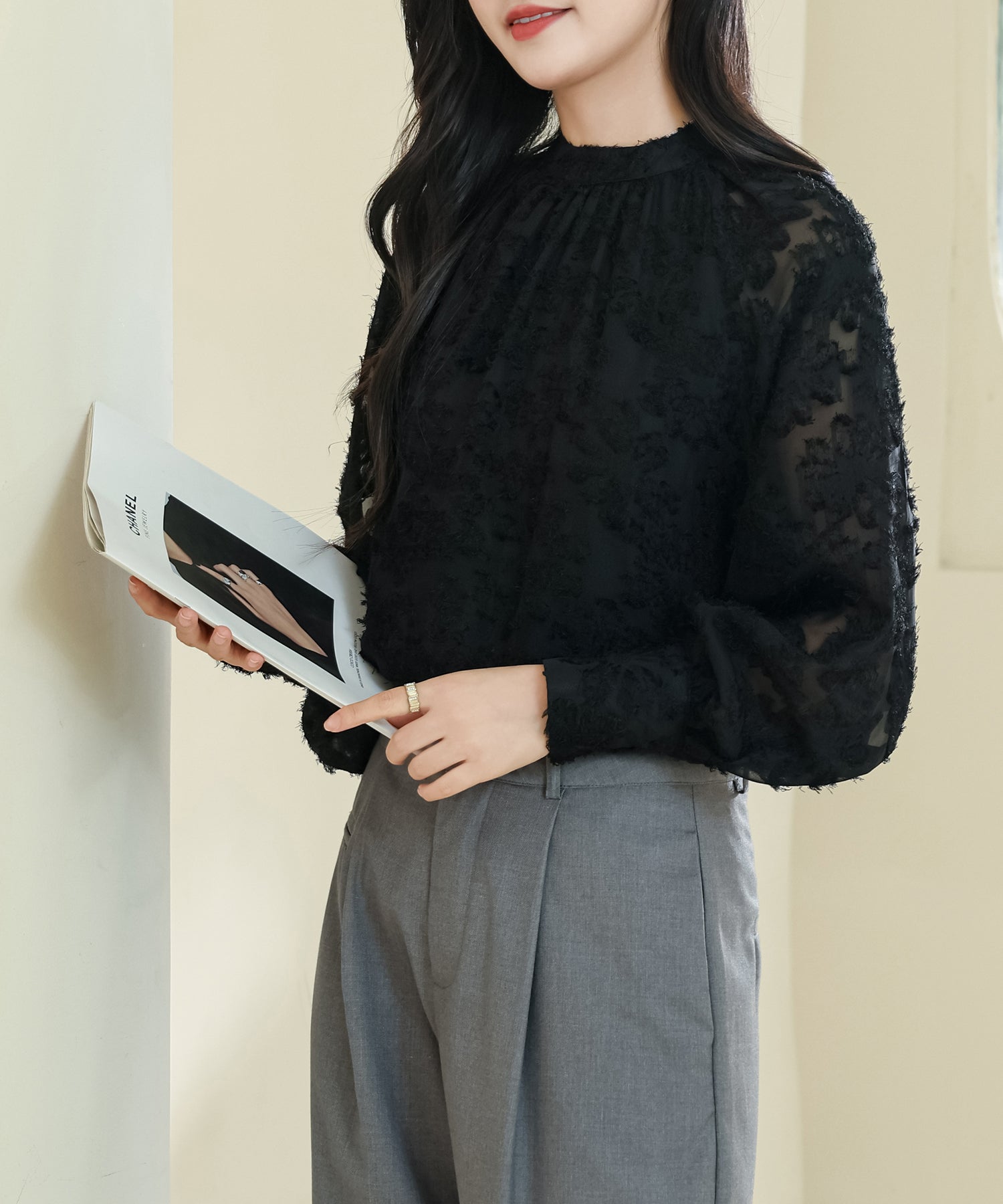 花柄 シャギー ボリューム袖 ギャザー シアー ブラウス