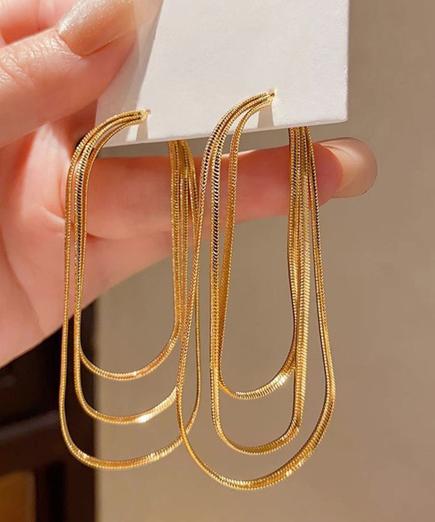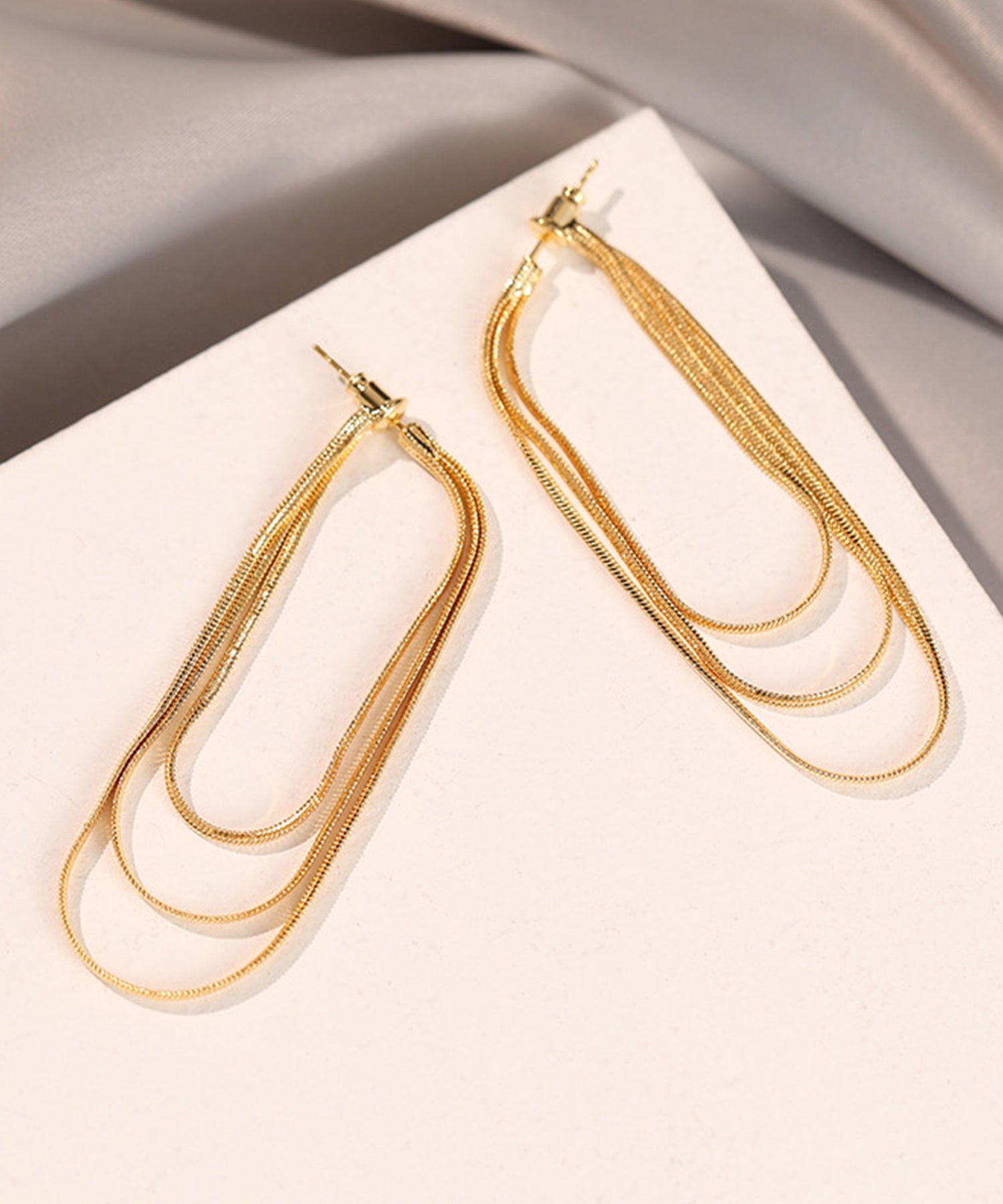 3連 スネークチェーン タッセル フリンジ ピアス