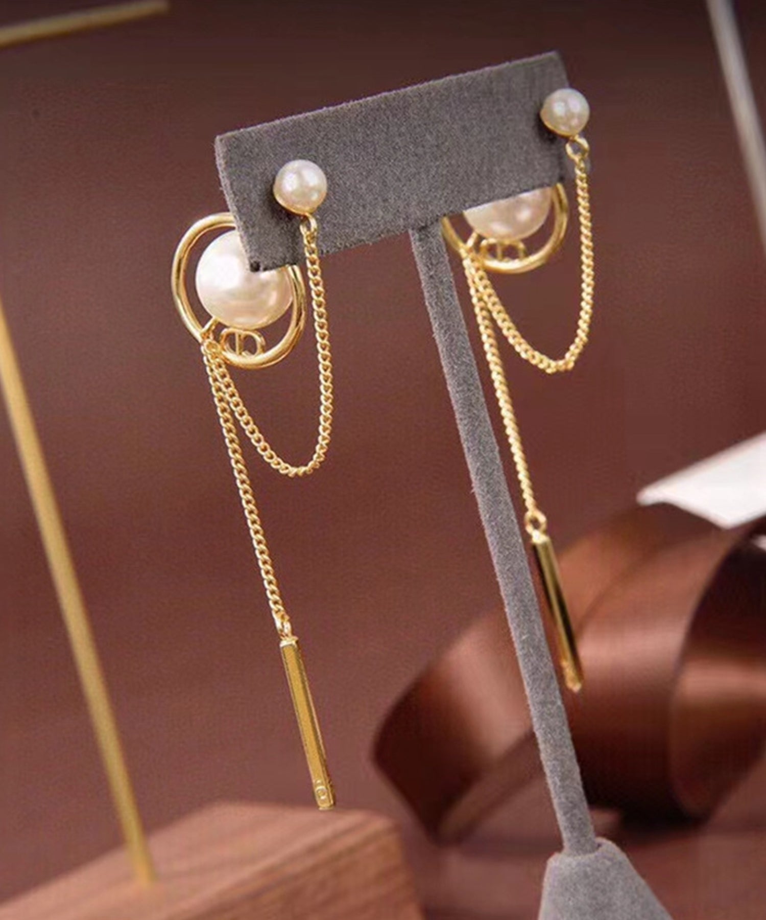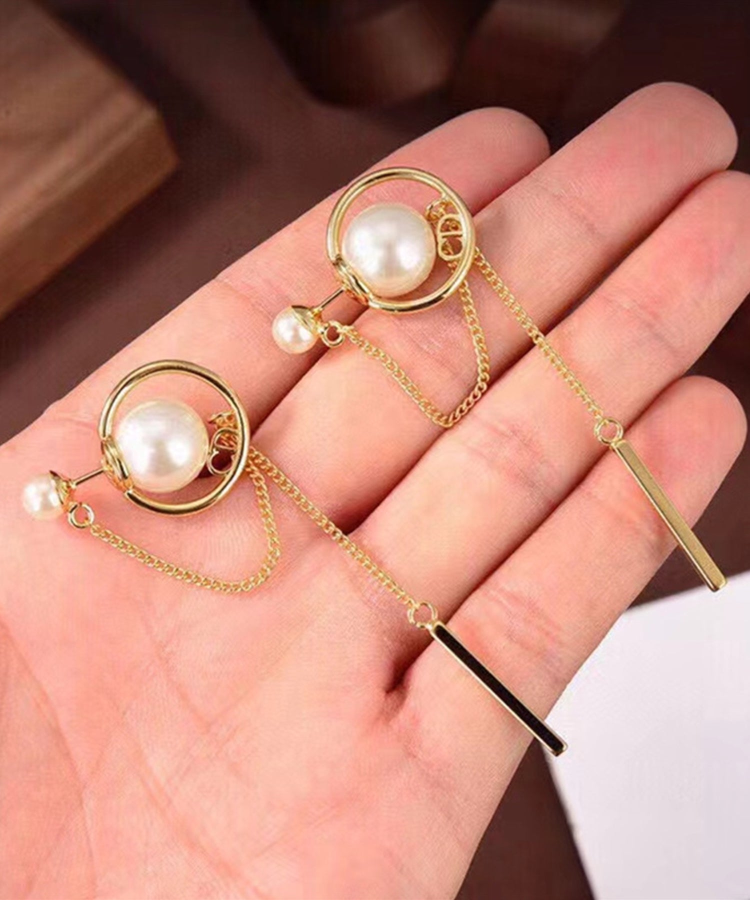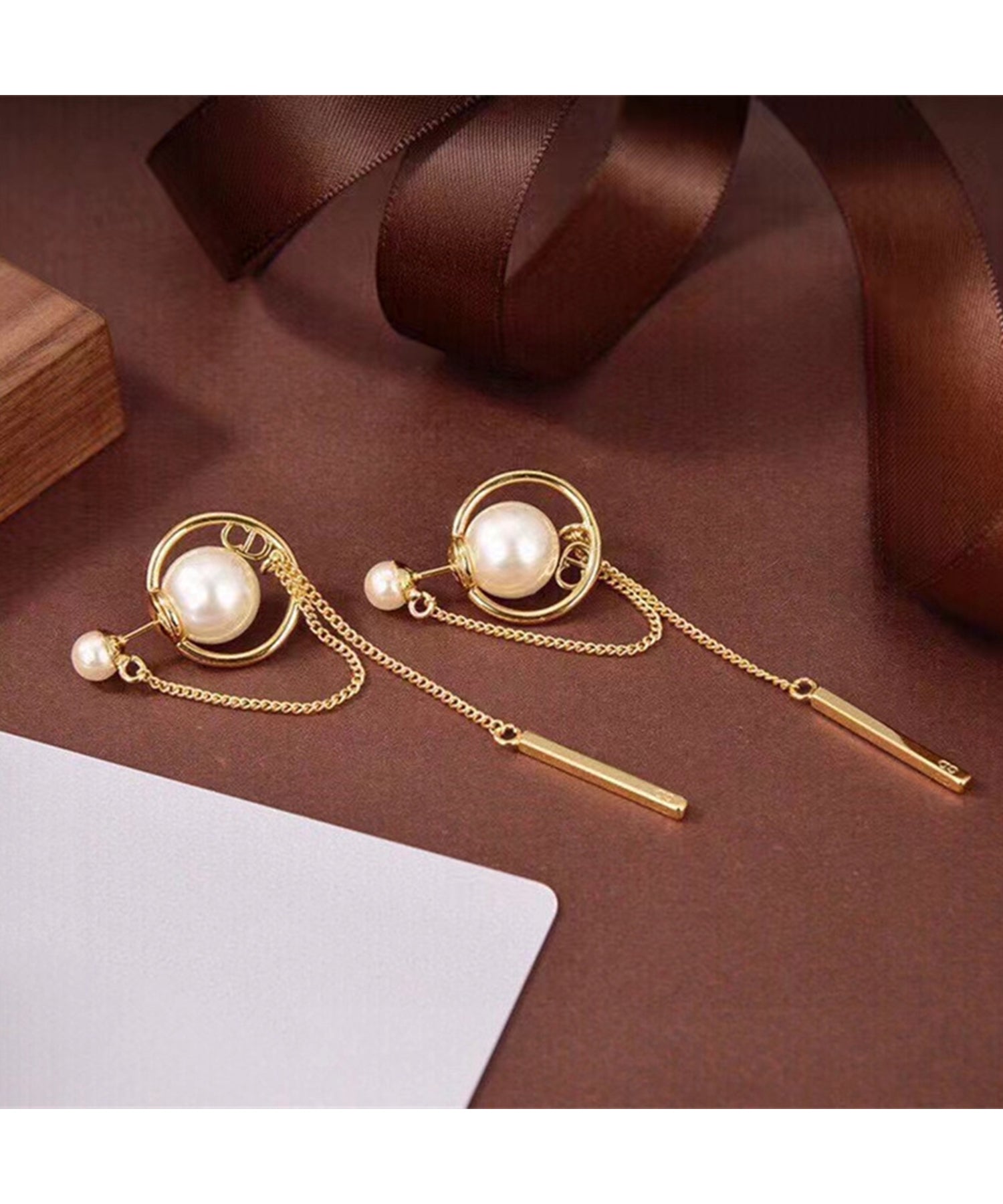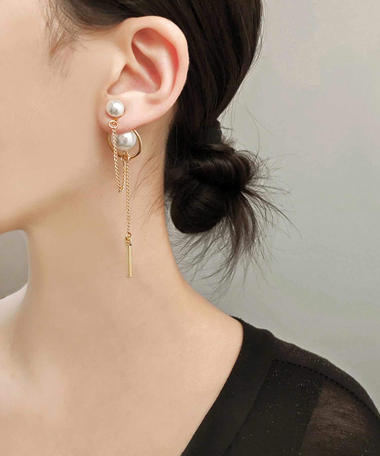 パール / ビジュー チェーン スウィング ロング ピアス