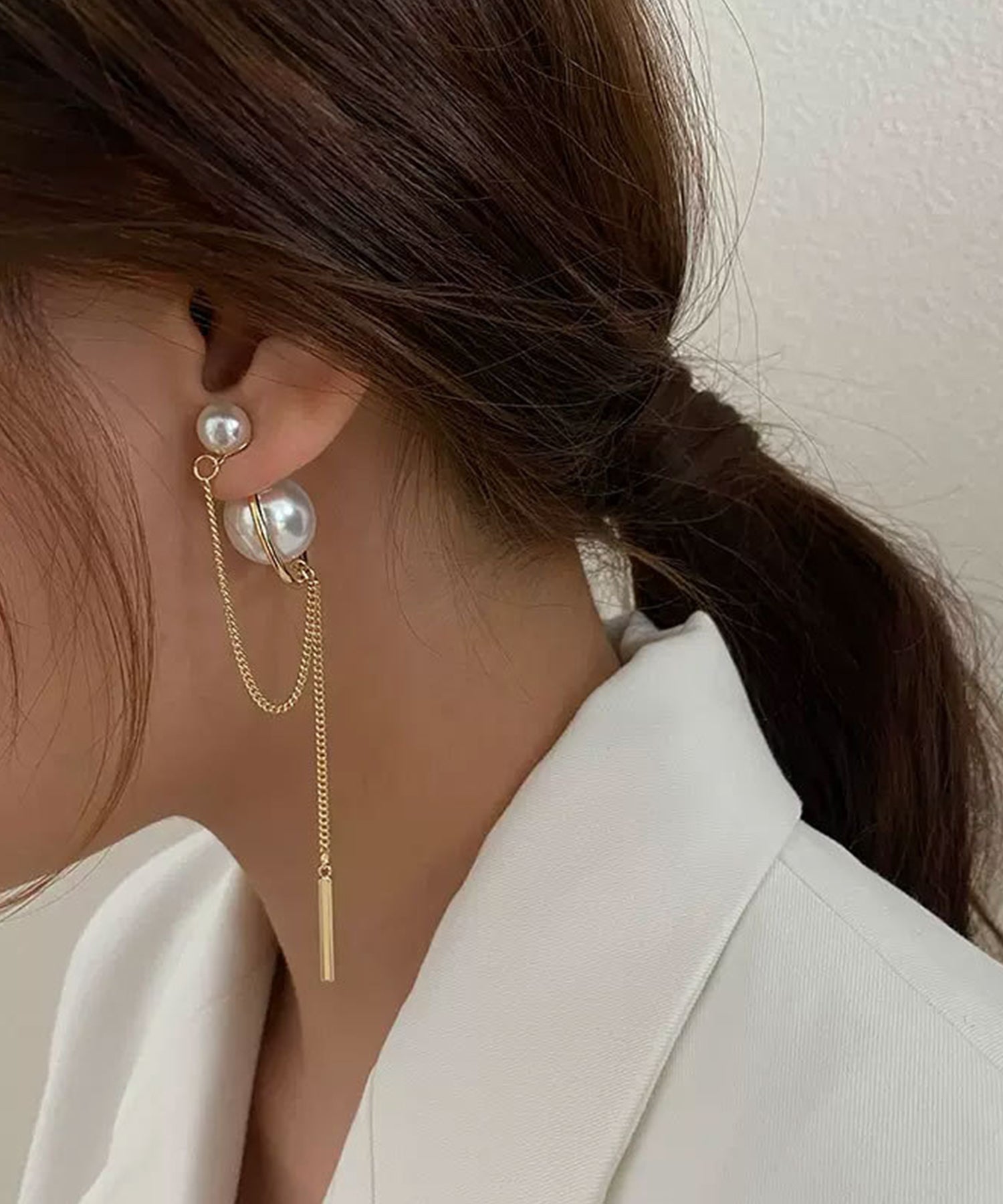 コーディネートの仕上げに、顔まわりを華やかに飾るデザインピアス。