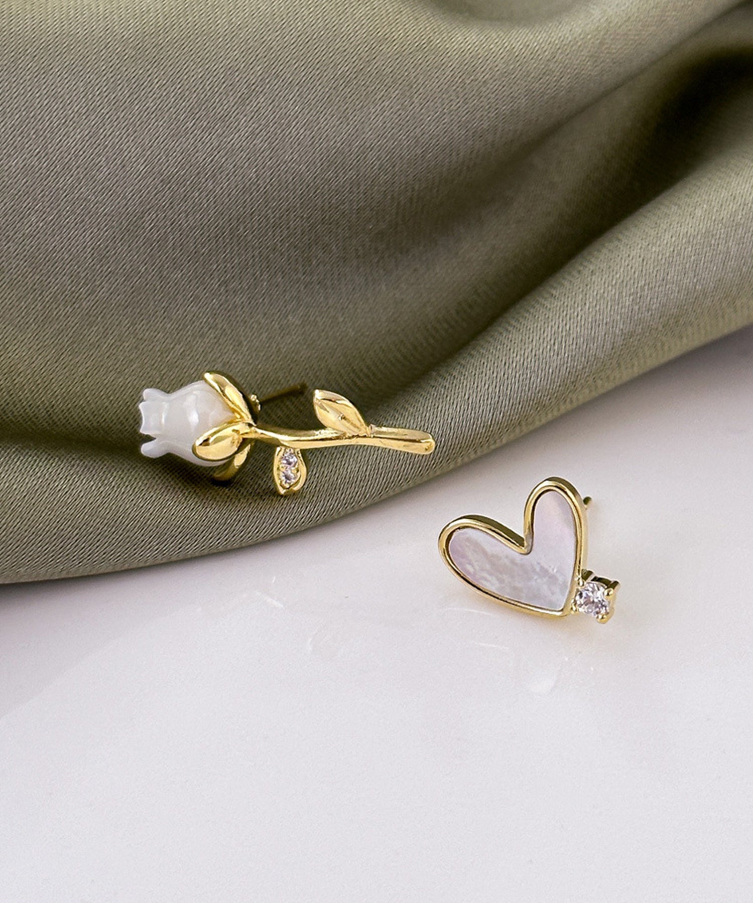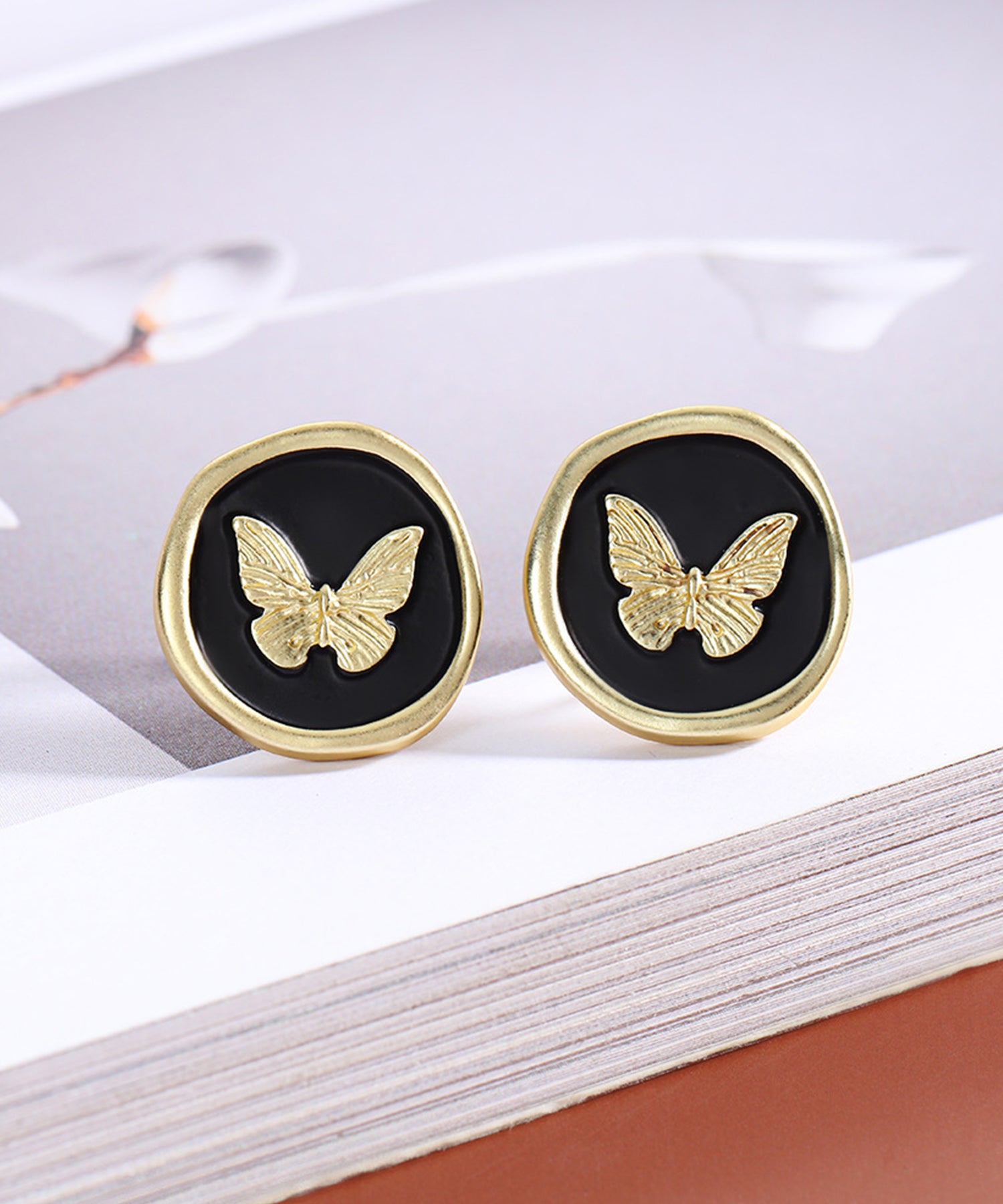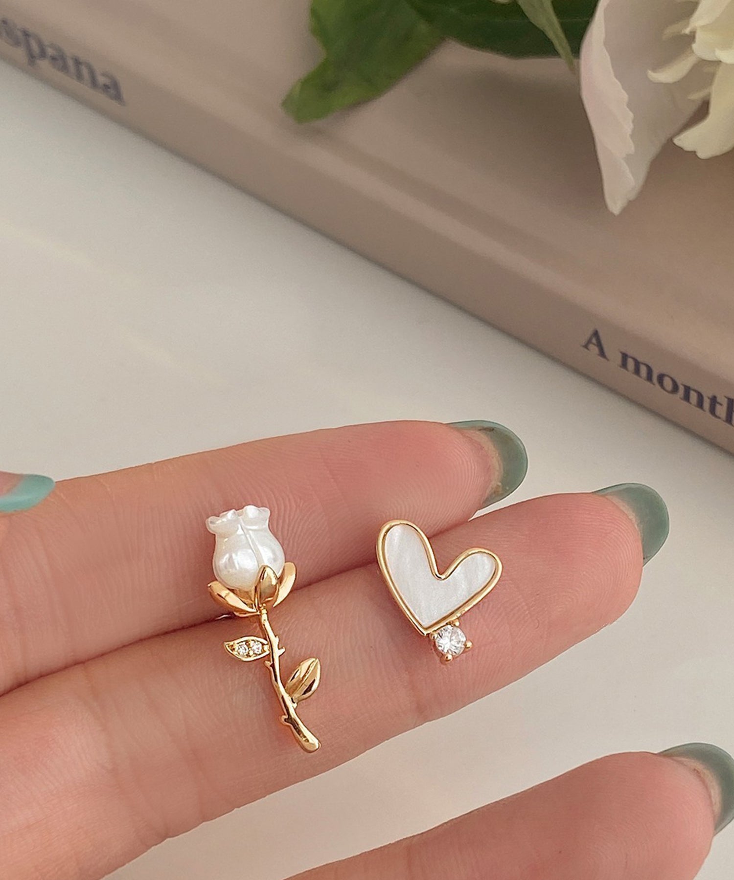 パールやビジュー、バタフライなど、華やかなモチーフを採用しておつくりしたデザインピアス。