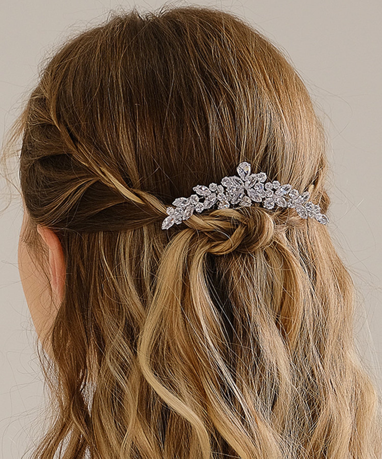 サイズ感や形などが異なる、さまざまなビジューを組み合わせたヘアコーム。