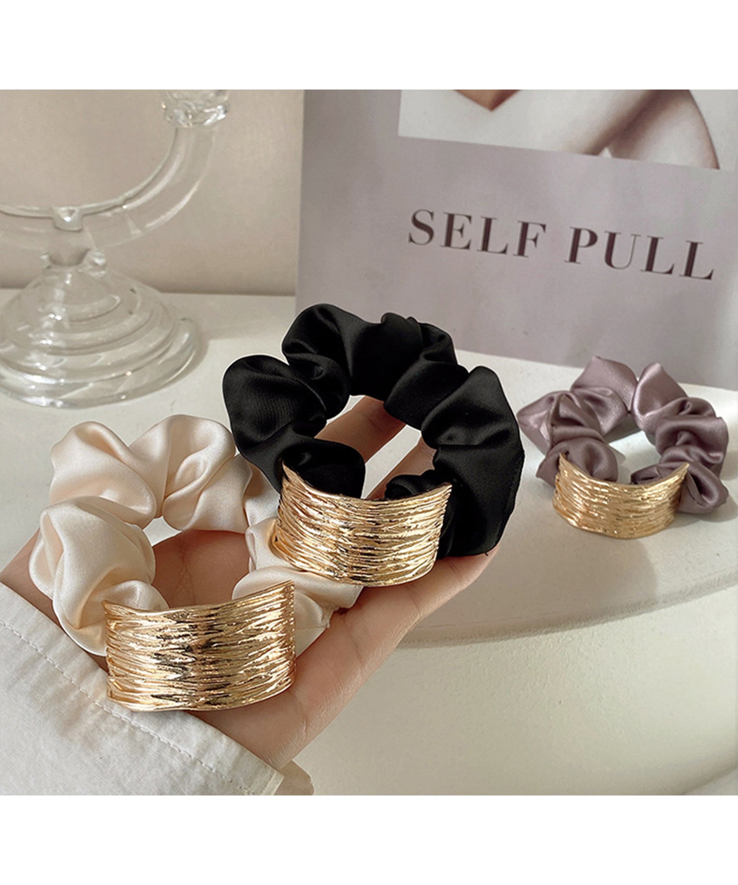 ヘアアクセサリーとしてはもちろん、手首にサッと通してブレスレット風にお使いいただくのもおすすめ◎