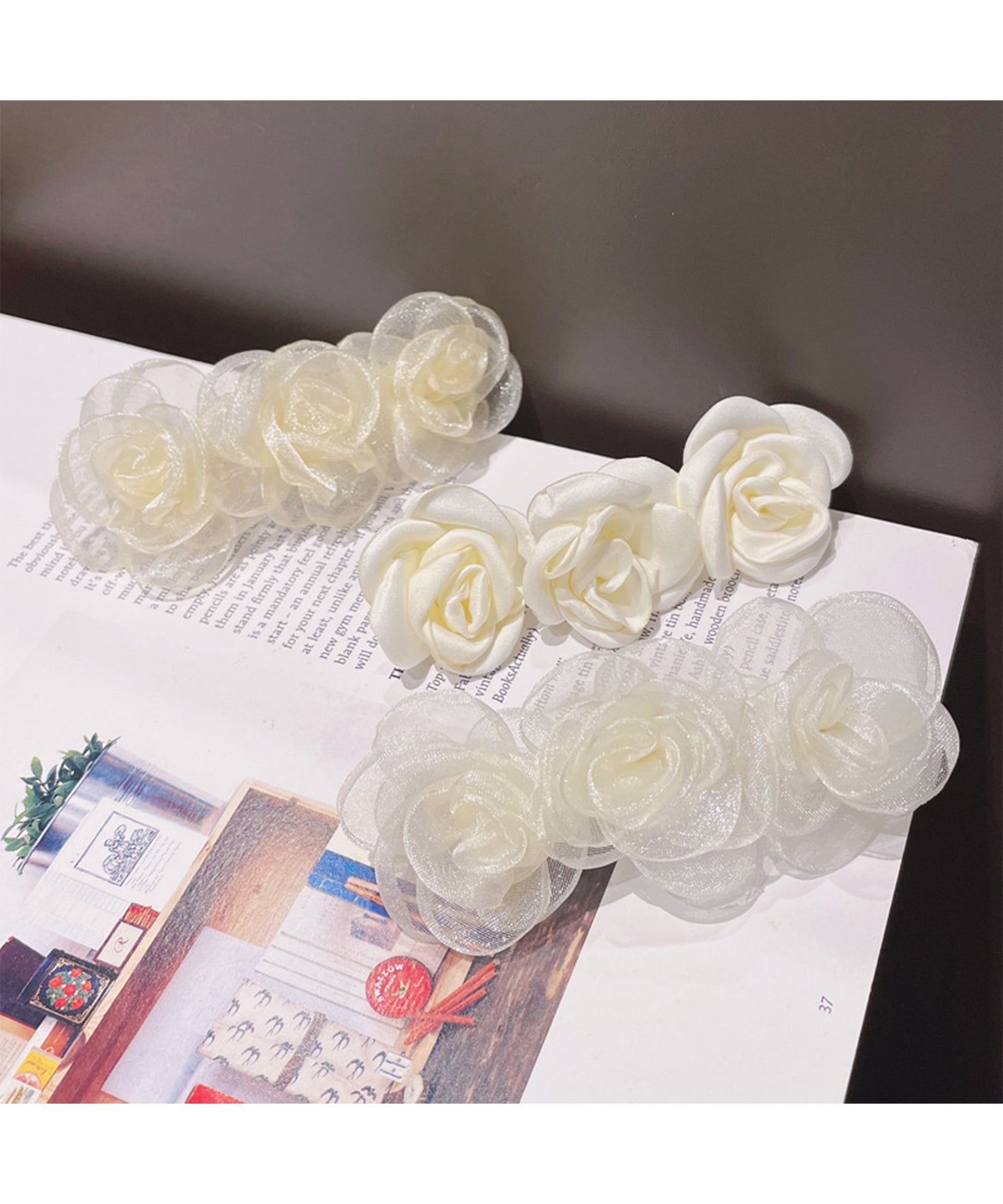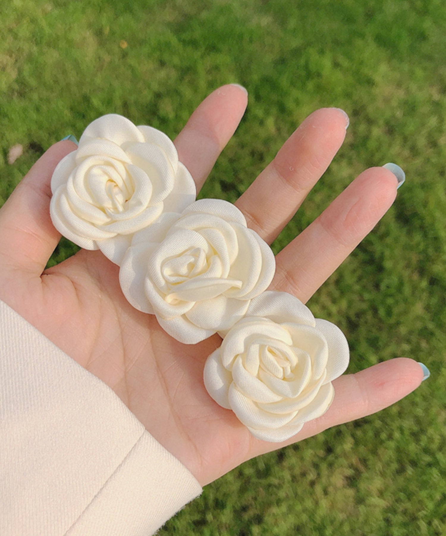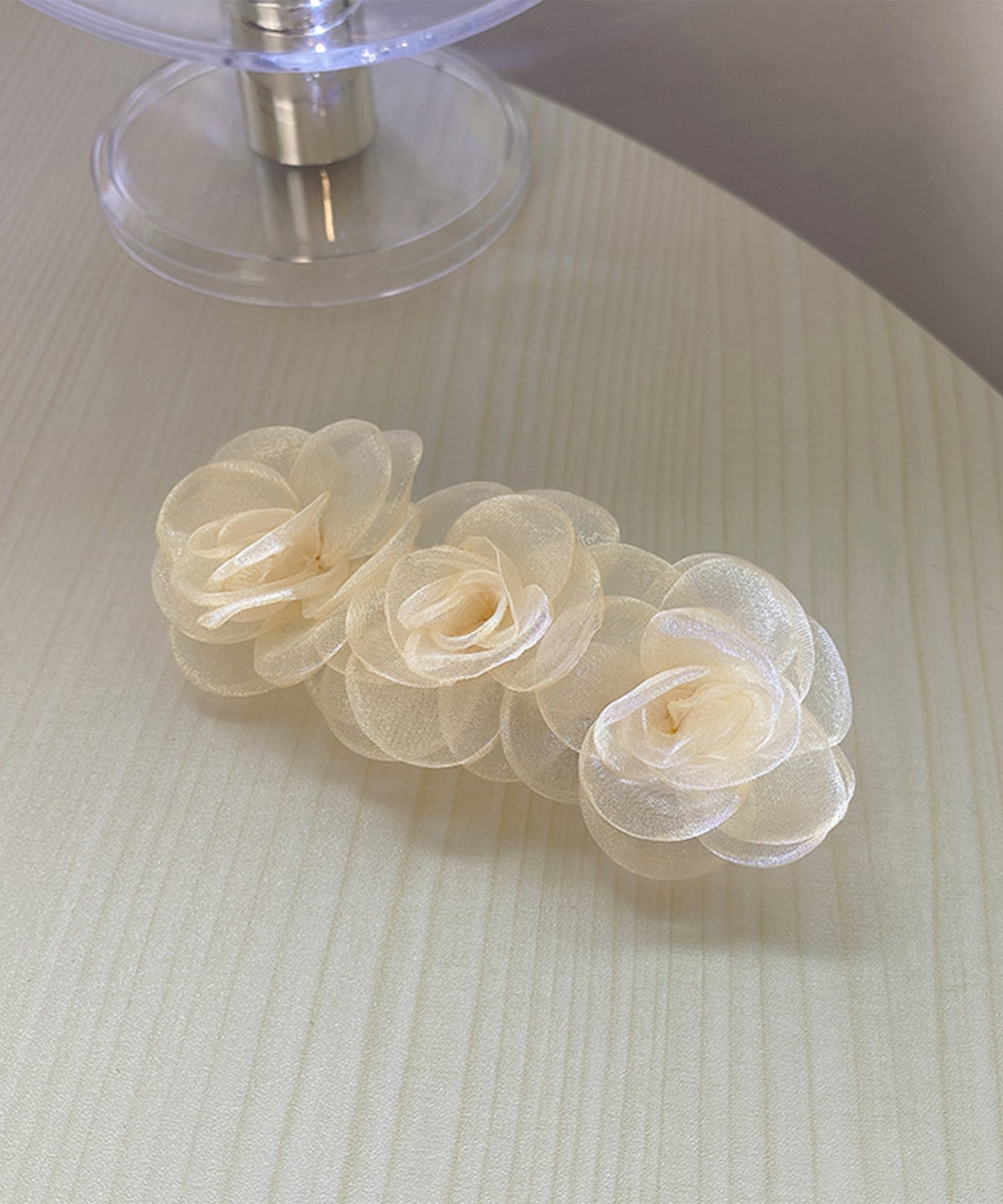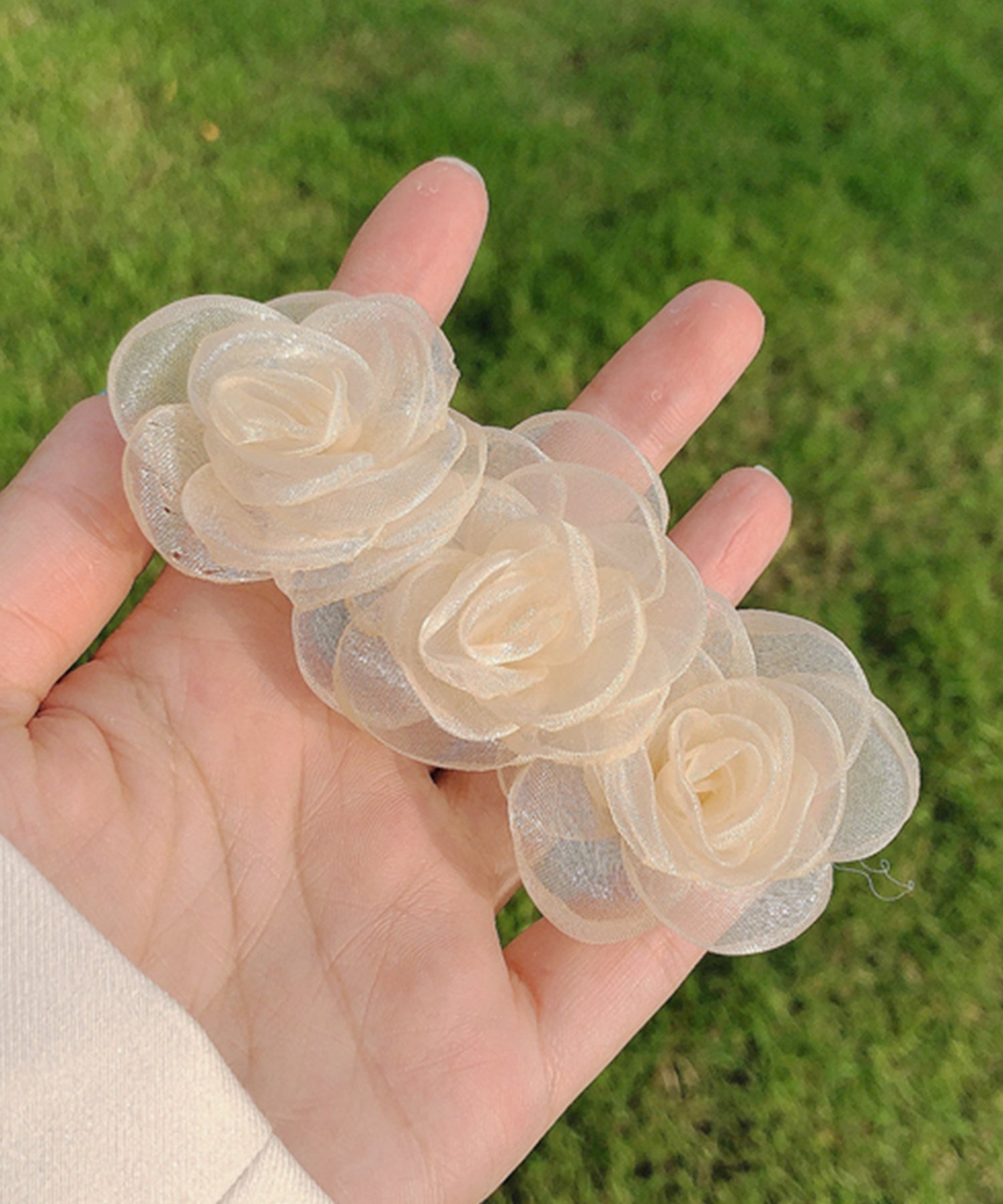 華やかなローズモチーフを3つ並べた、ヘアバレッタ。