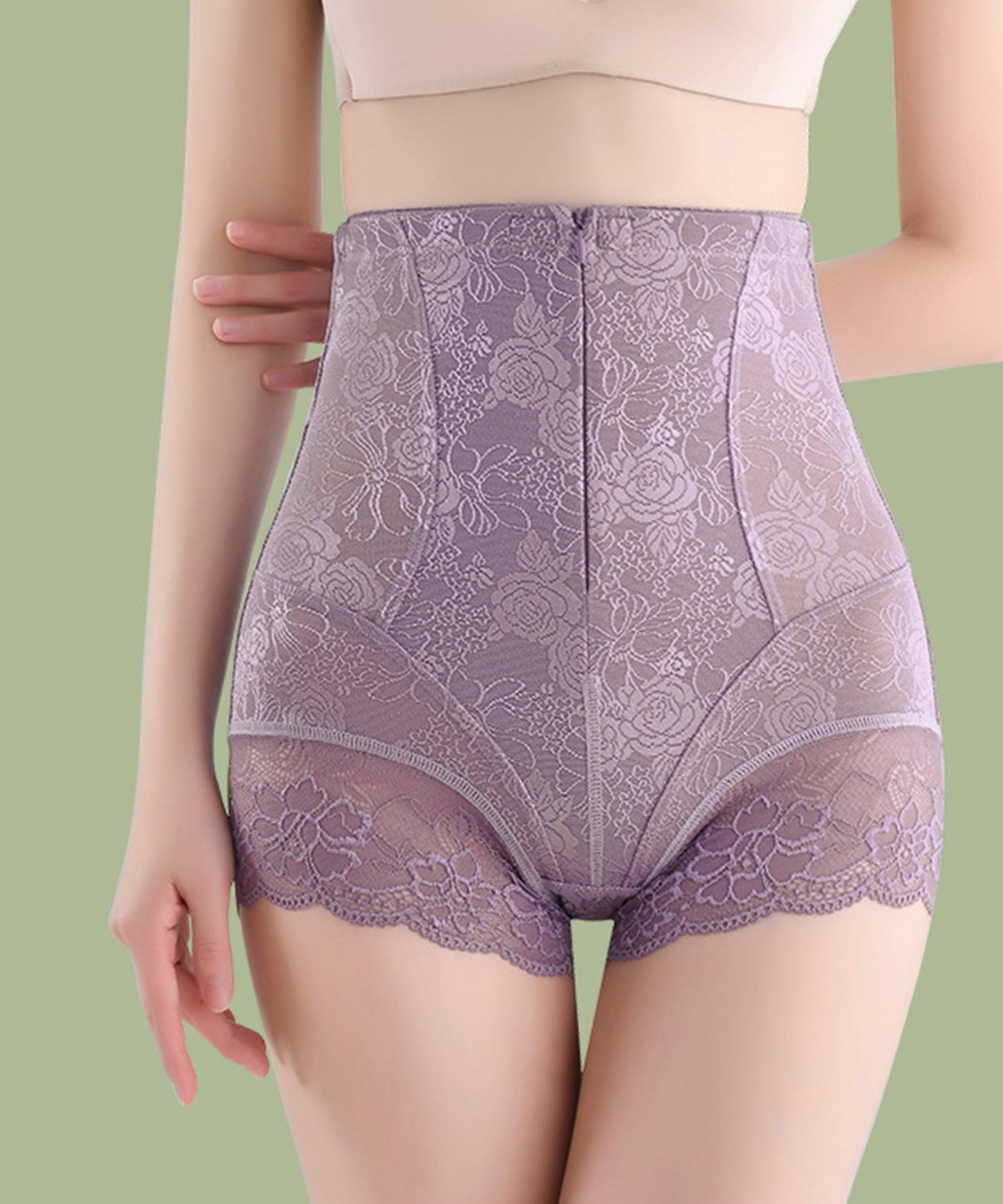 フロントジップ 花柄 レーシィ ハイウエスト ガードル