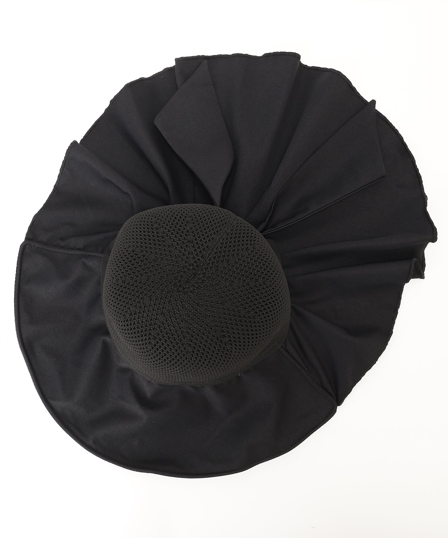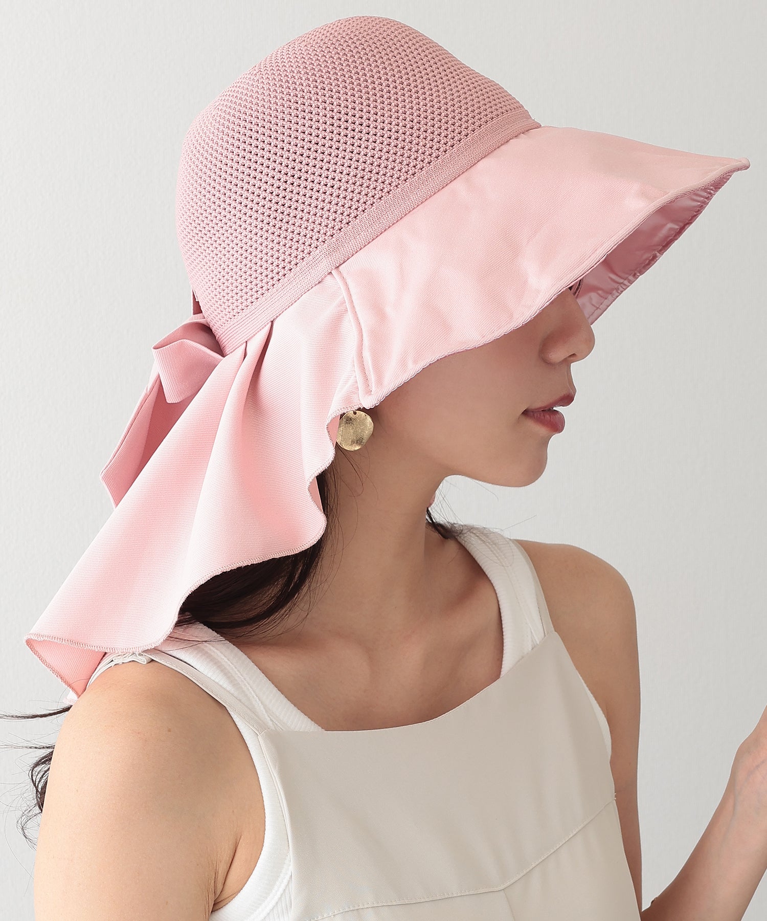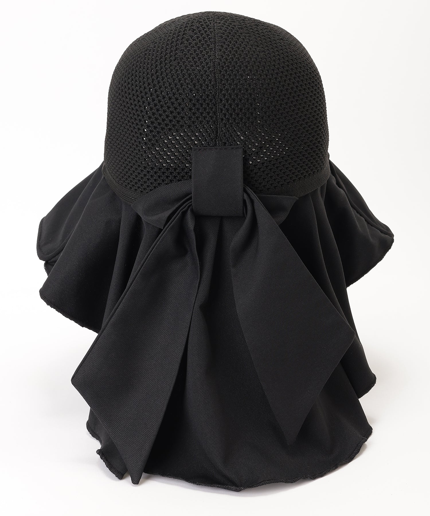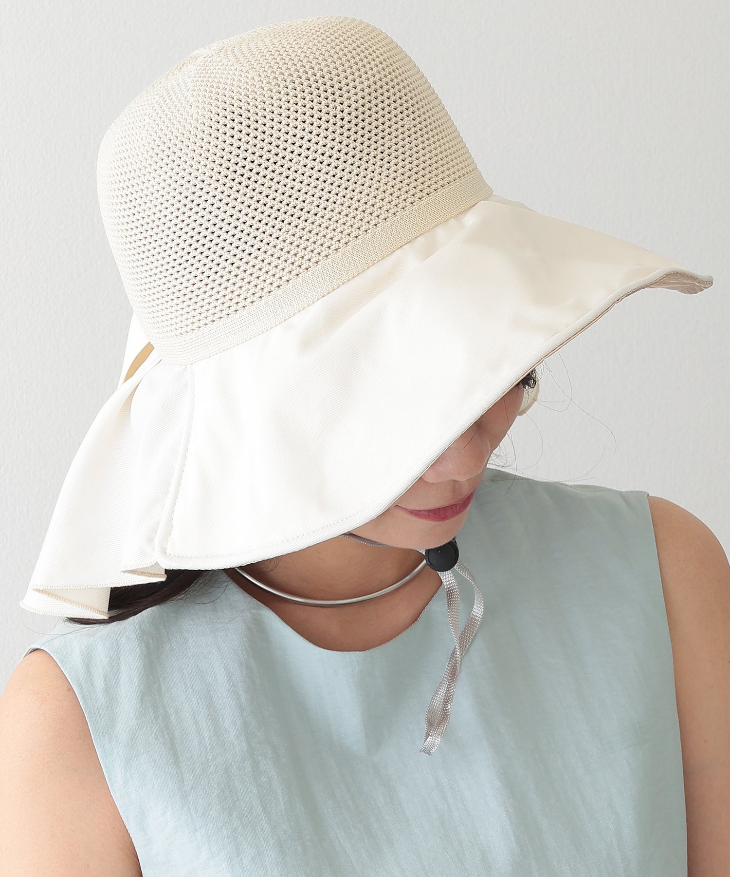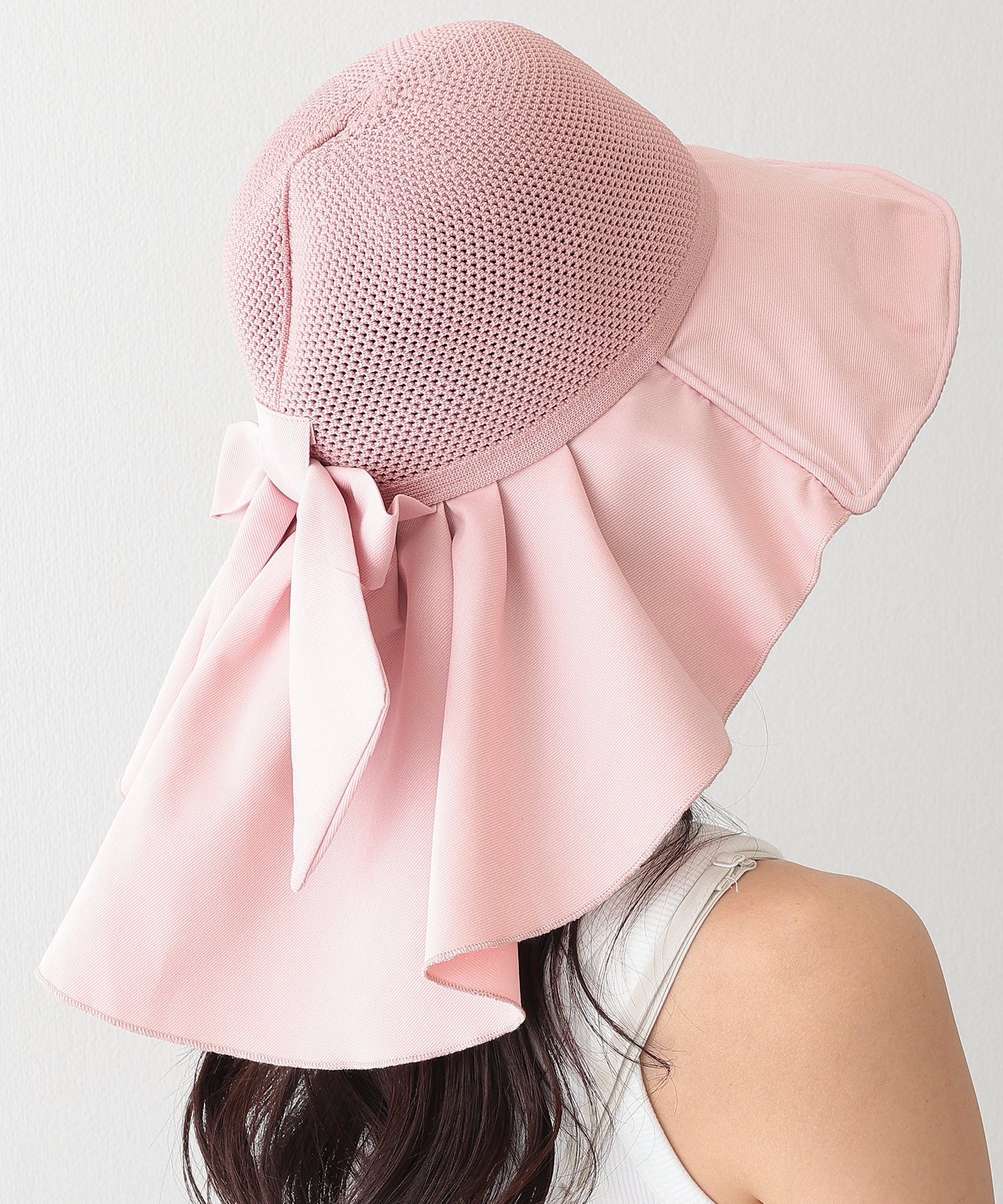 異素材 メッシュ編み バックリボン サンシェード ハット