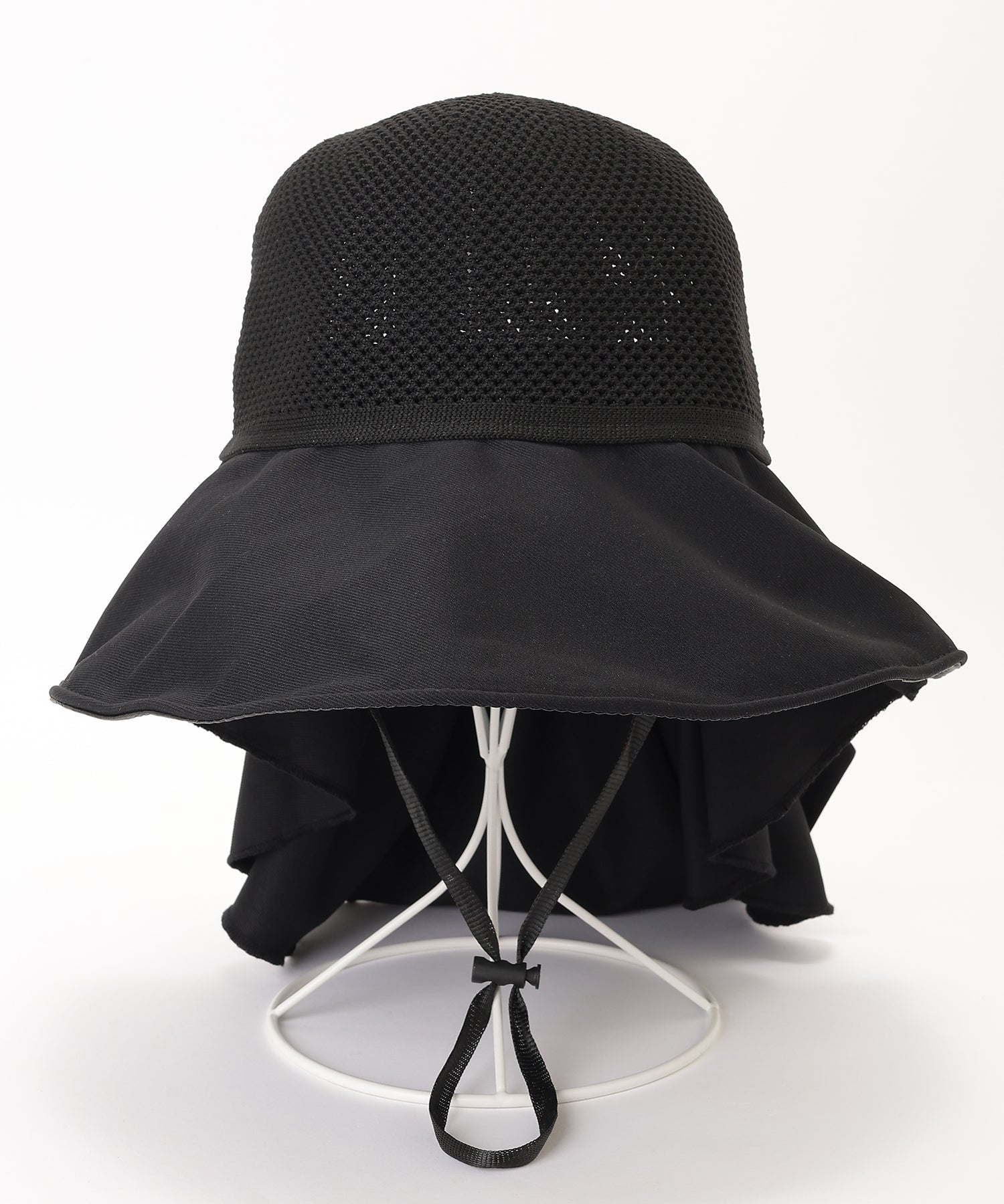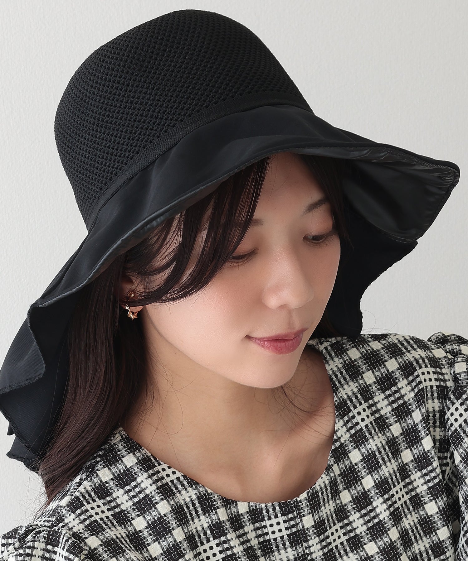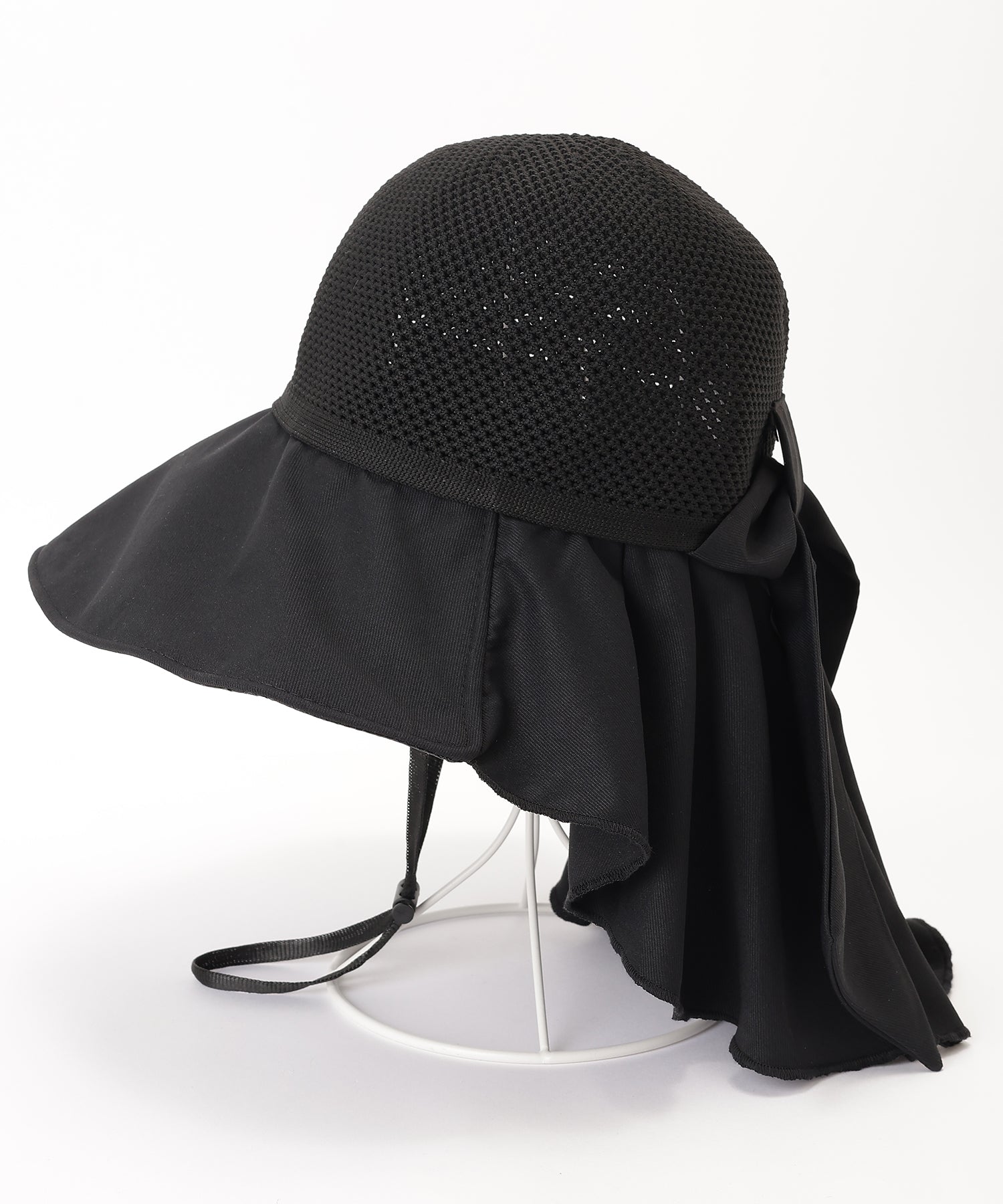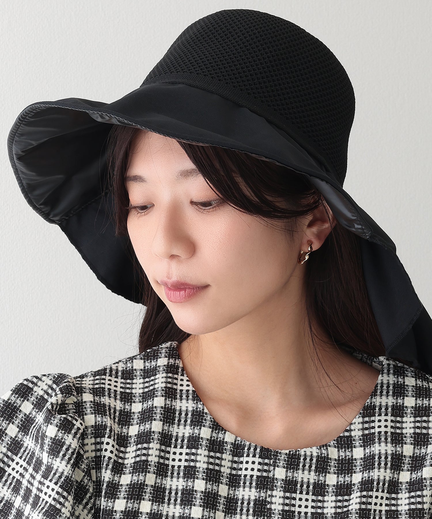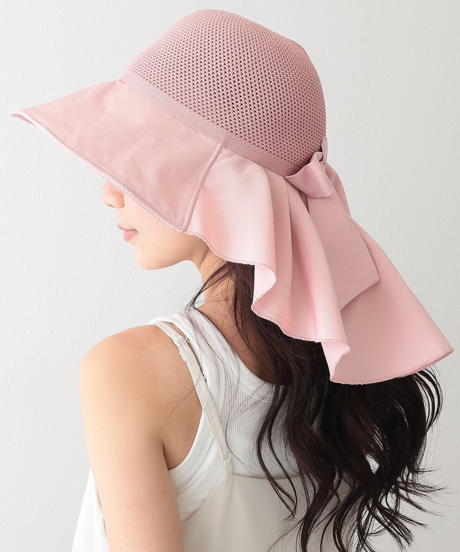 異素材 メッシュ編み バックリボン サンシェード ハット