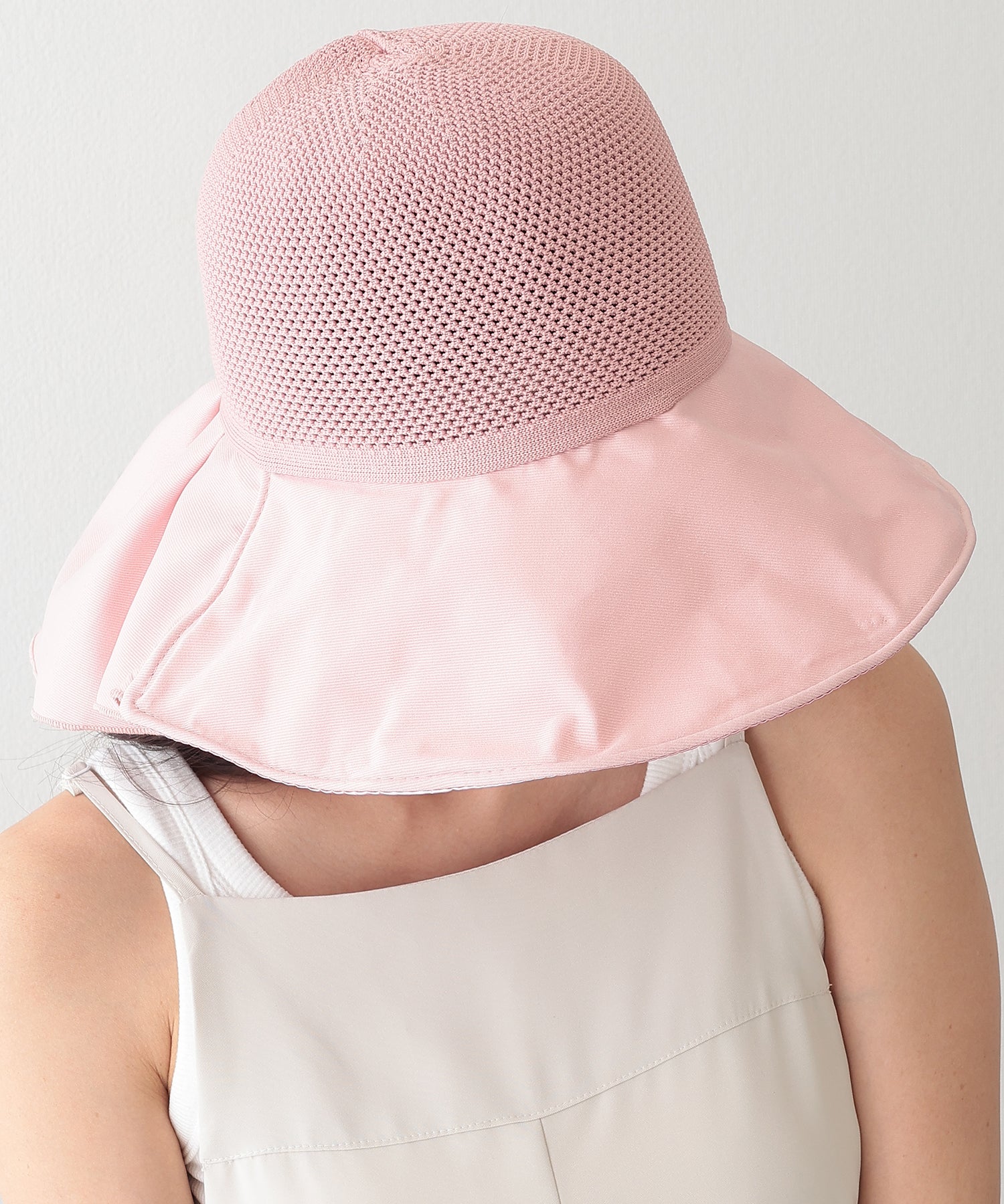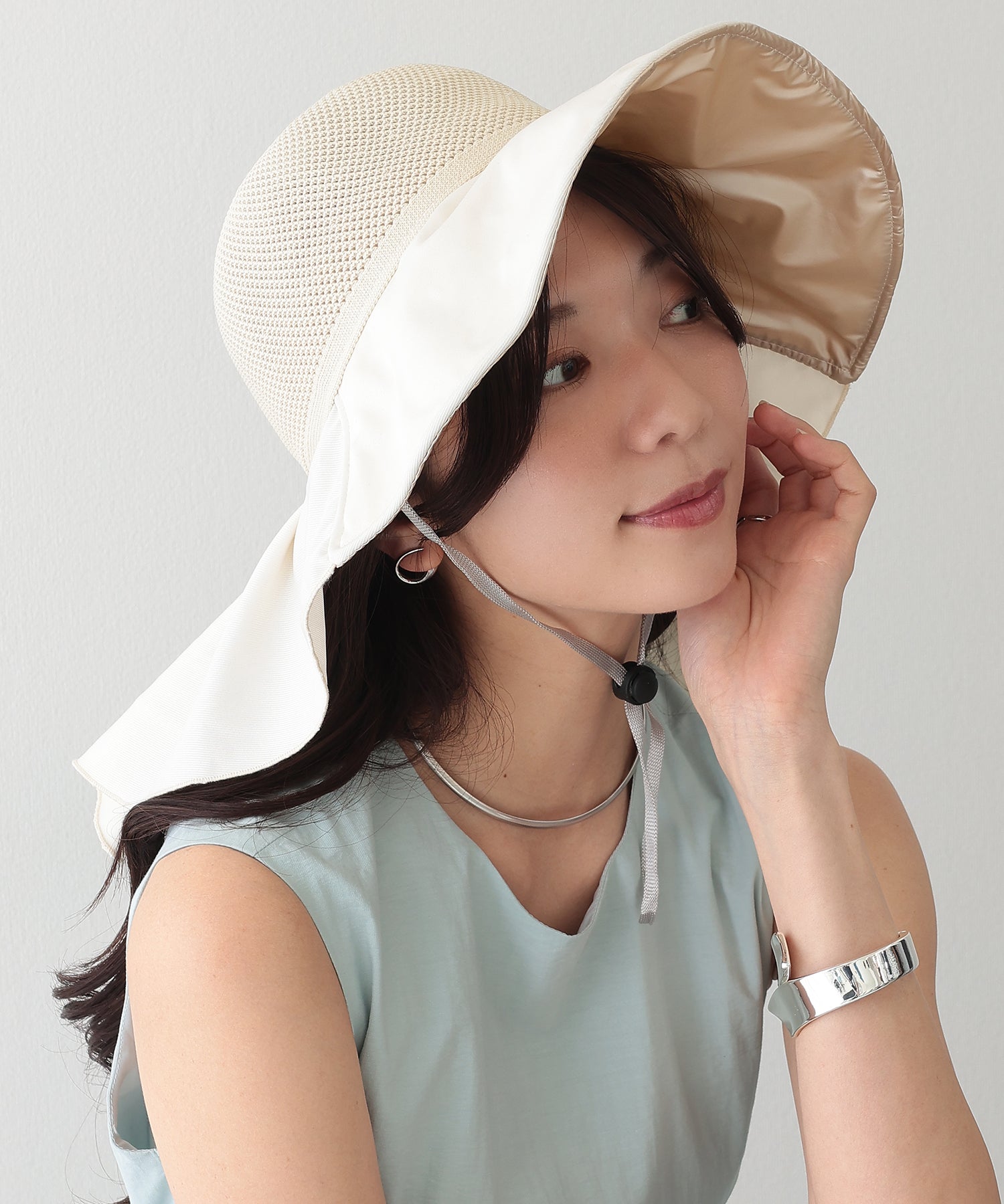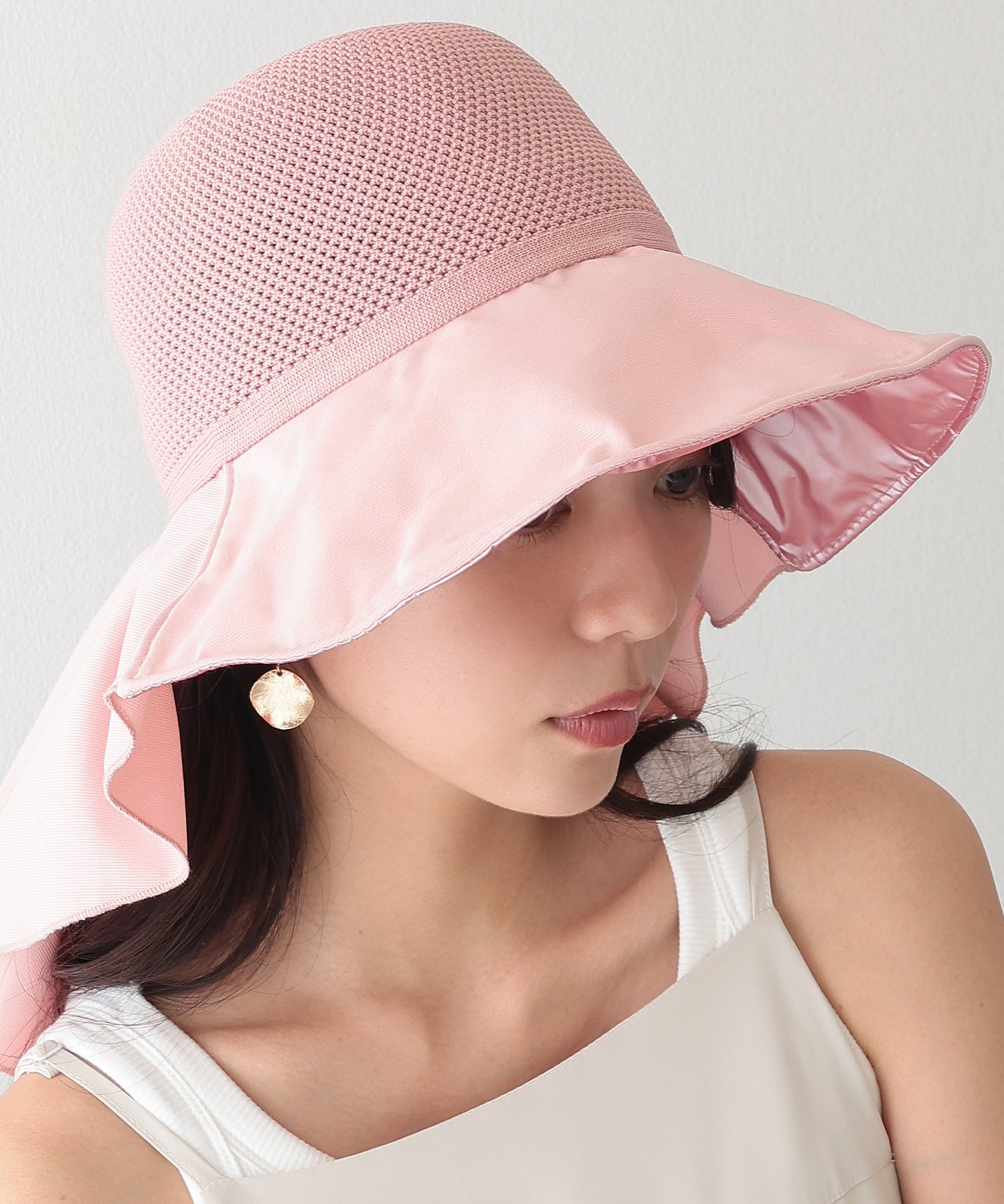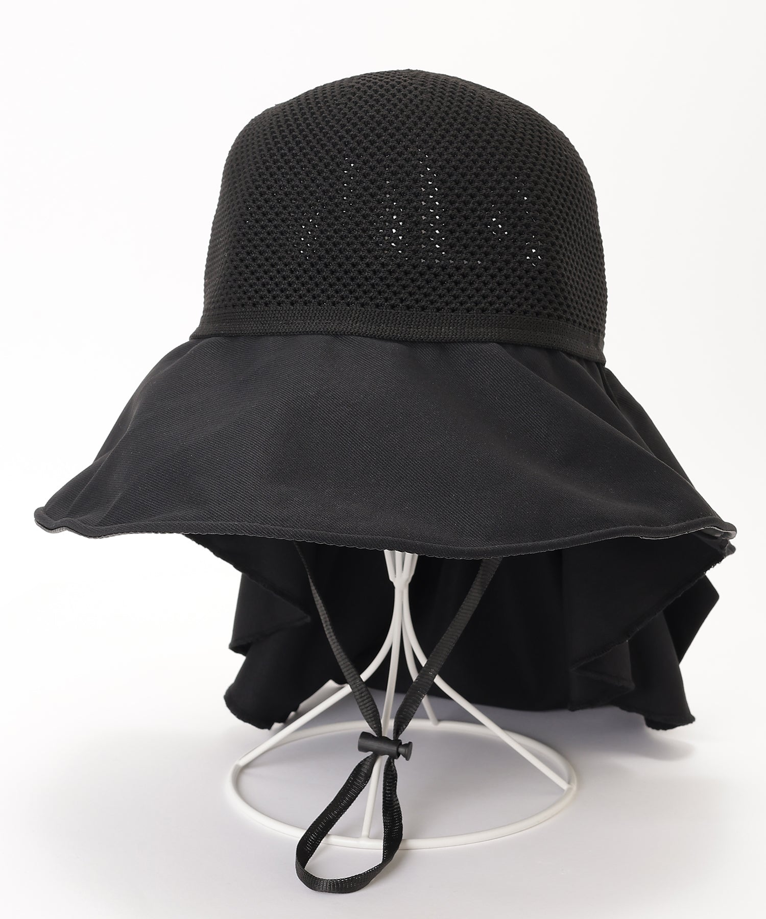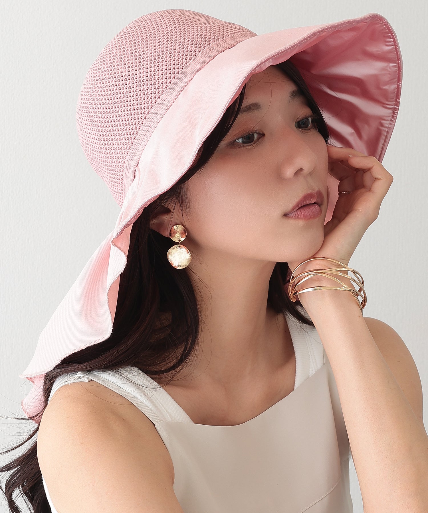 異素材 メッシュ編み バックリボン サンシェード ハット