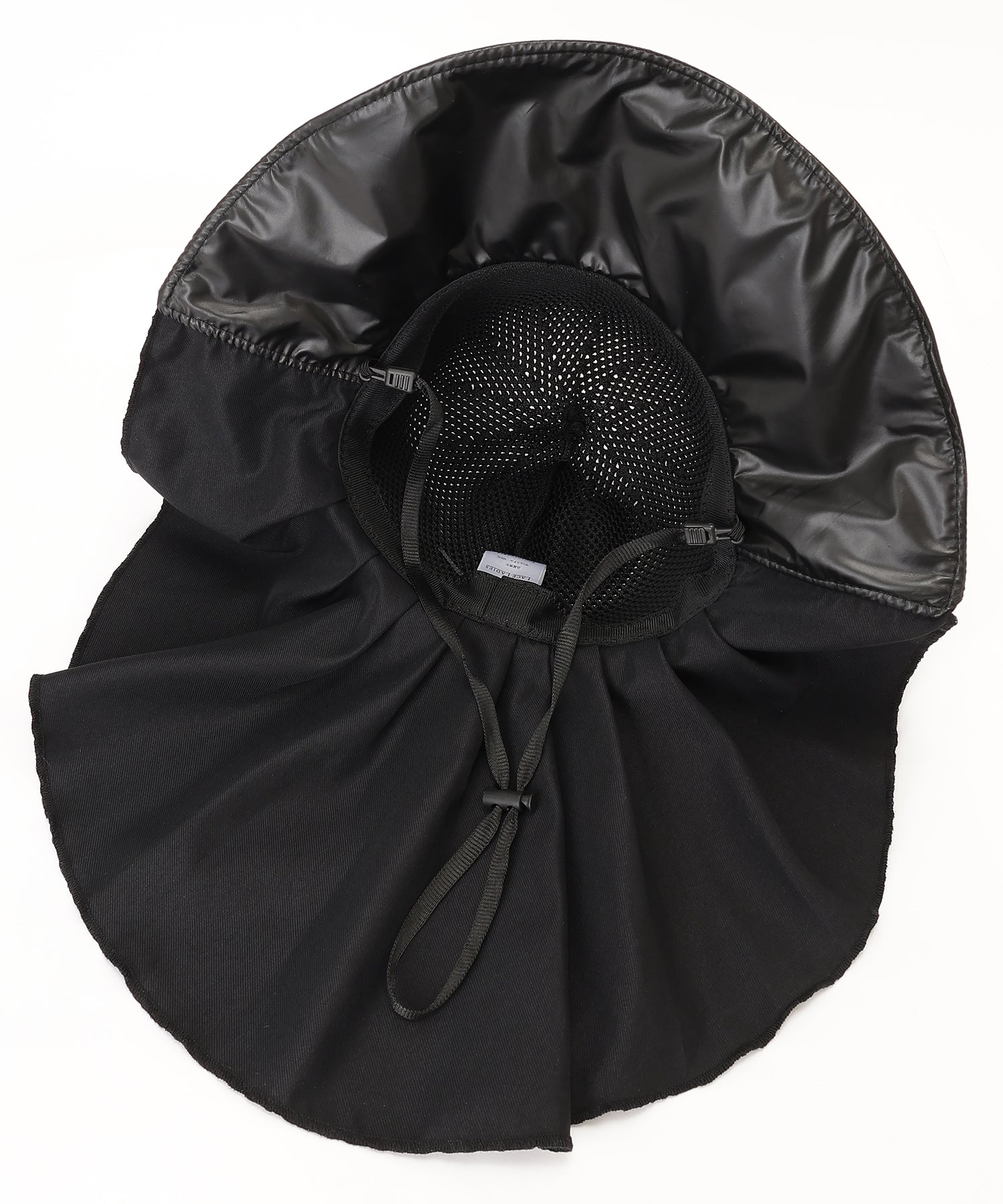 首元から背中まで覆う長めのサンシェードは、ギャザーを施すことで360度どこから見ても上品且つおしゃれなデザインに仕上がっています。