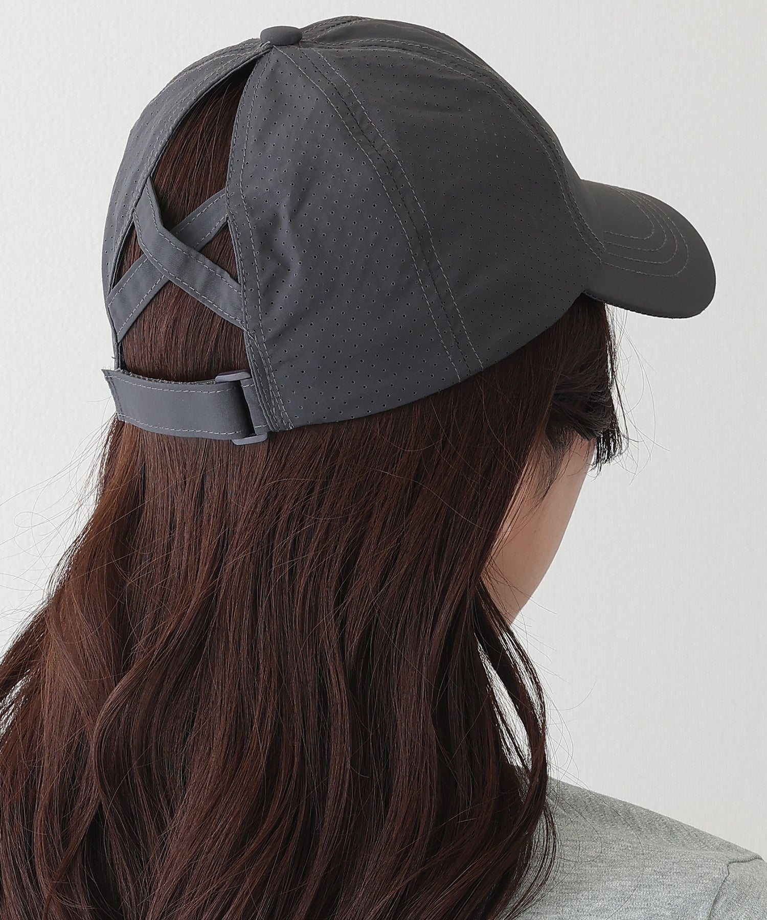 後ろにはスリットが入っているので、ポニーテールなどのアップスタイルにもしっかりと対応。