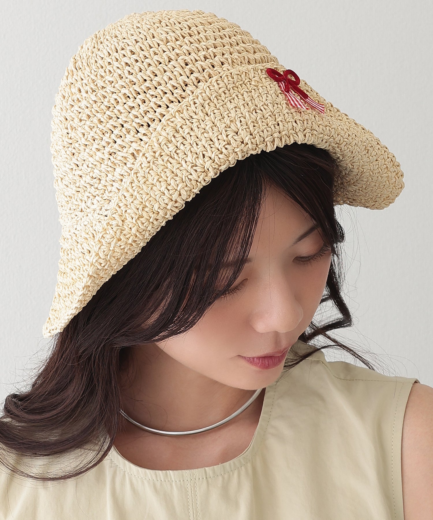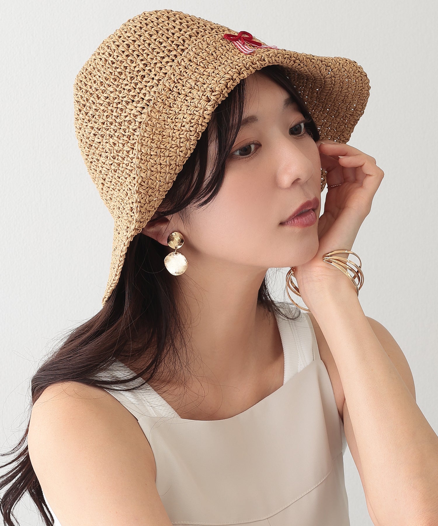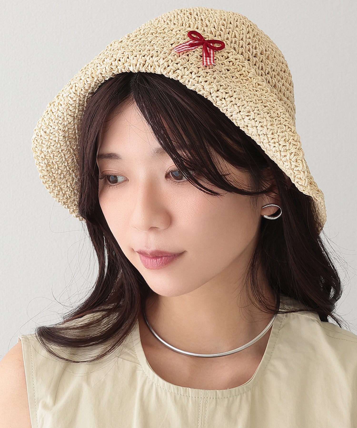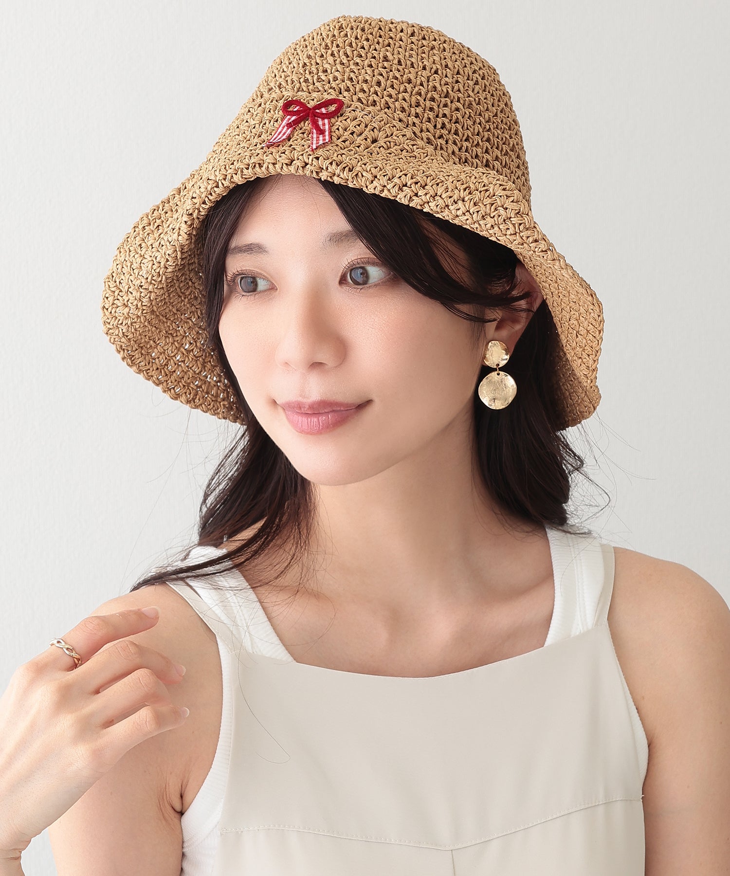 装いにシーズン感を演出してくれる、ナチュラルな素材感が涼しげなバケットハット。
