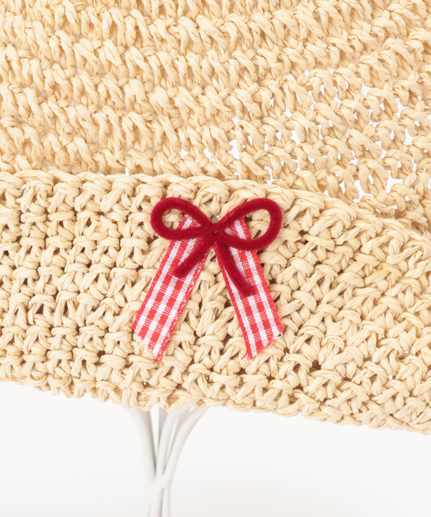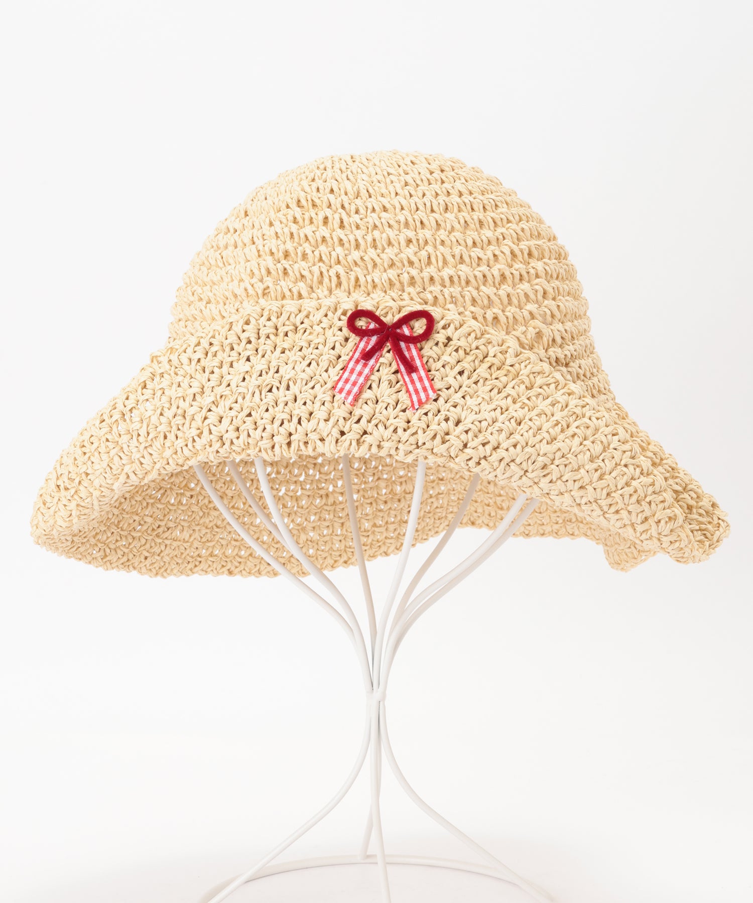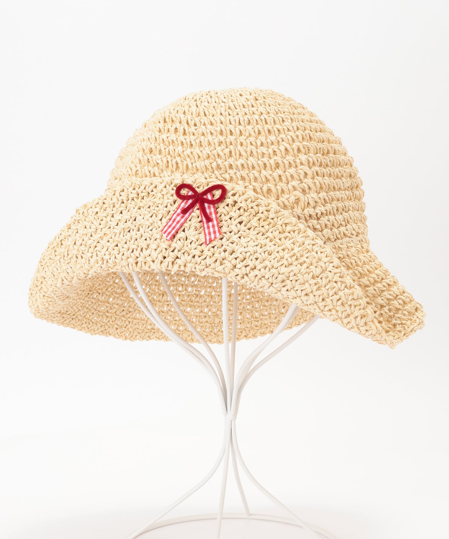 チェック柄 プチ リボン付き メッシュ バケット ハット