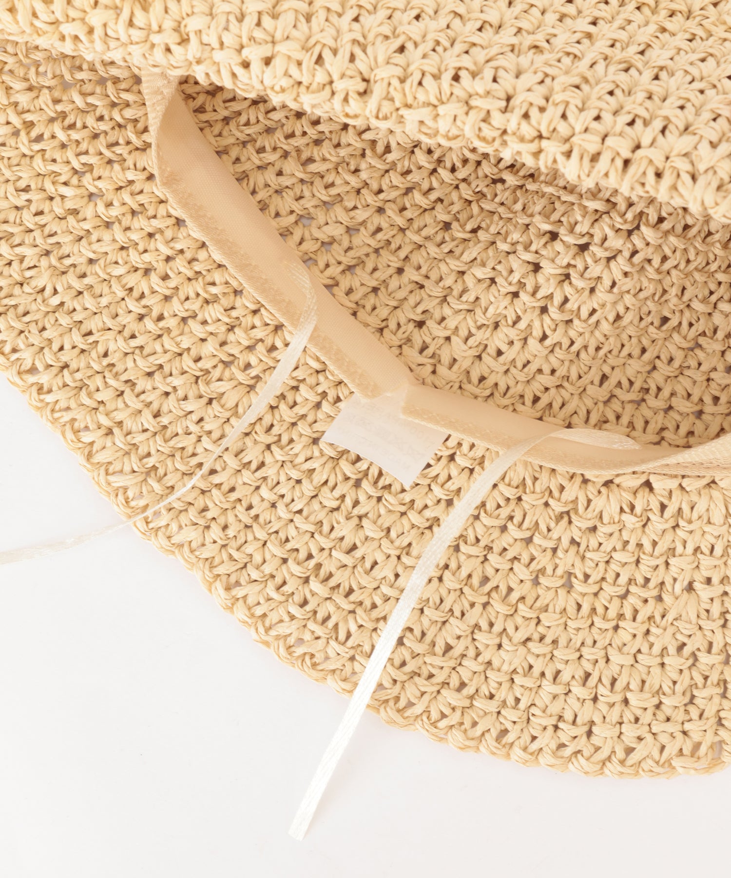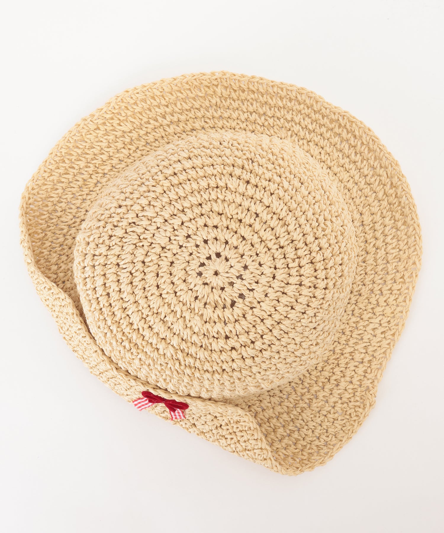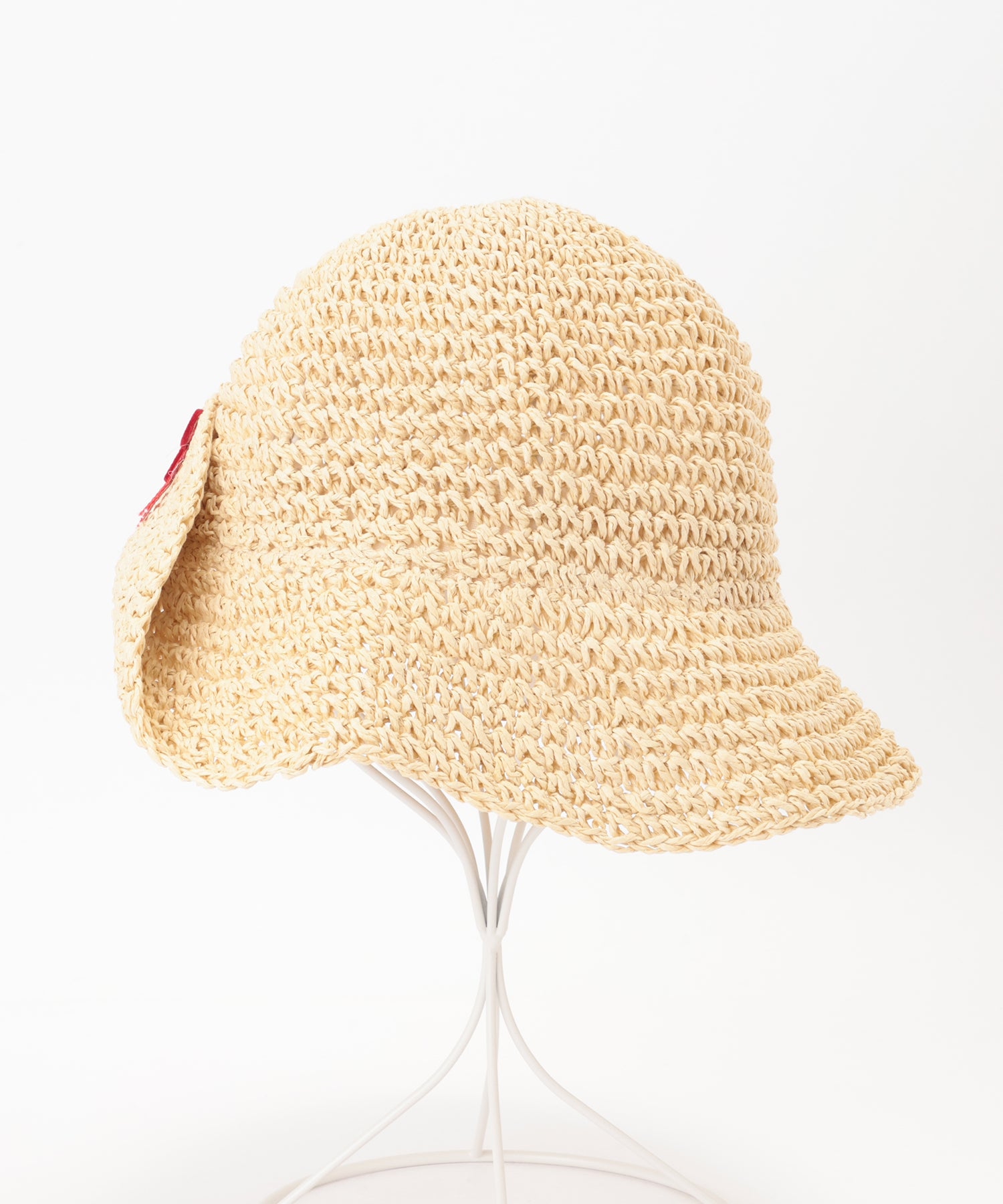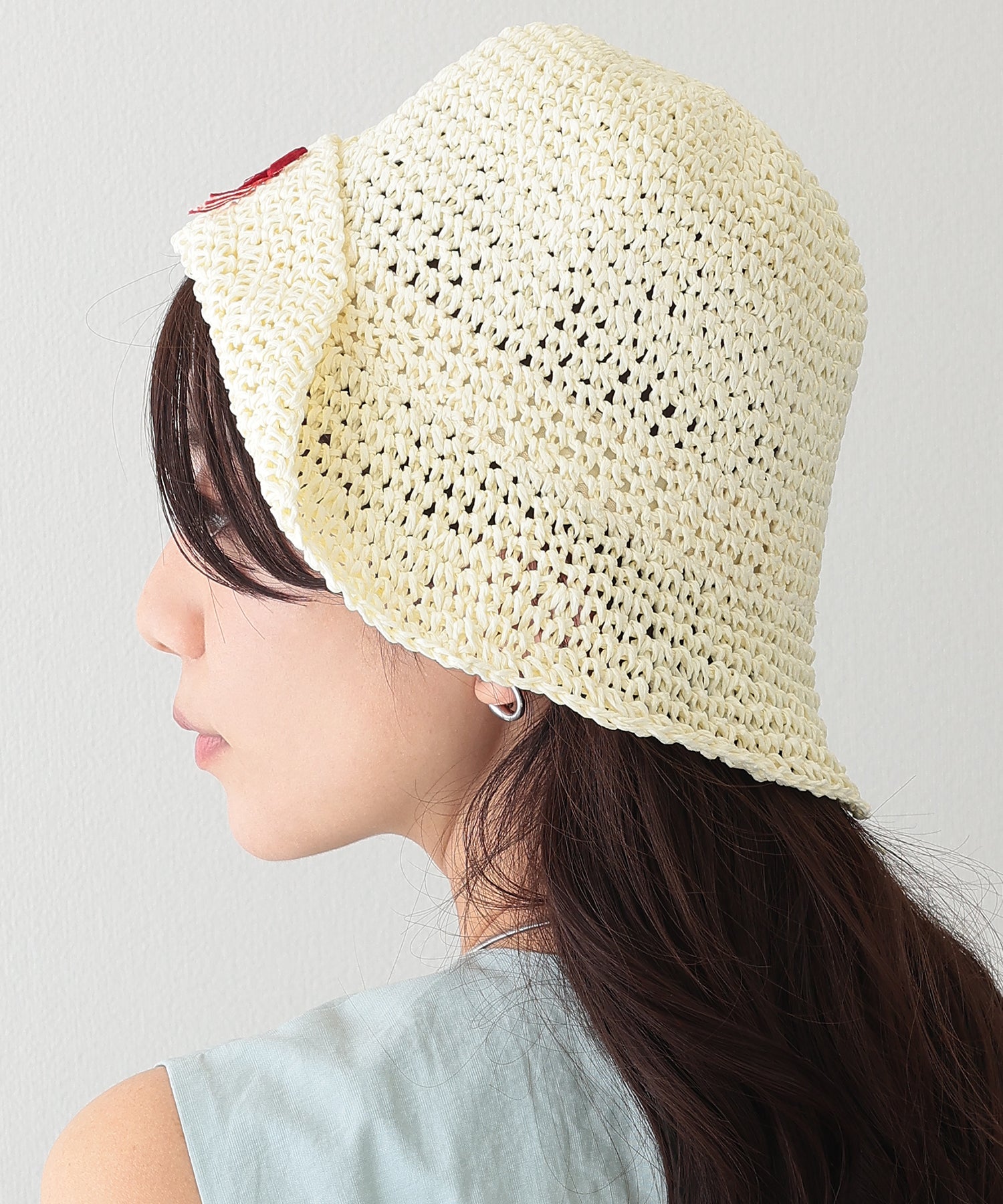 折り返しを入れたつばの一部には、小さめのカラーリボンのアクセントをプラス。