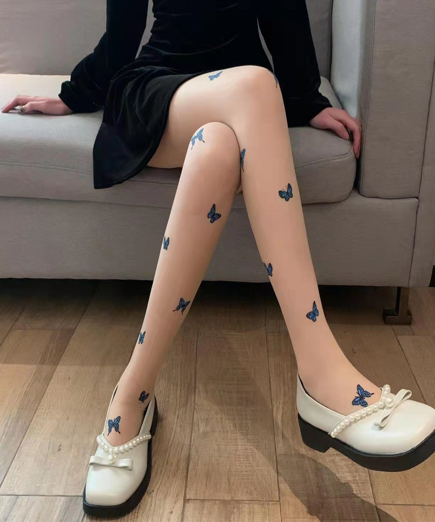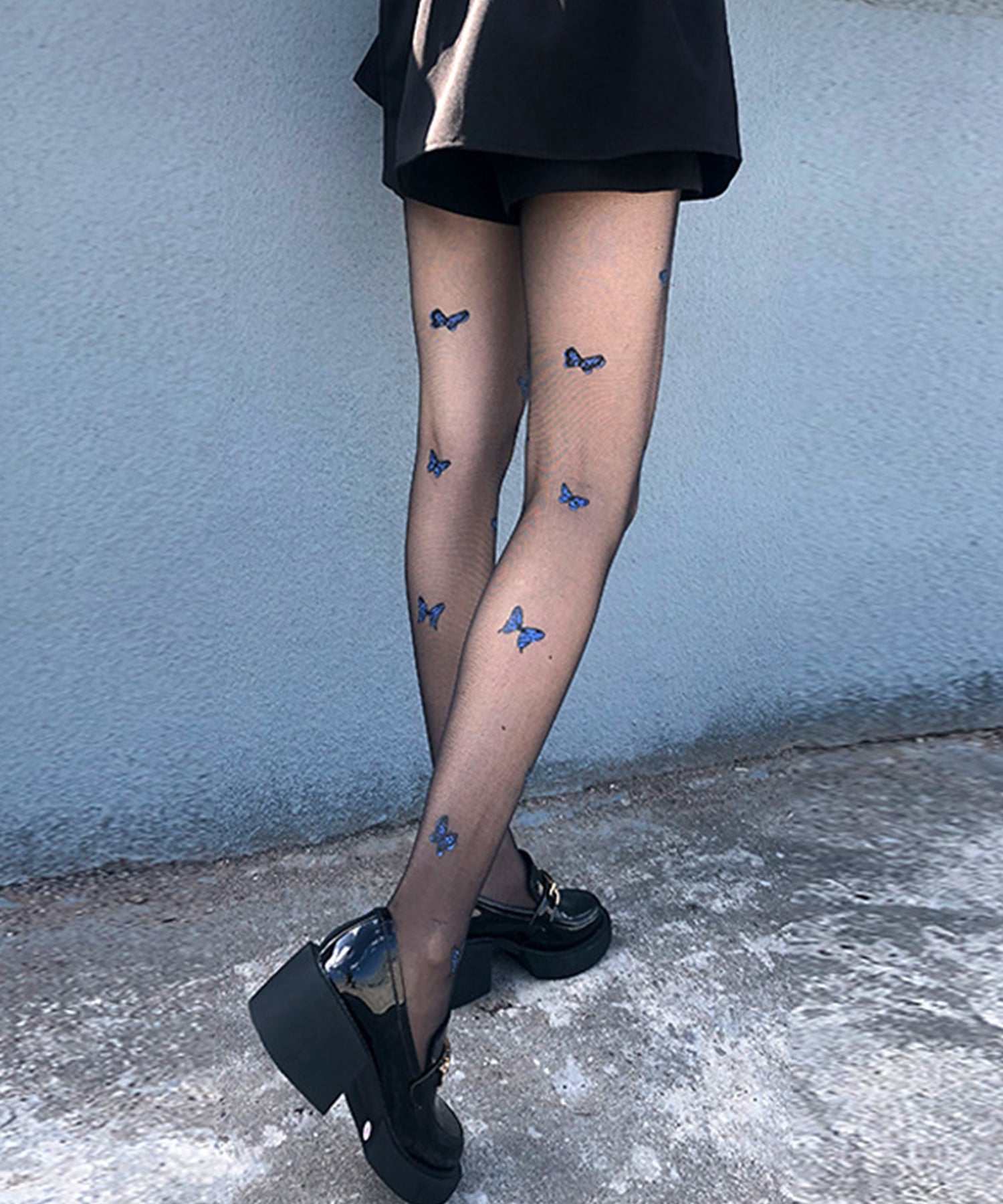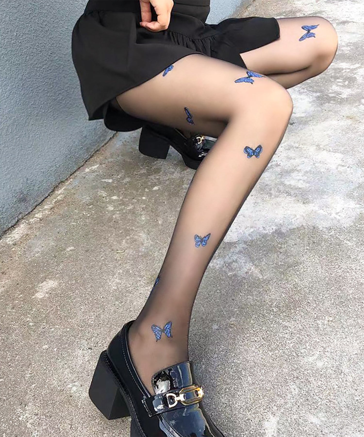 【3足セット】 配色 バタフライ ドット シアー タイツ