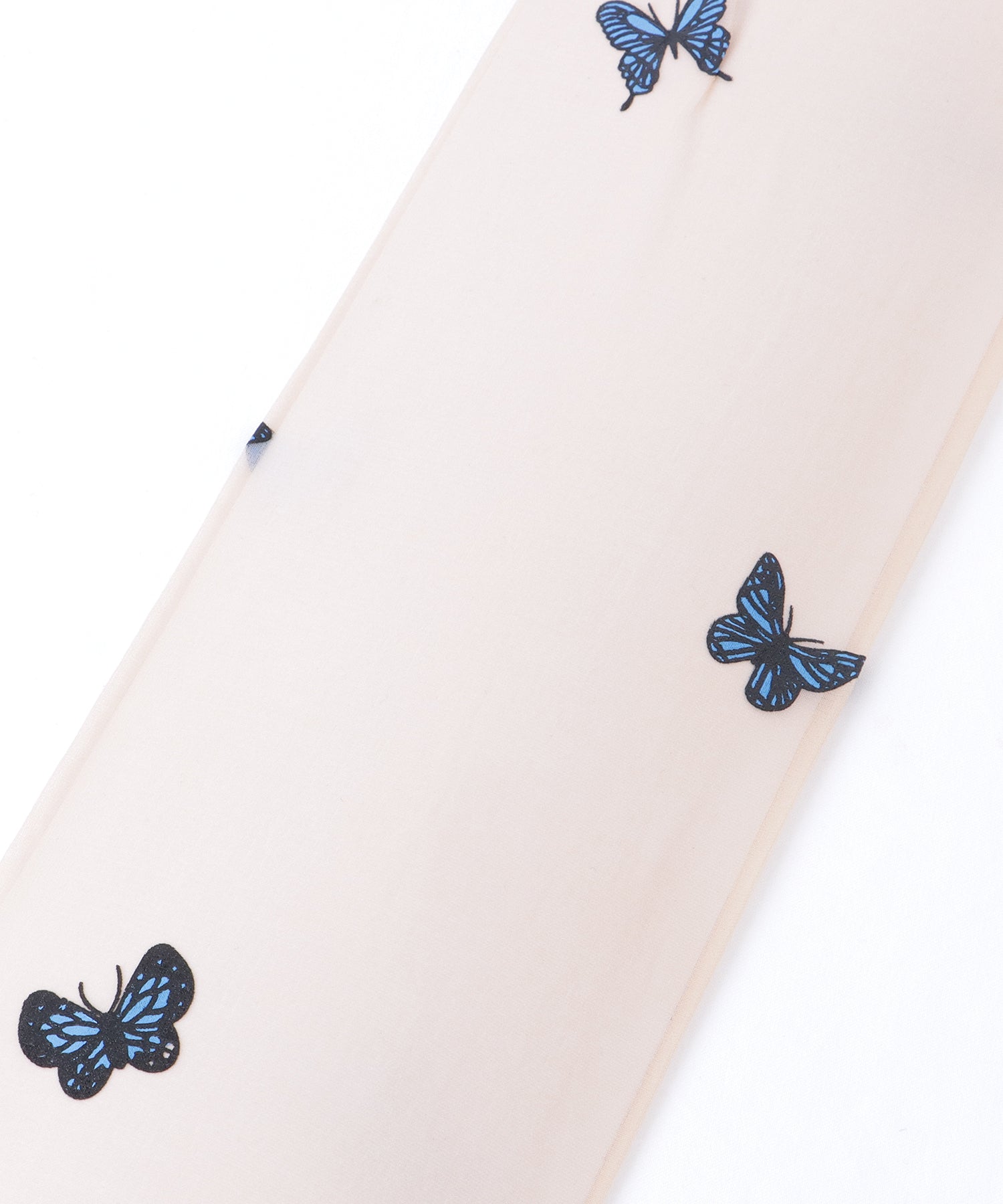 カラフルなバタフライ柄プリントをドット状に散りばめ、華やかなデザインに仕上げました。
