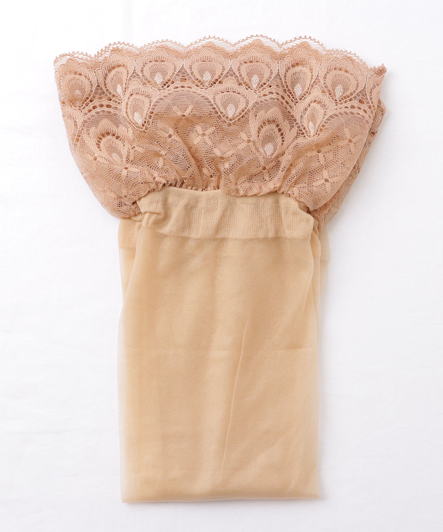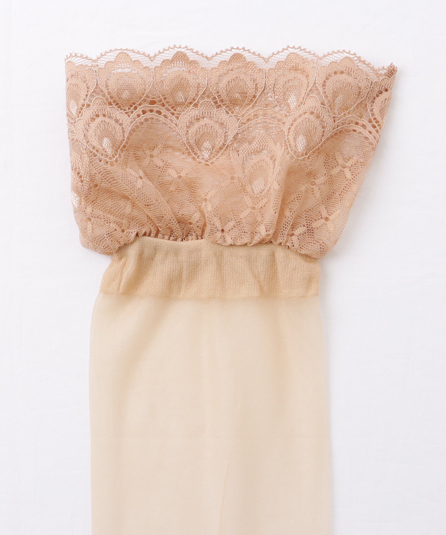 履き口にはピーコック風のデザインレースをあしらい、エレガントな1枚に仕上げました。