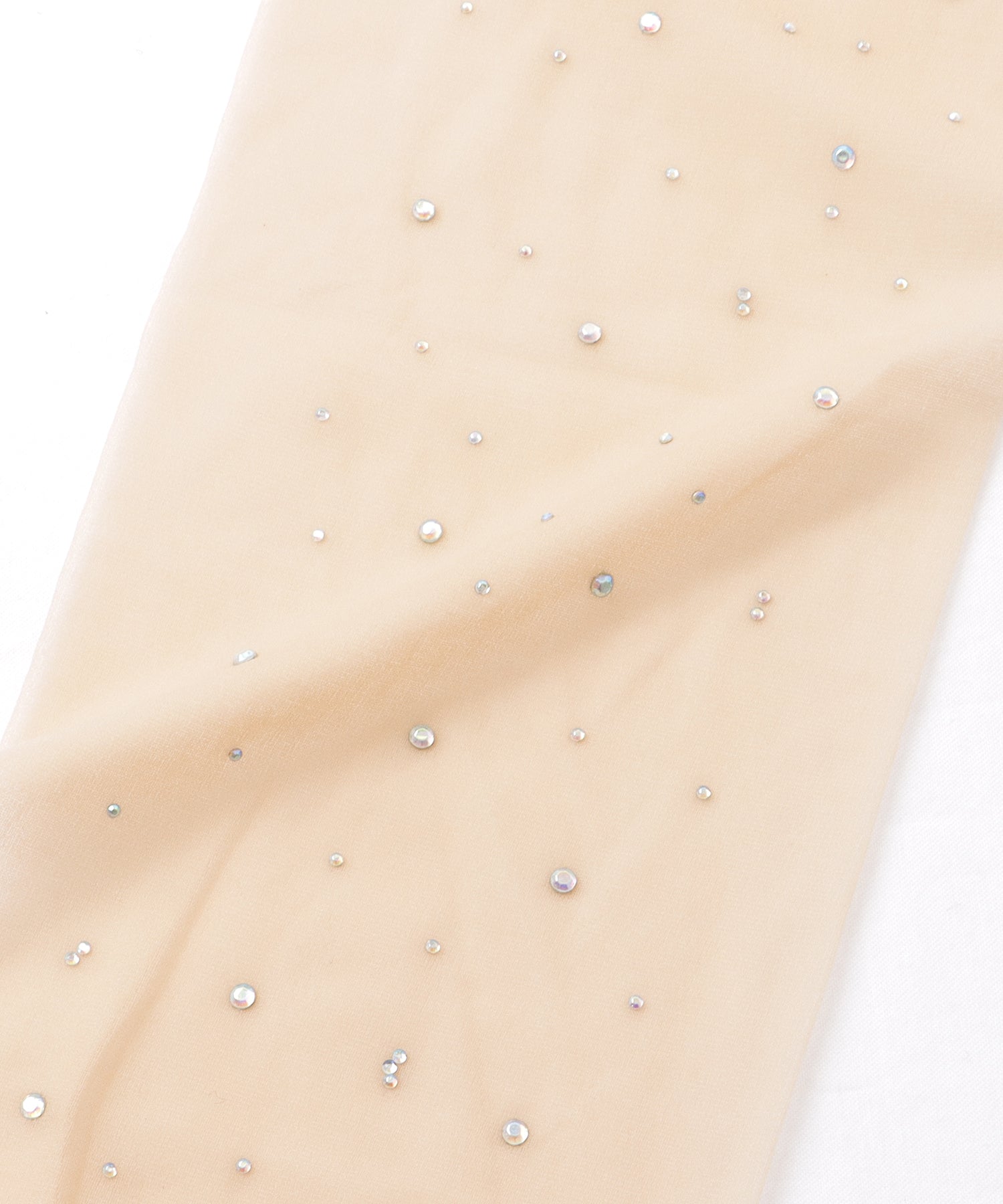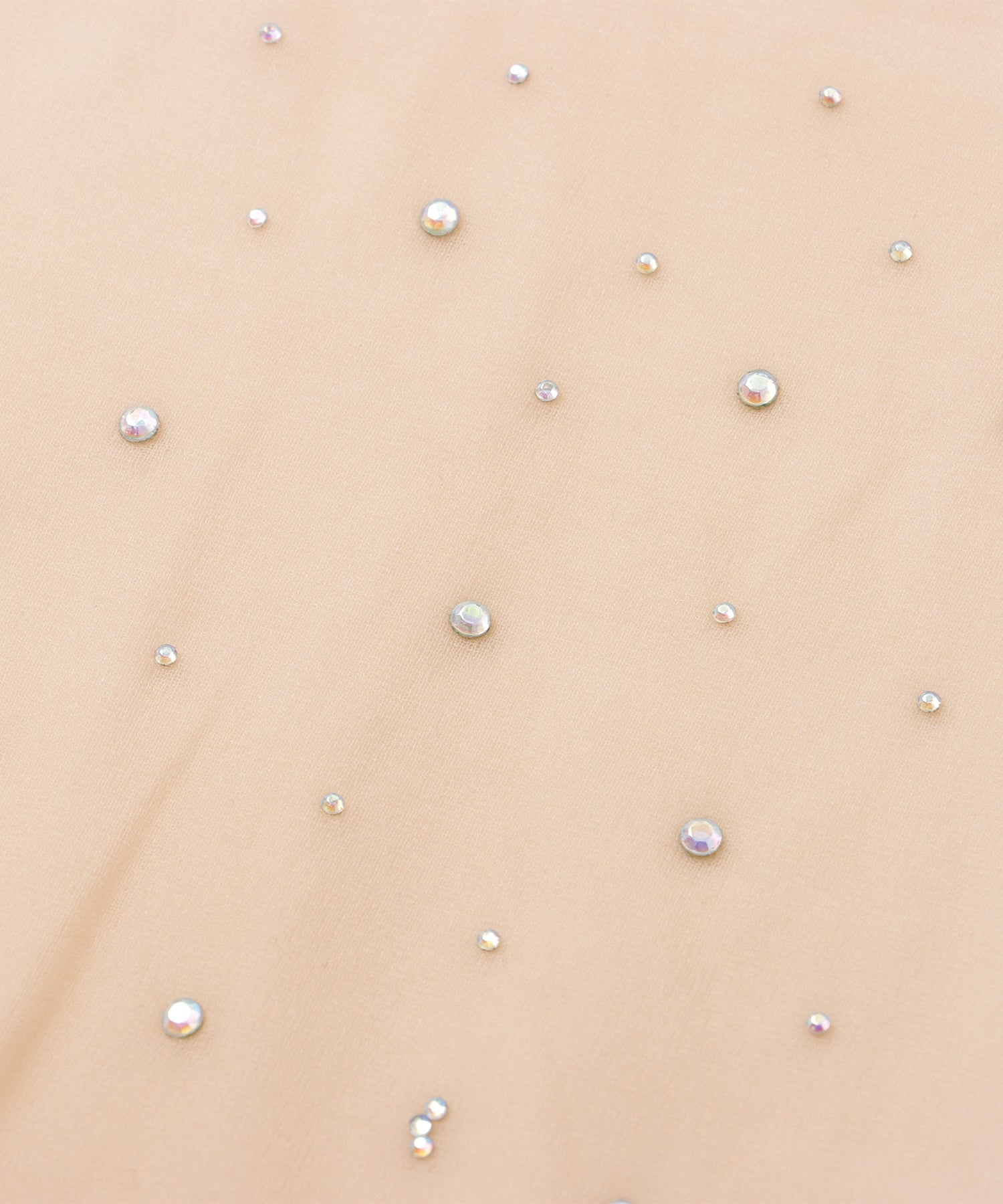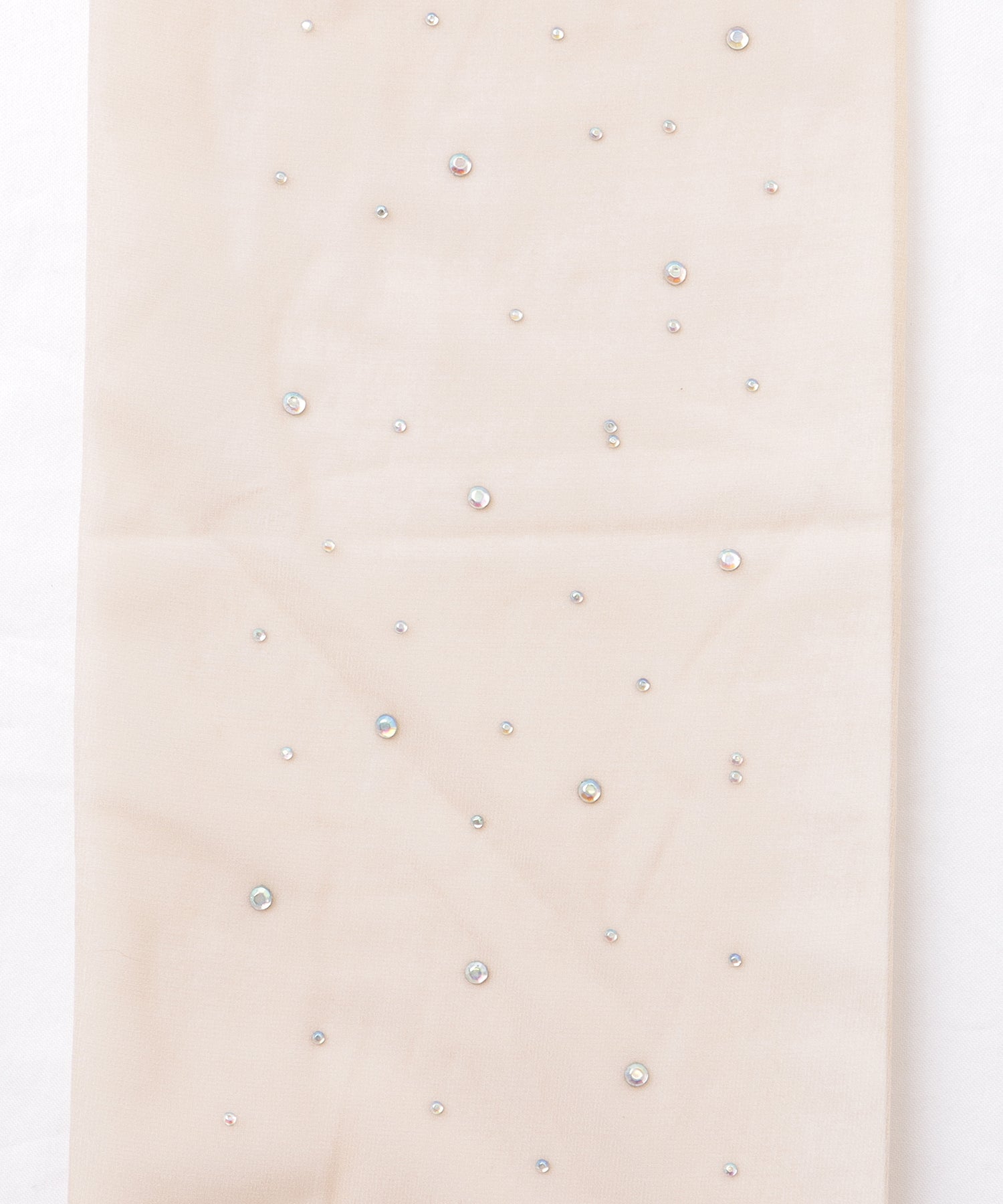 大小サイズ感の異なるビジューを散りばめ、見る角度によってキラキラと輝く華やかなアイテムに仕上げました。